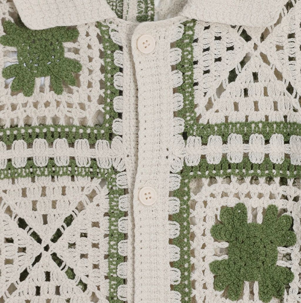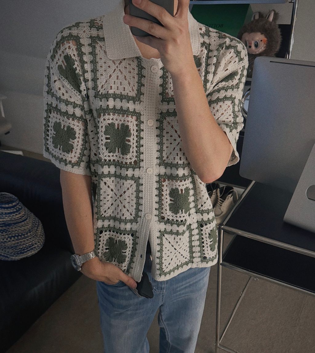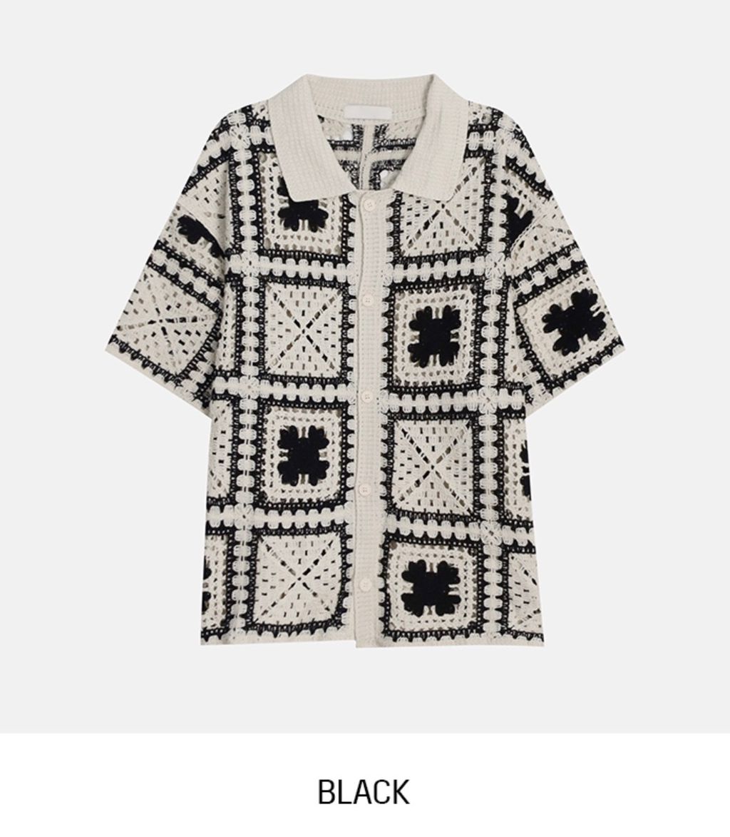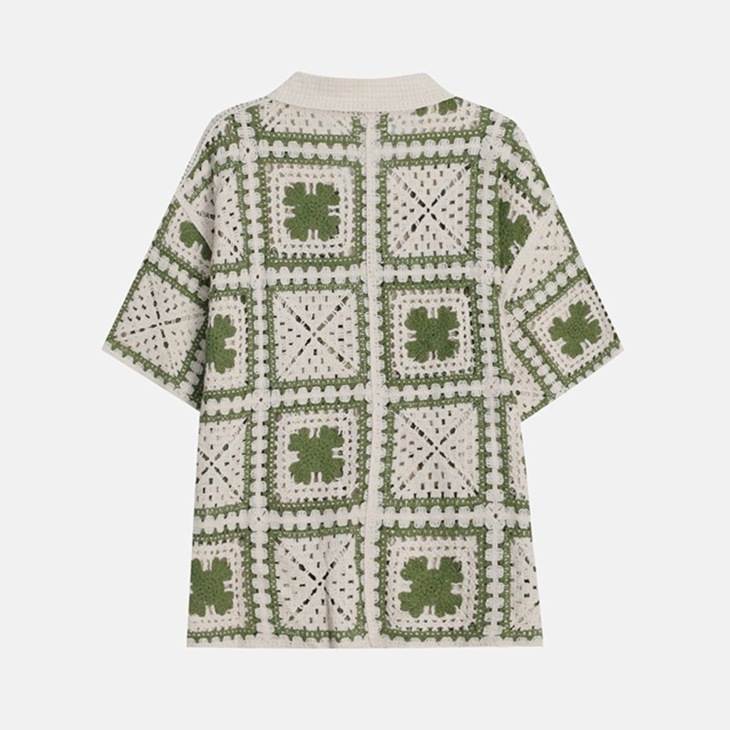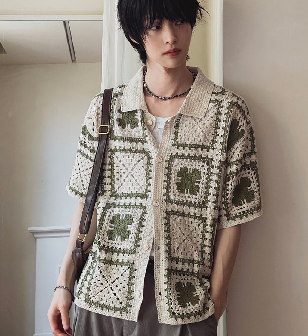 古著 鉤針 針織料 四葉草 針織 開襟衫 兩色