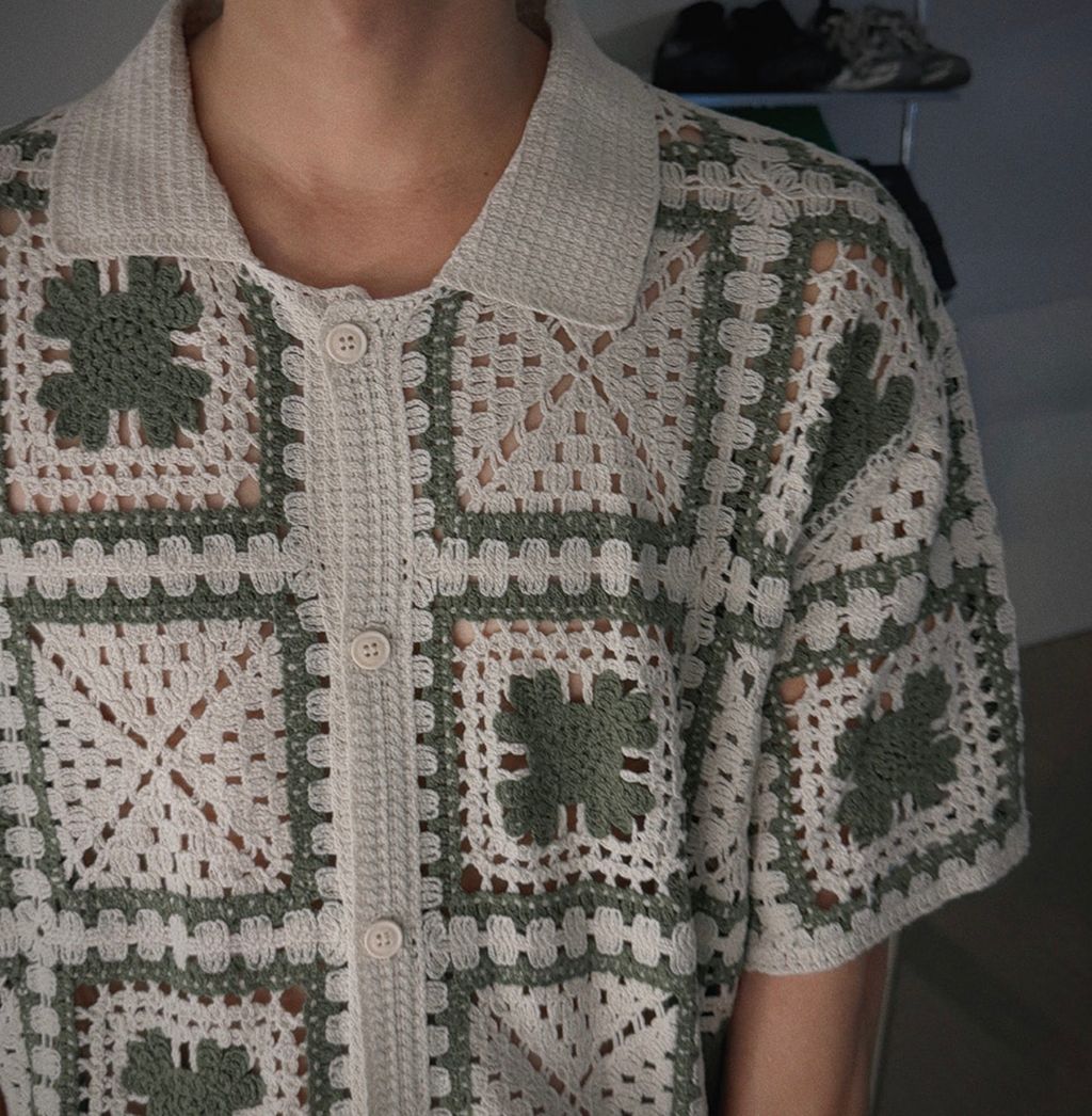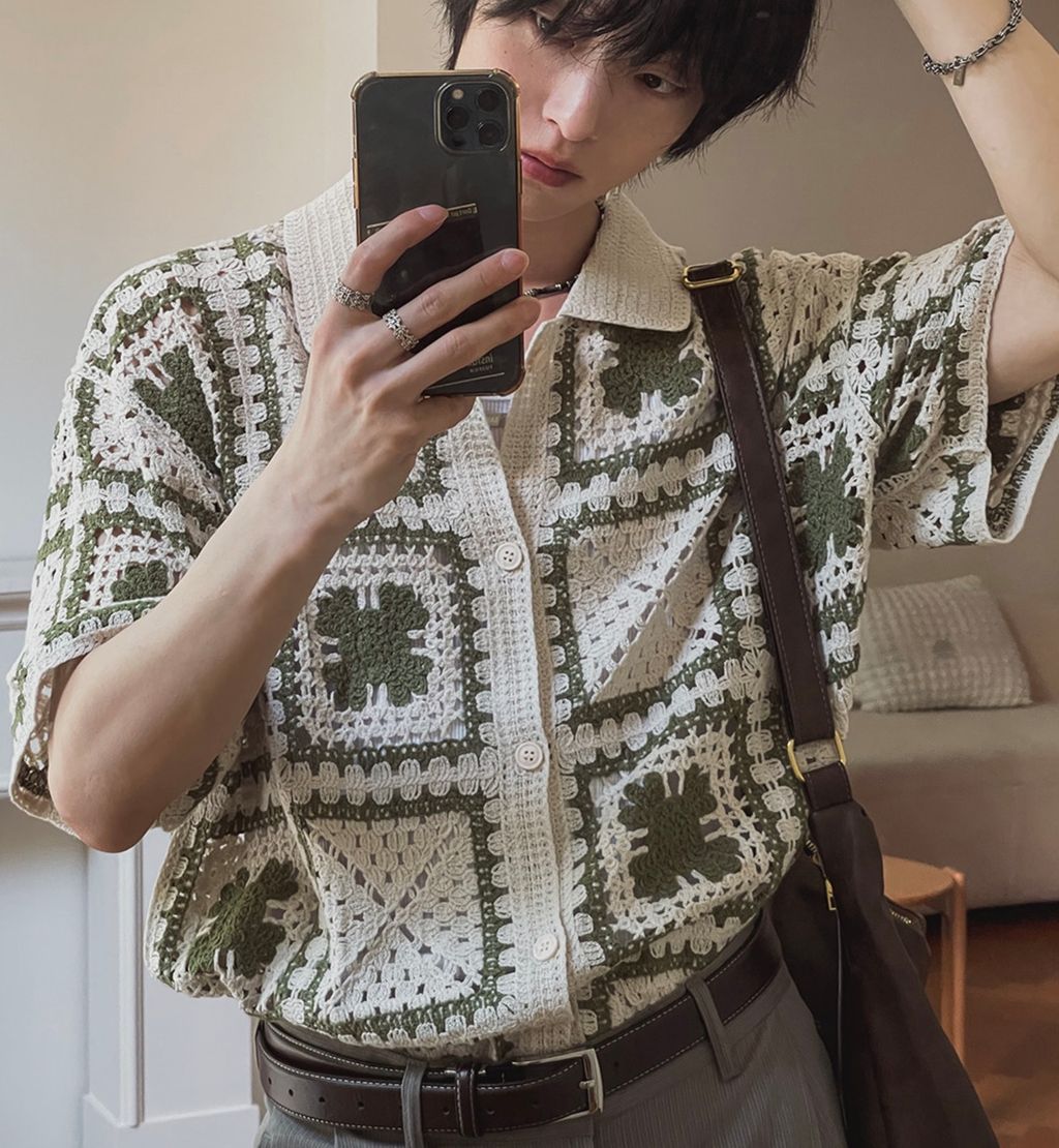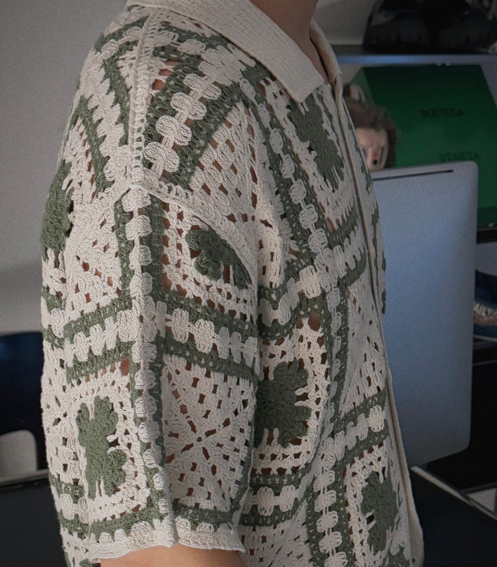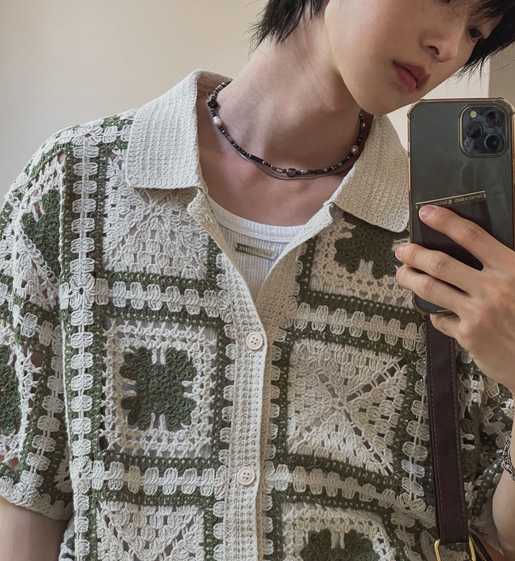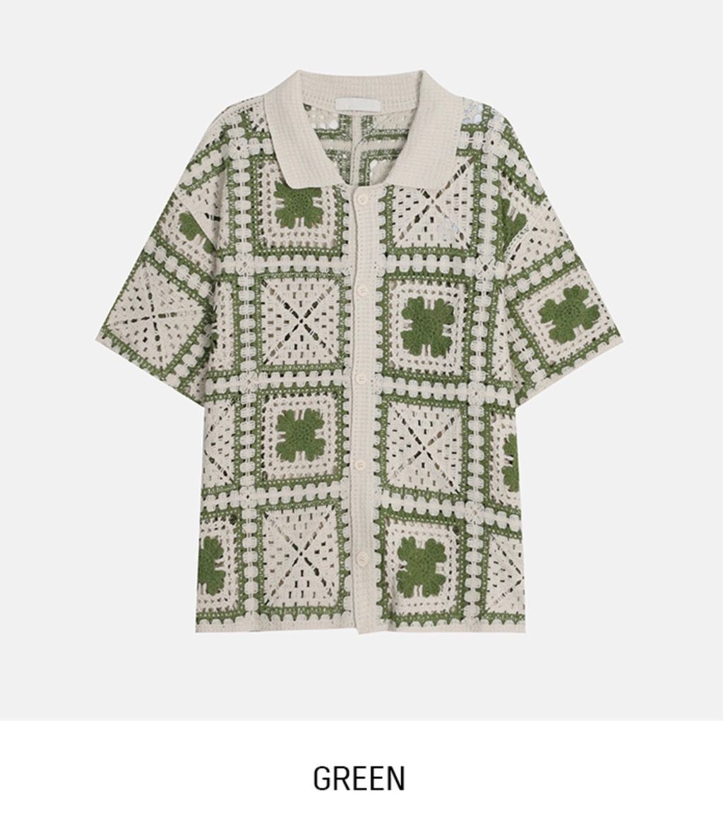 古著 鉤針 針織料 四葉草 針織 開襟衫 兩色