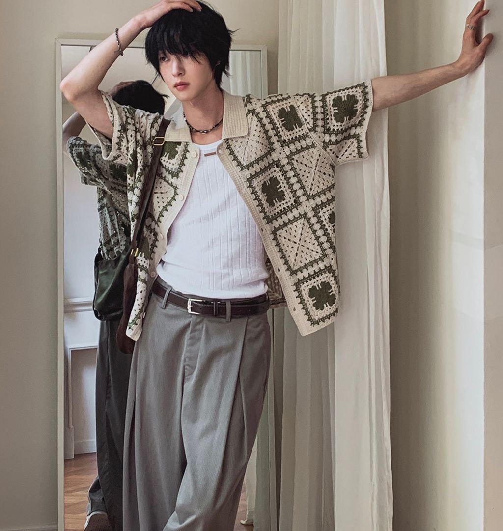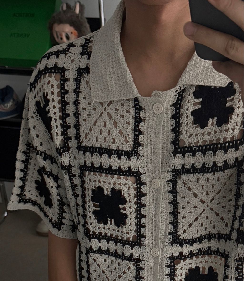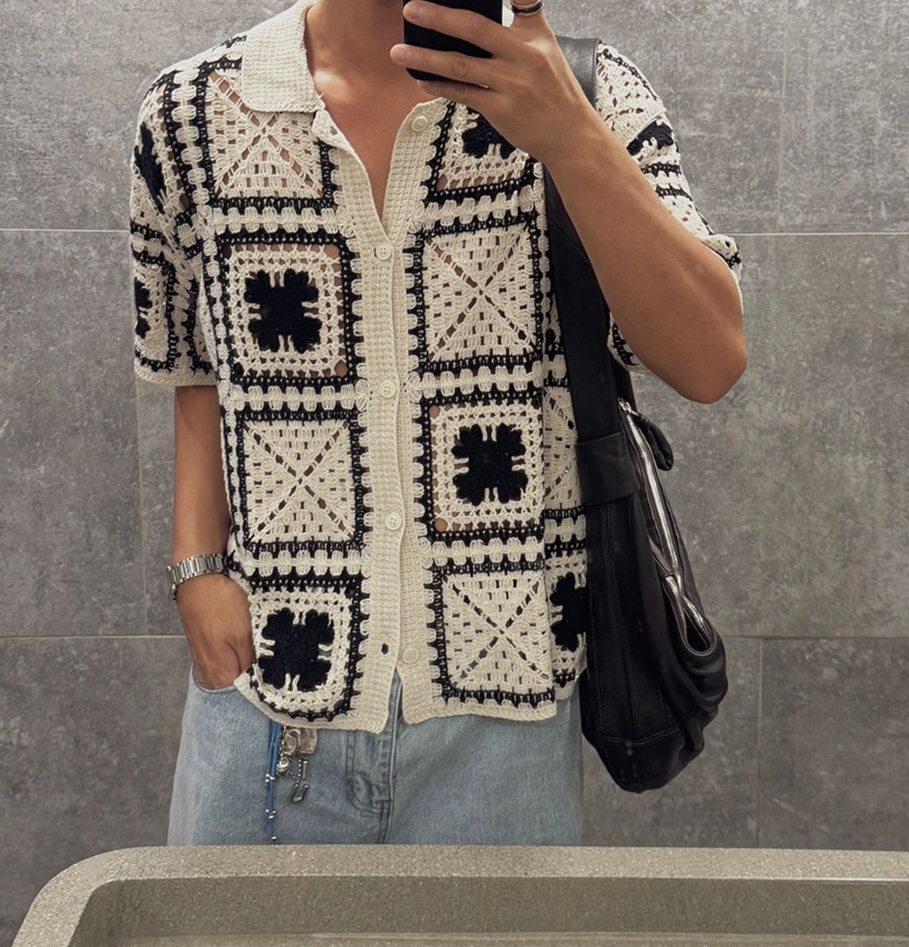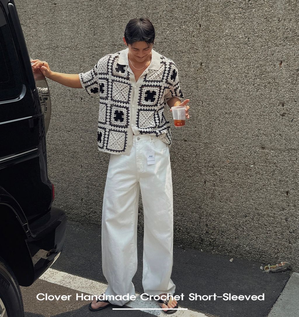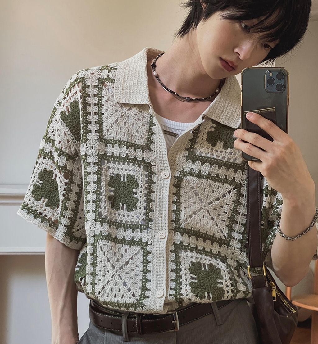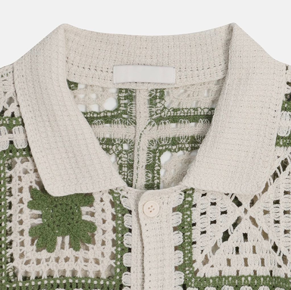 古著 鉤針 針織料 四葉草 針織 開襟衫 兩色