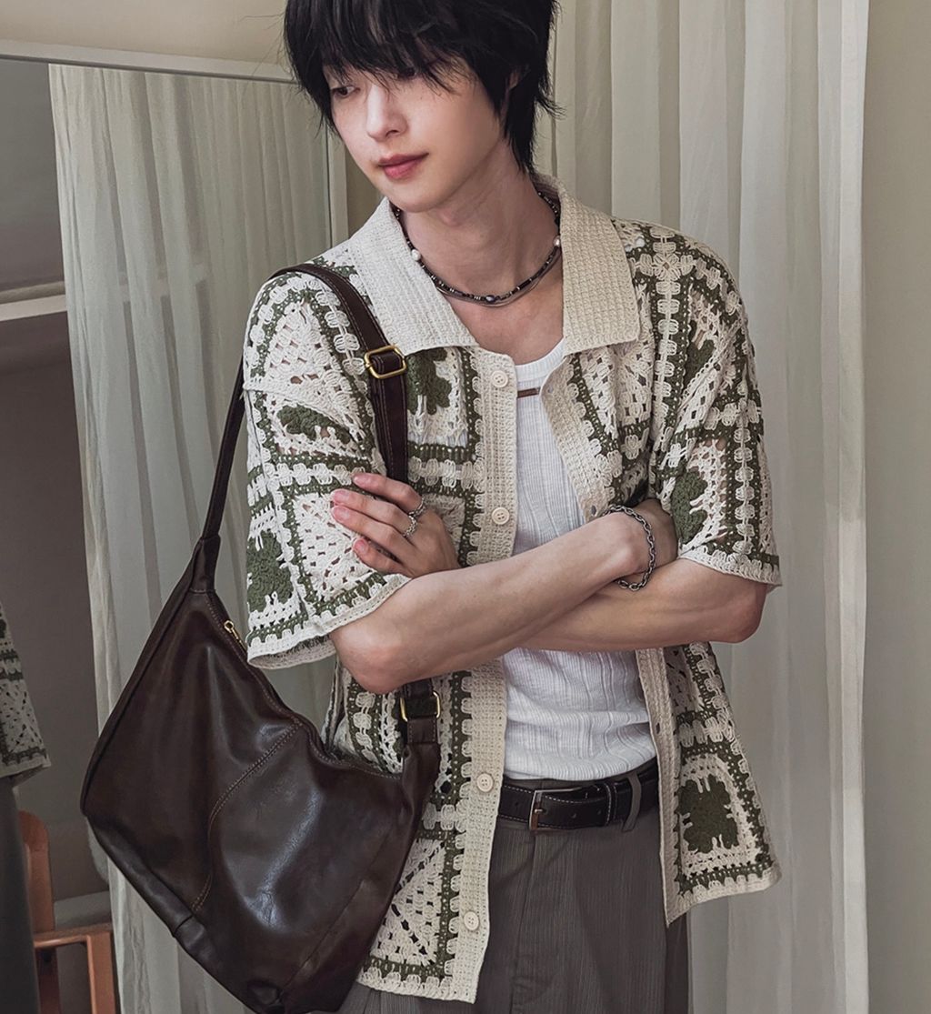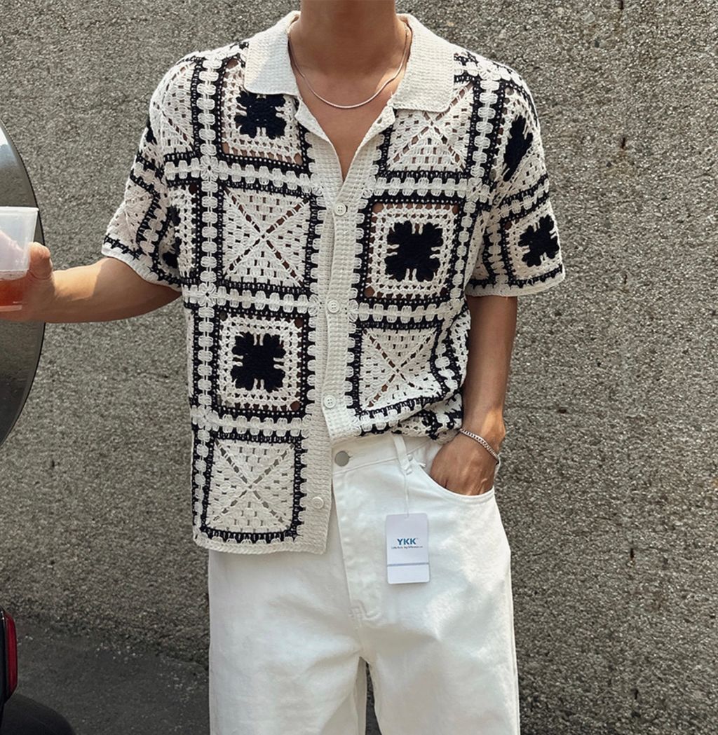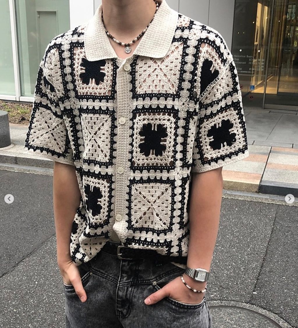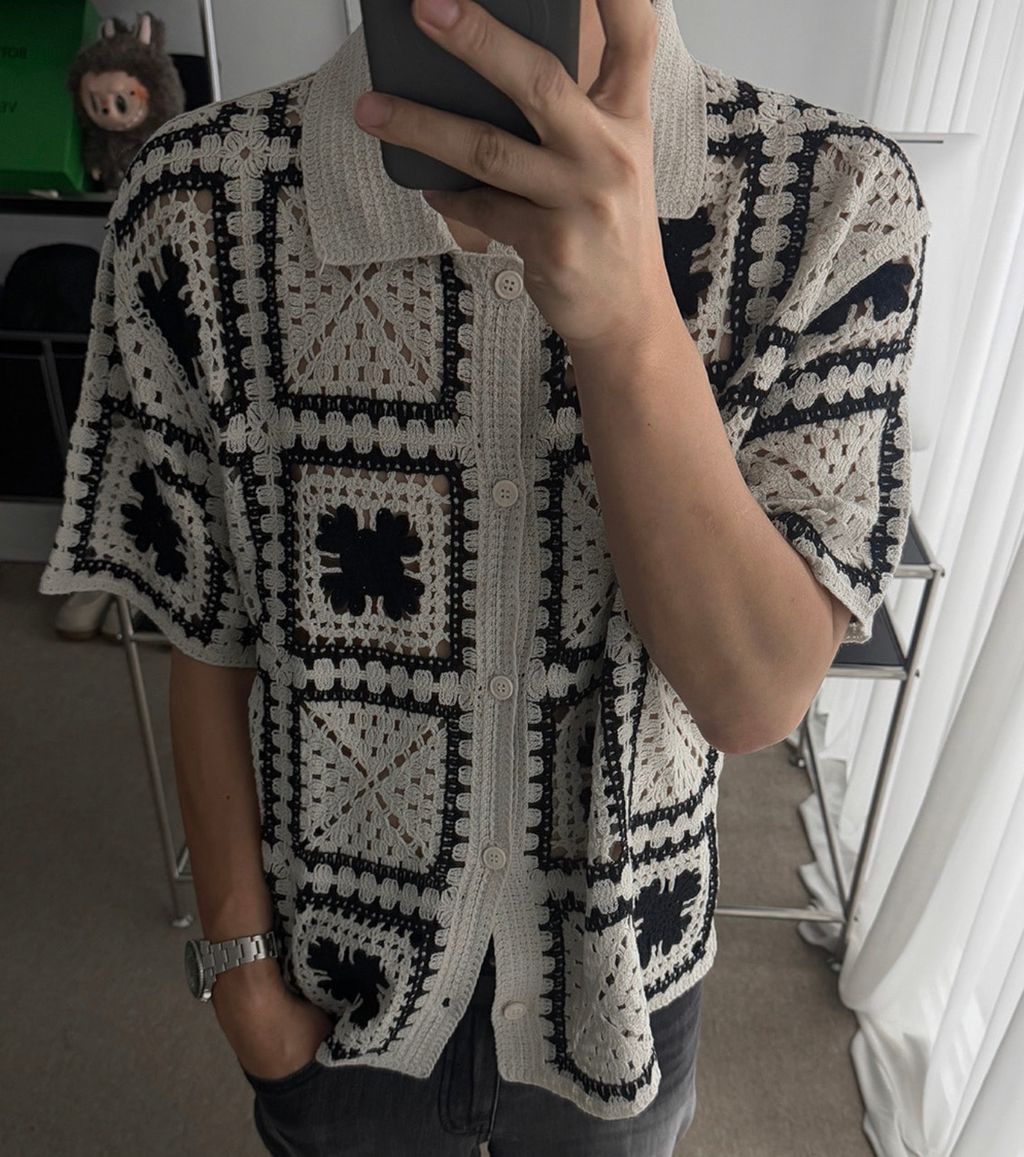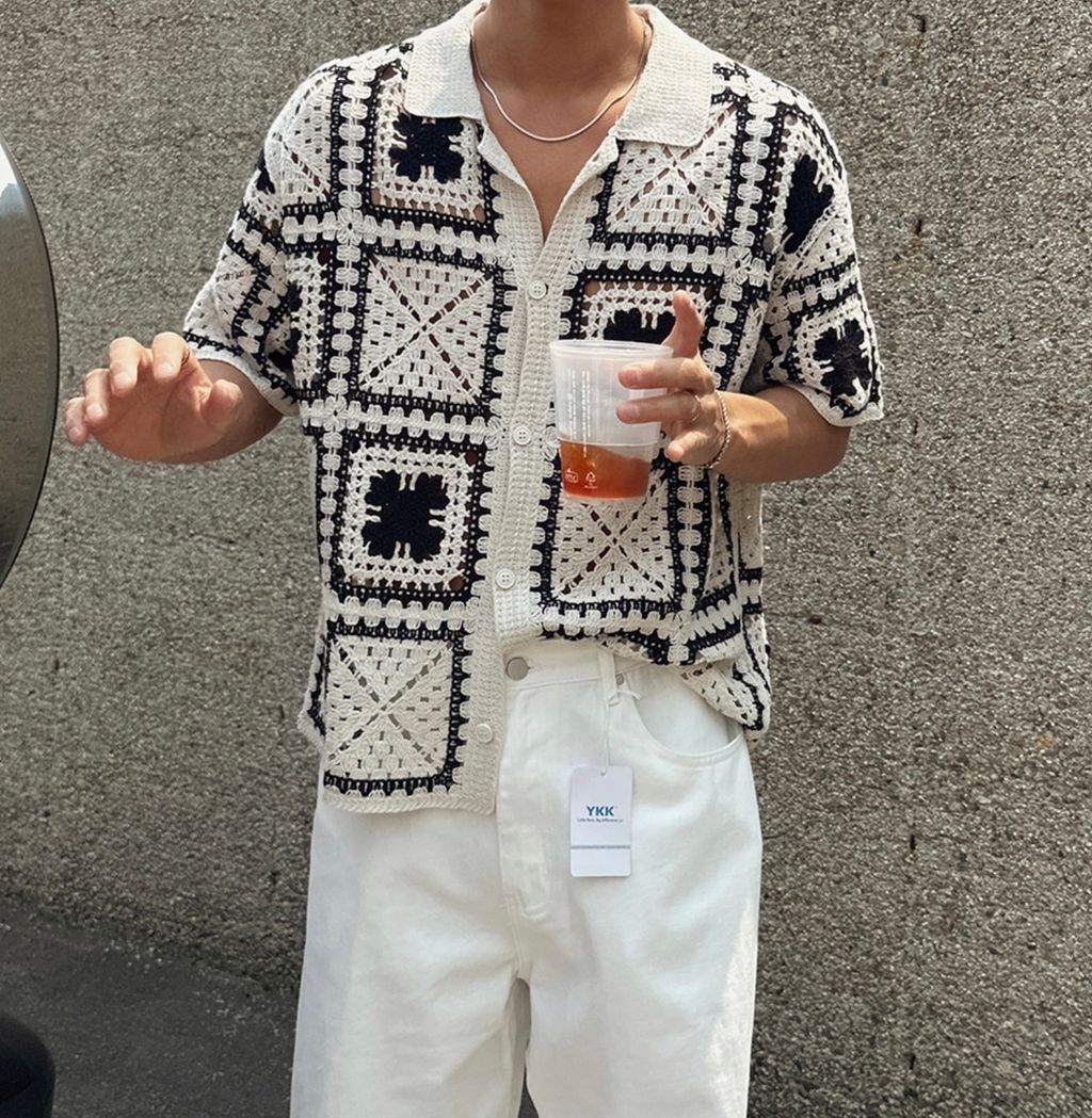 古著 鉤針 針織料 四葉草 針織 開襟衫 兩色