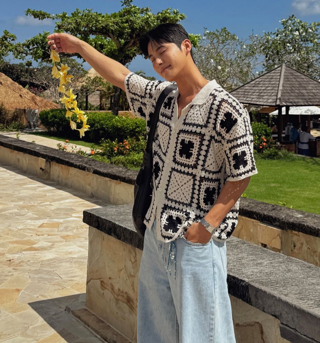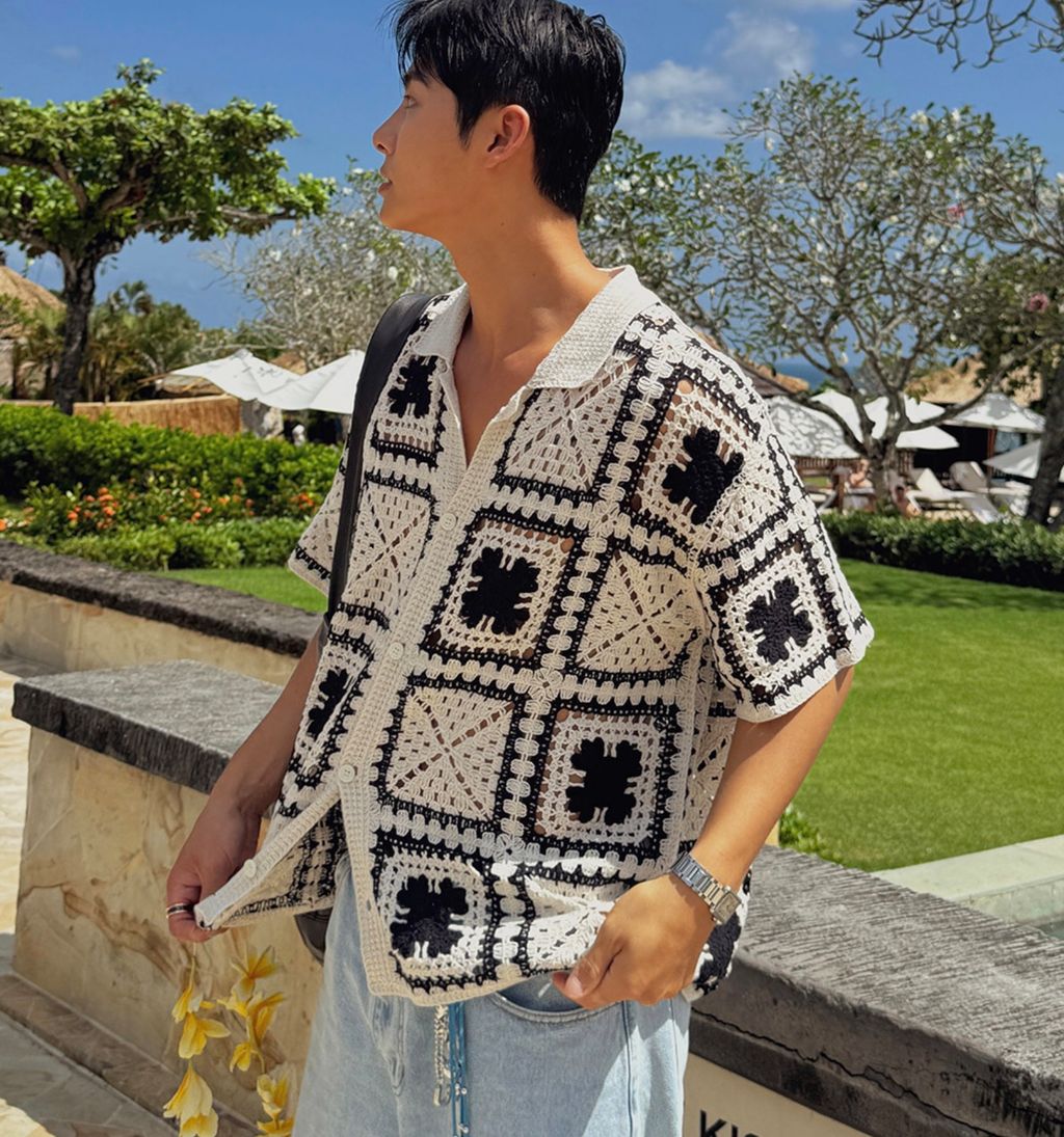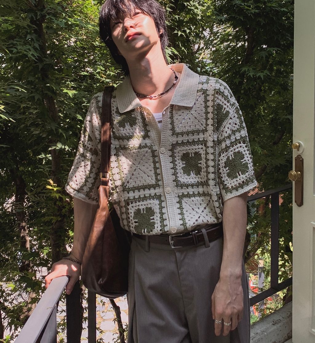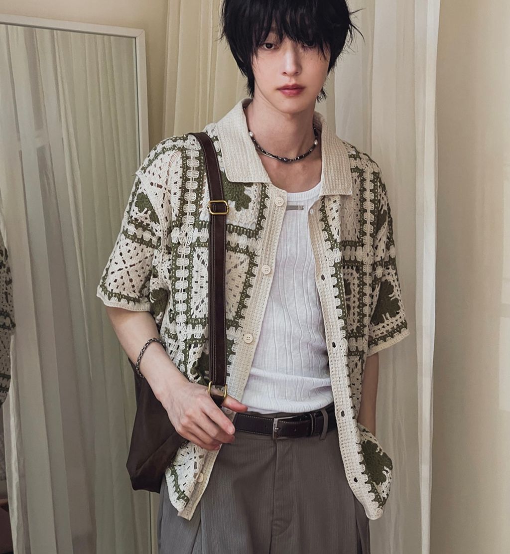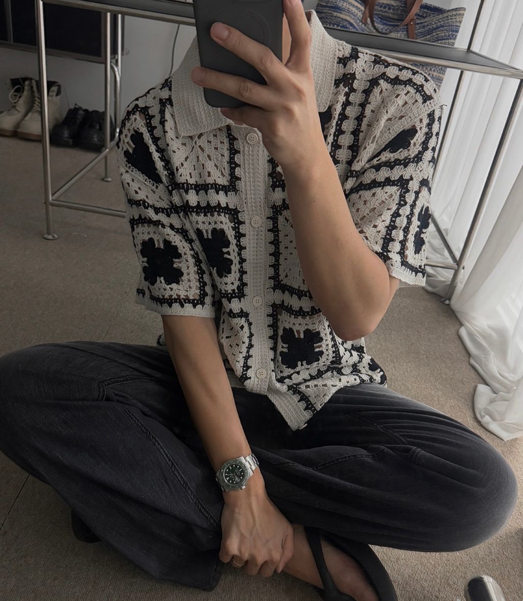 古著 鉤針 針織料 四葉草 針織 開襟衫 兩色
