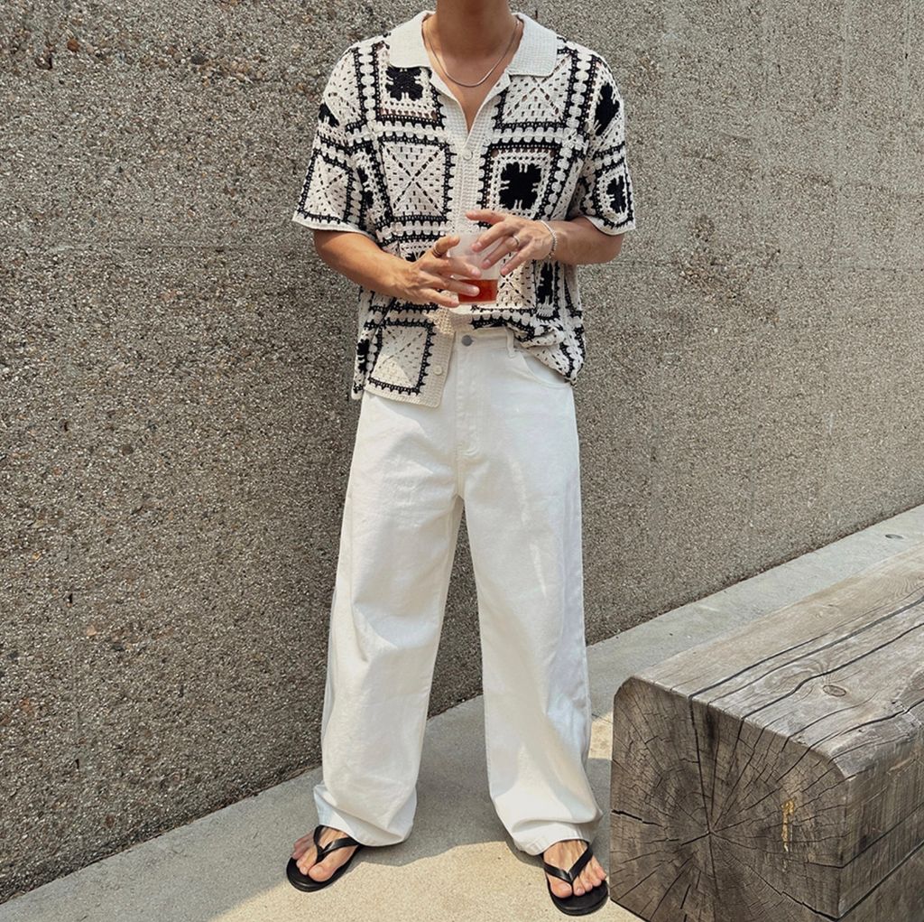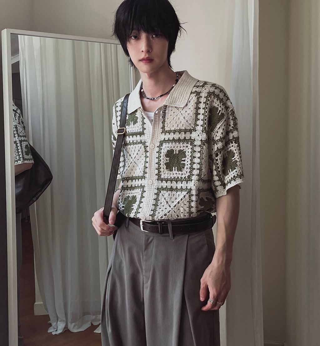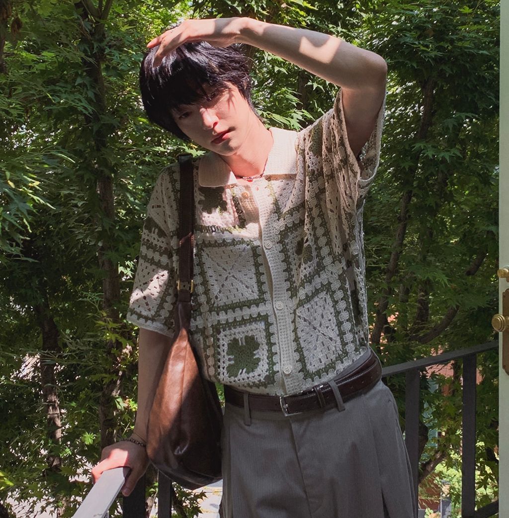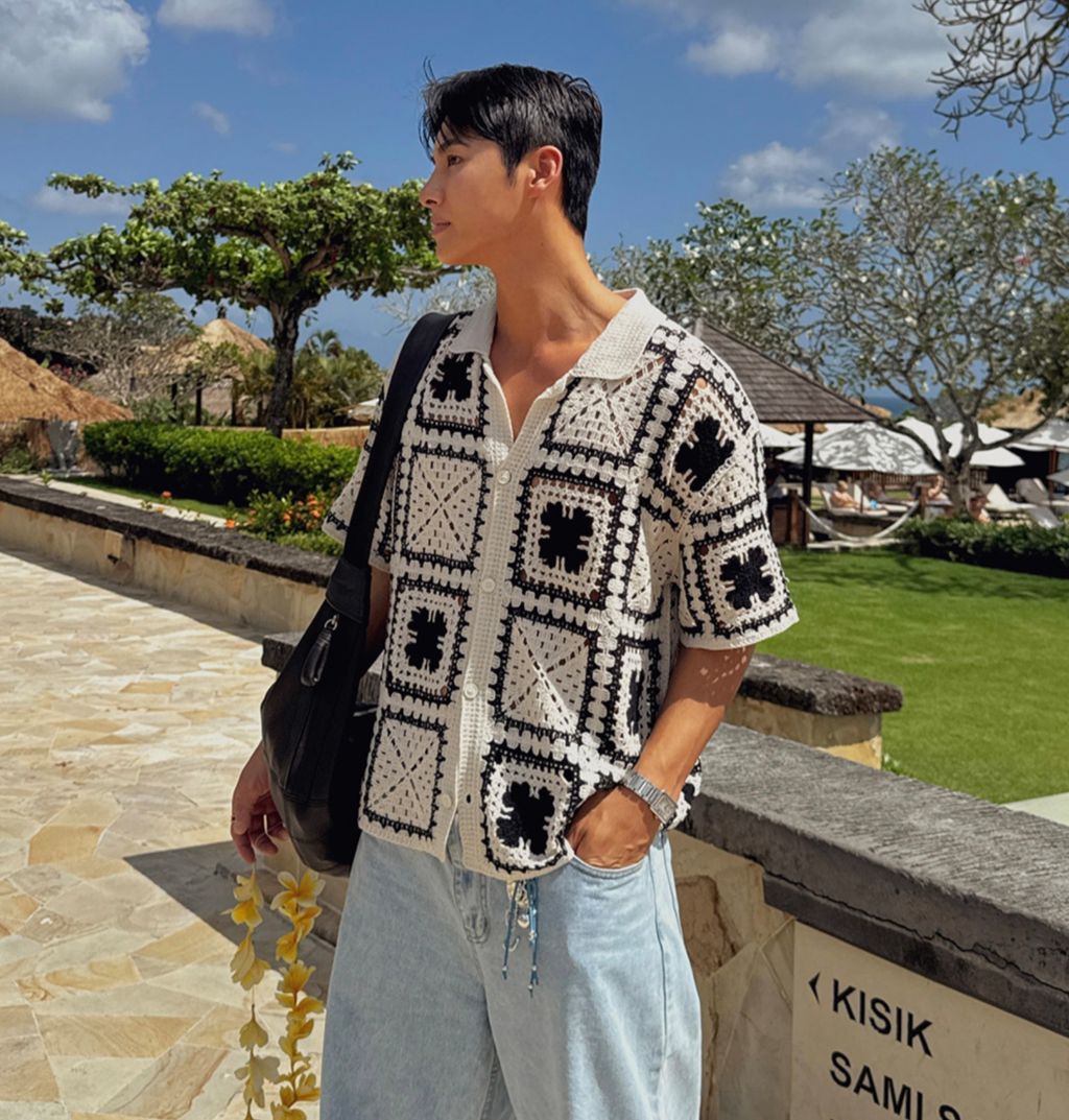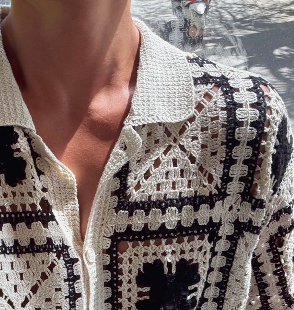 古著 鉤針 針織料 四葉草 針織 開襟衫 兩色
