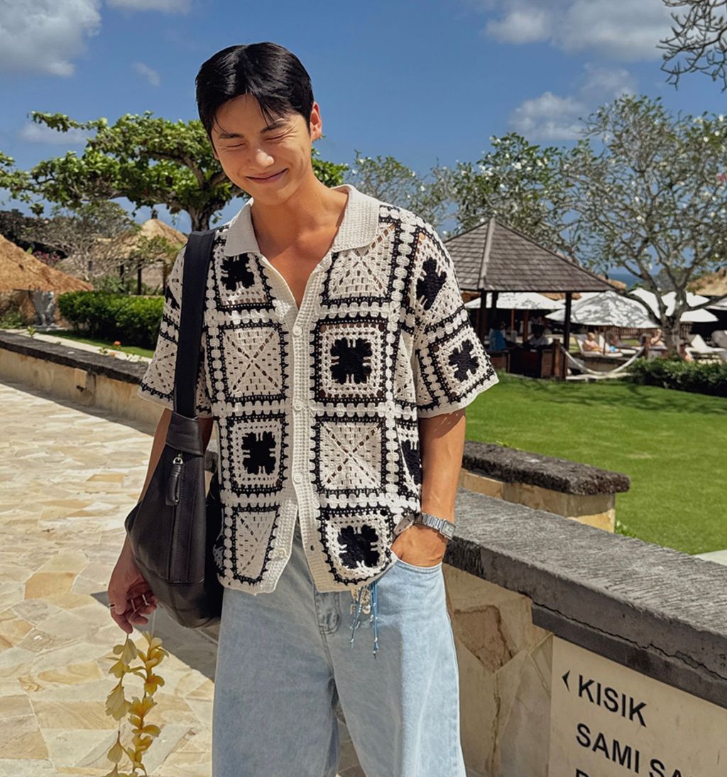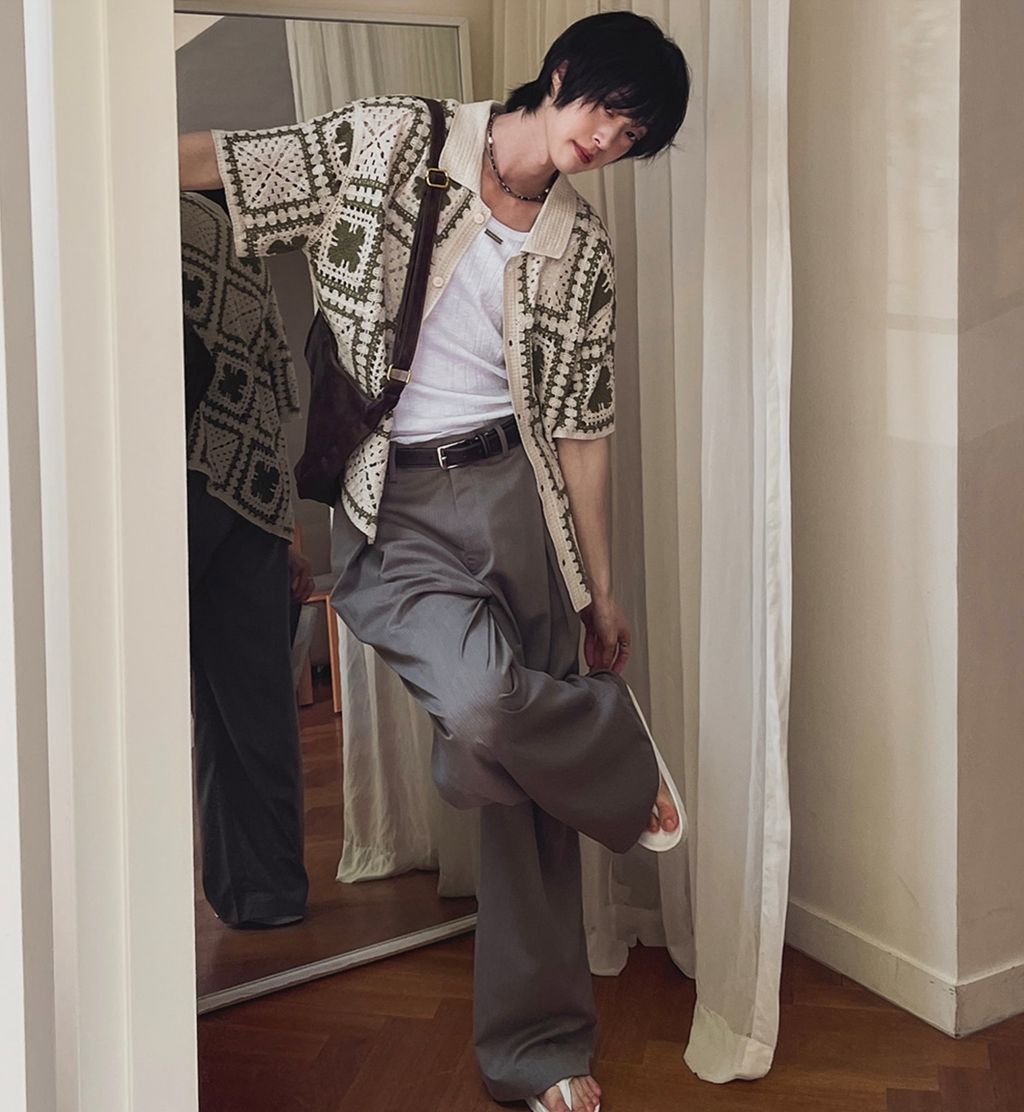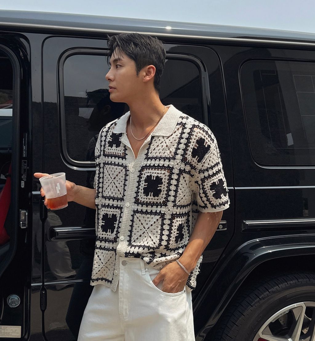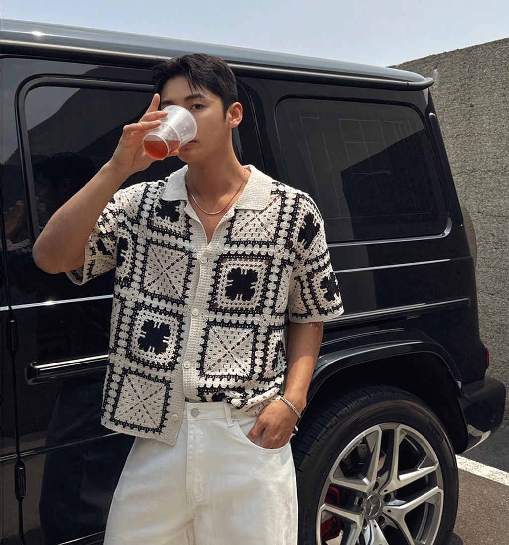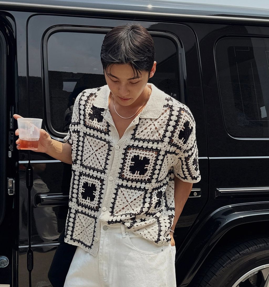 古著 鉤針 針織料 四葉草 針織 開襟衫 兩色