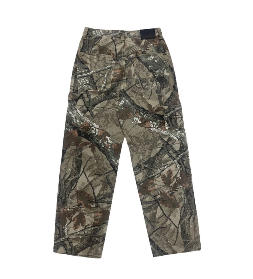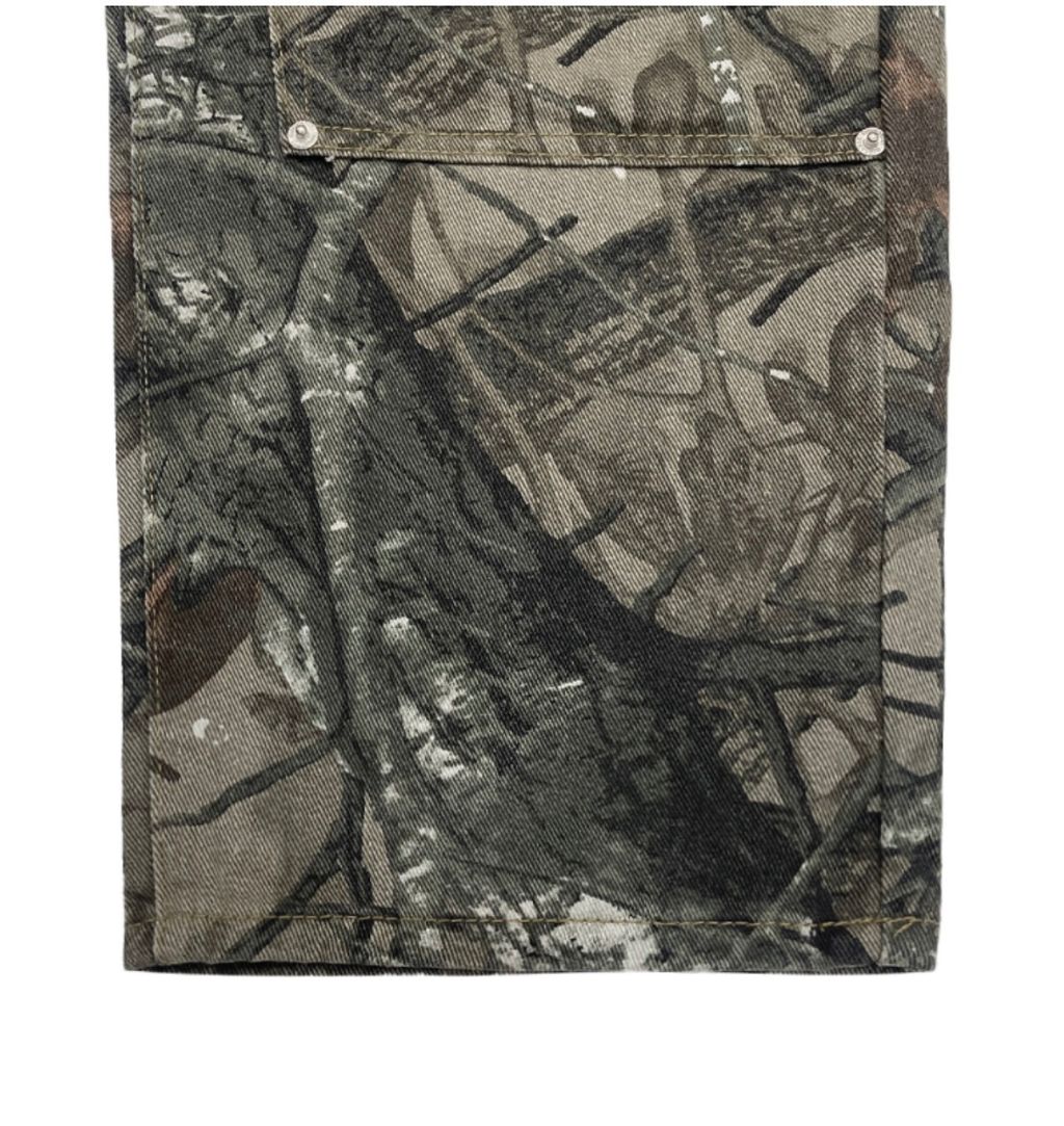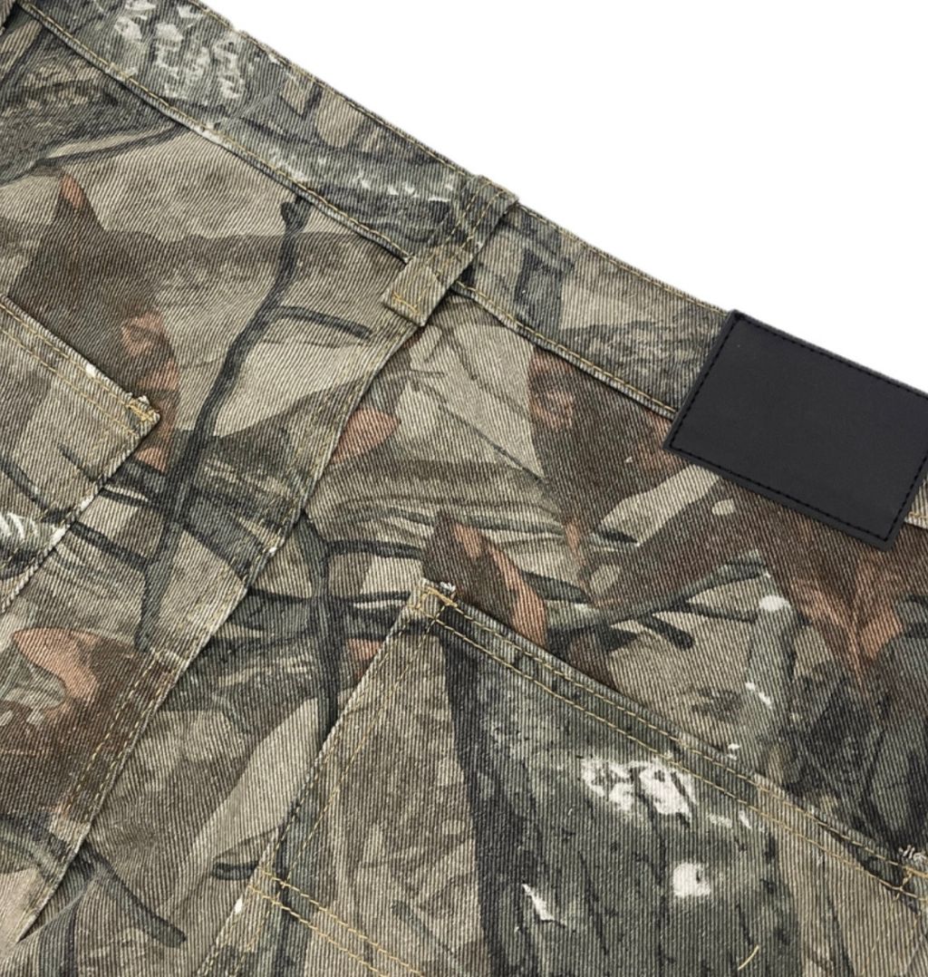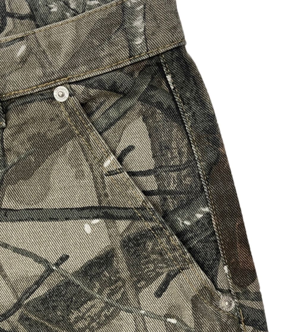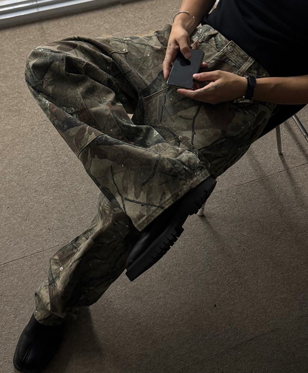 枯木紋路迷彩花紋 小寬管 單寧牛仔 工裝長褲