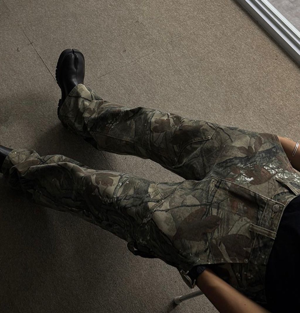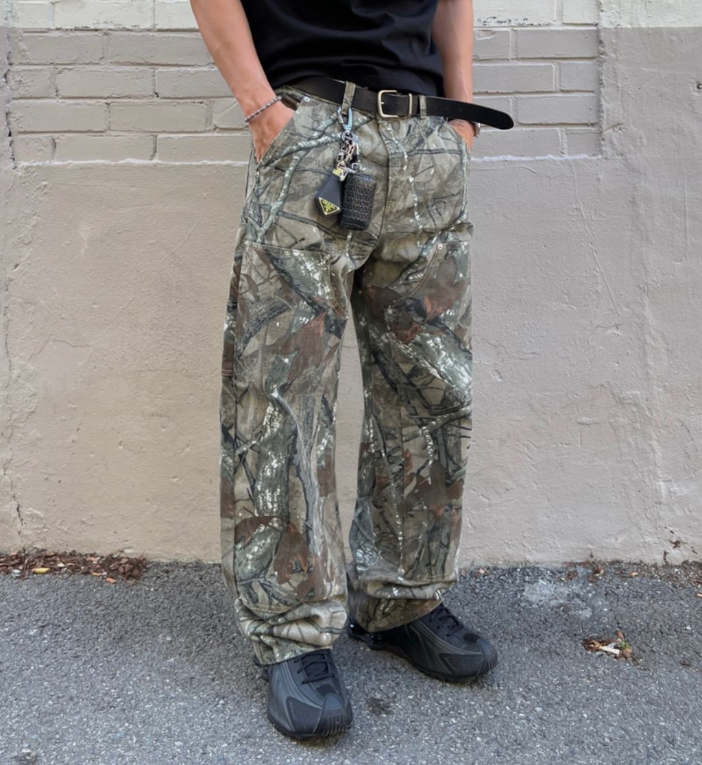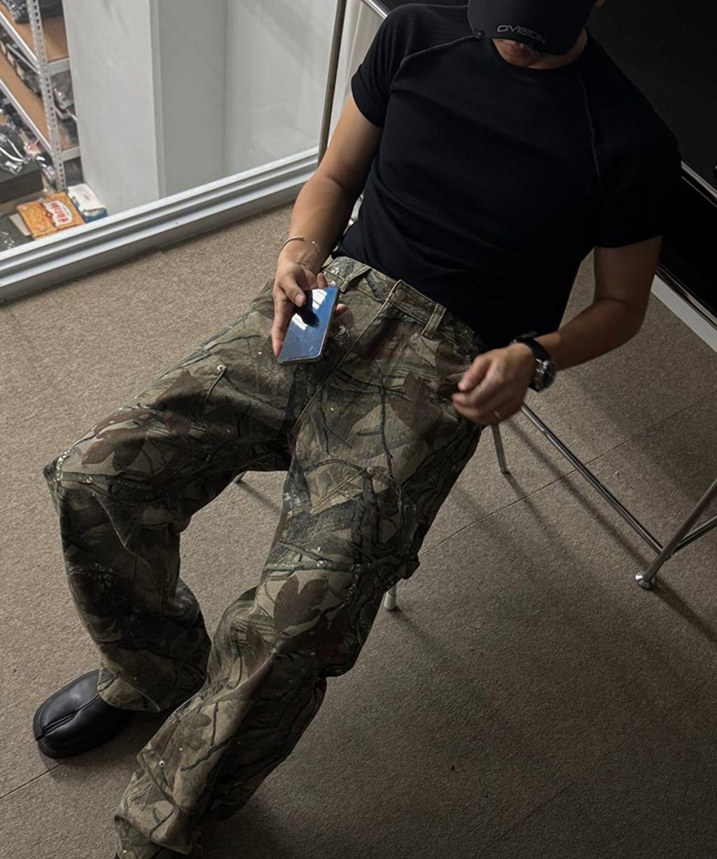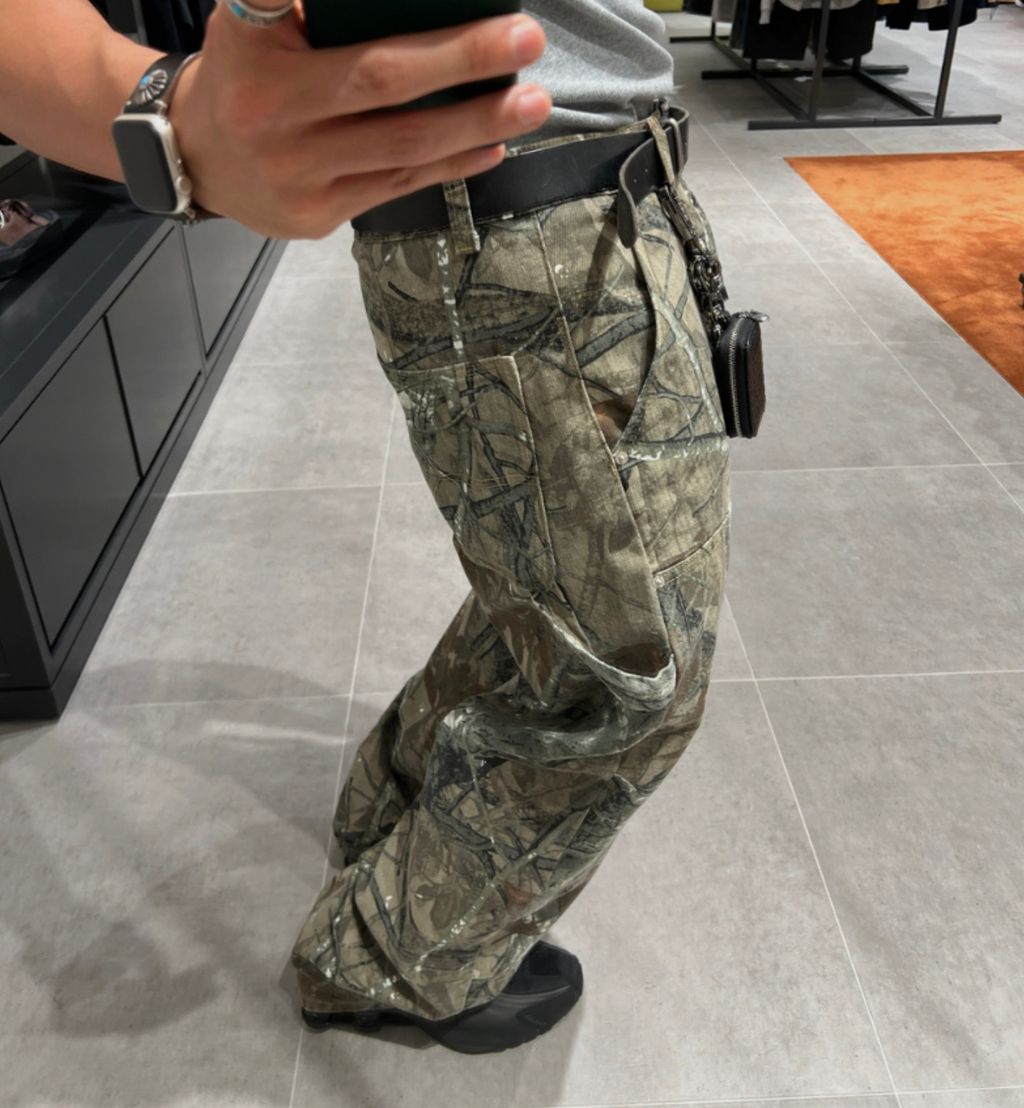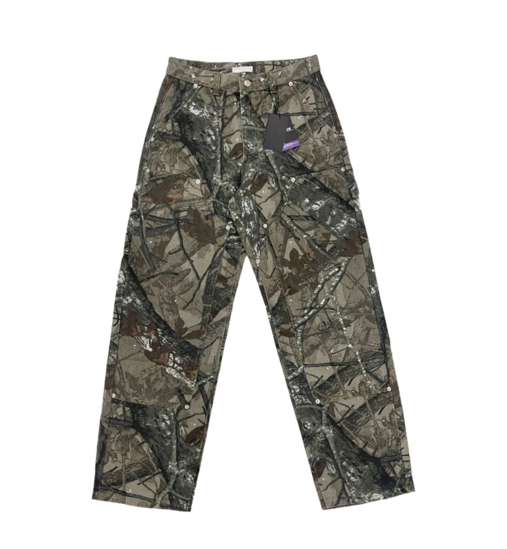 枯木紋路迷彩花紋 小寬管 單寧牛仔 工裝長褲