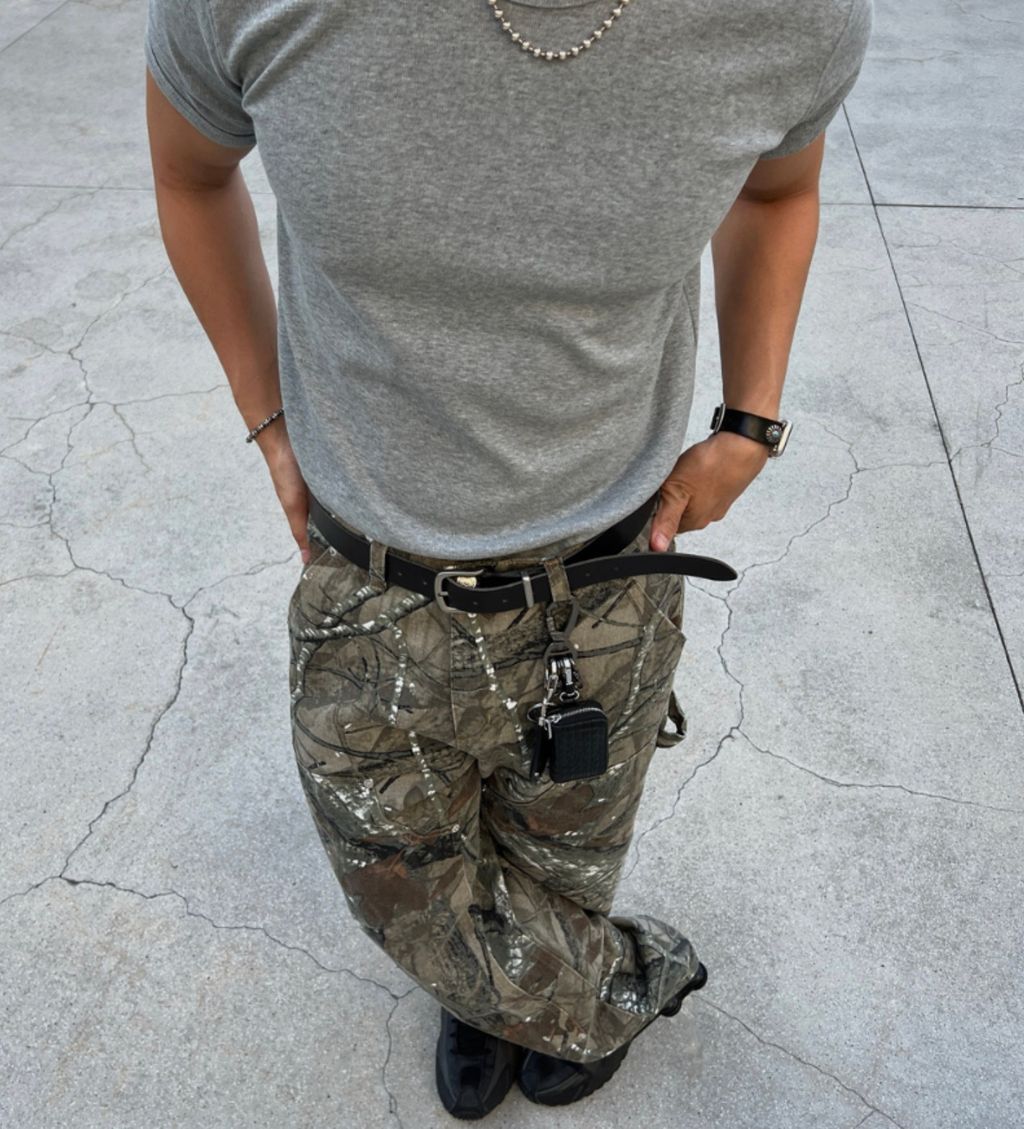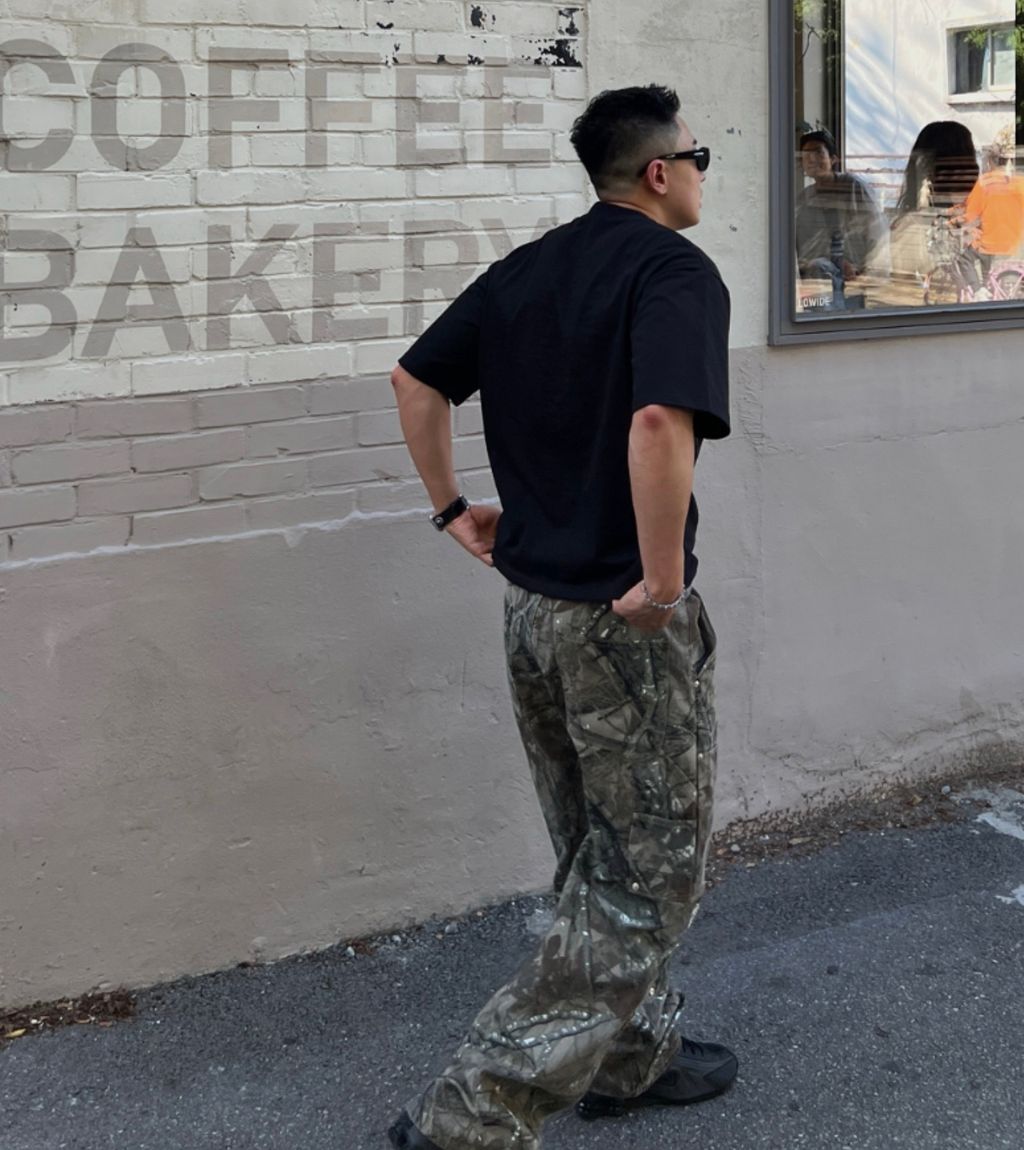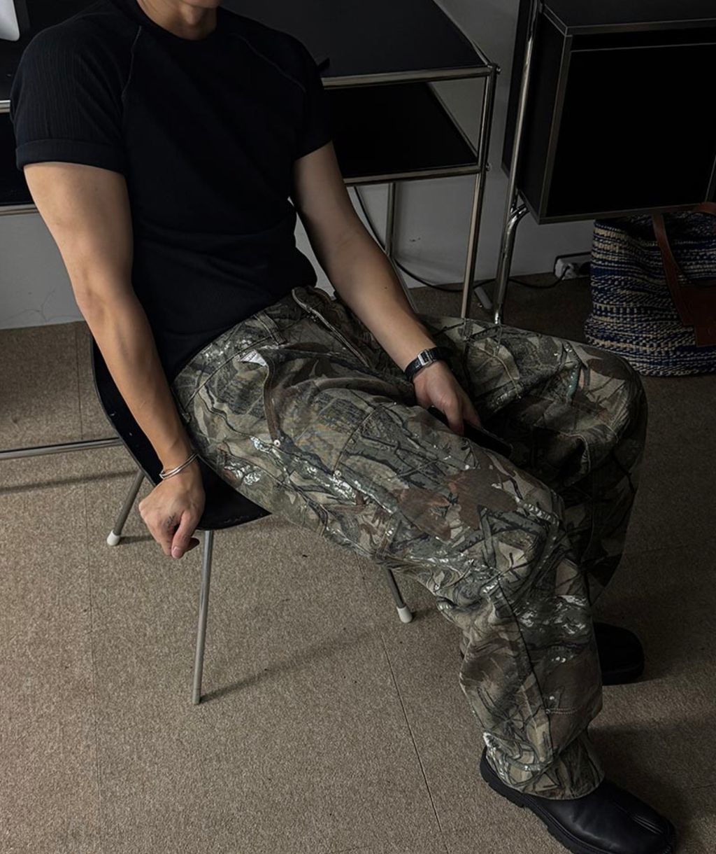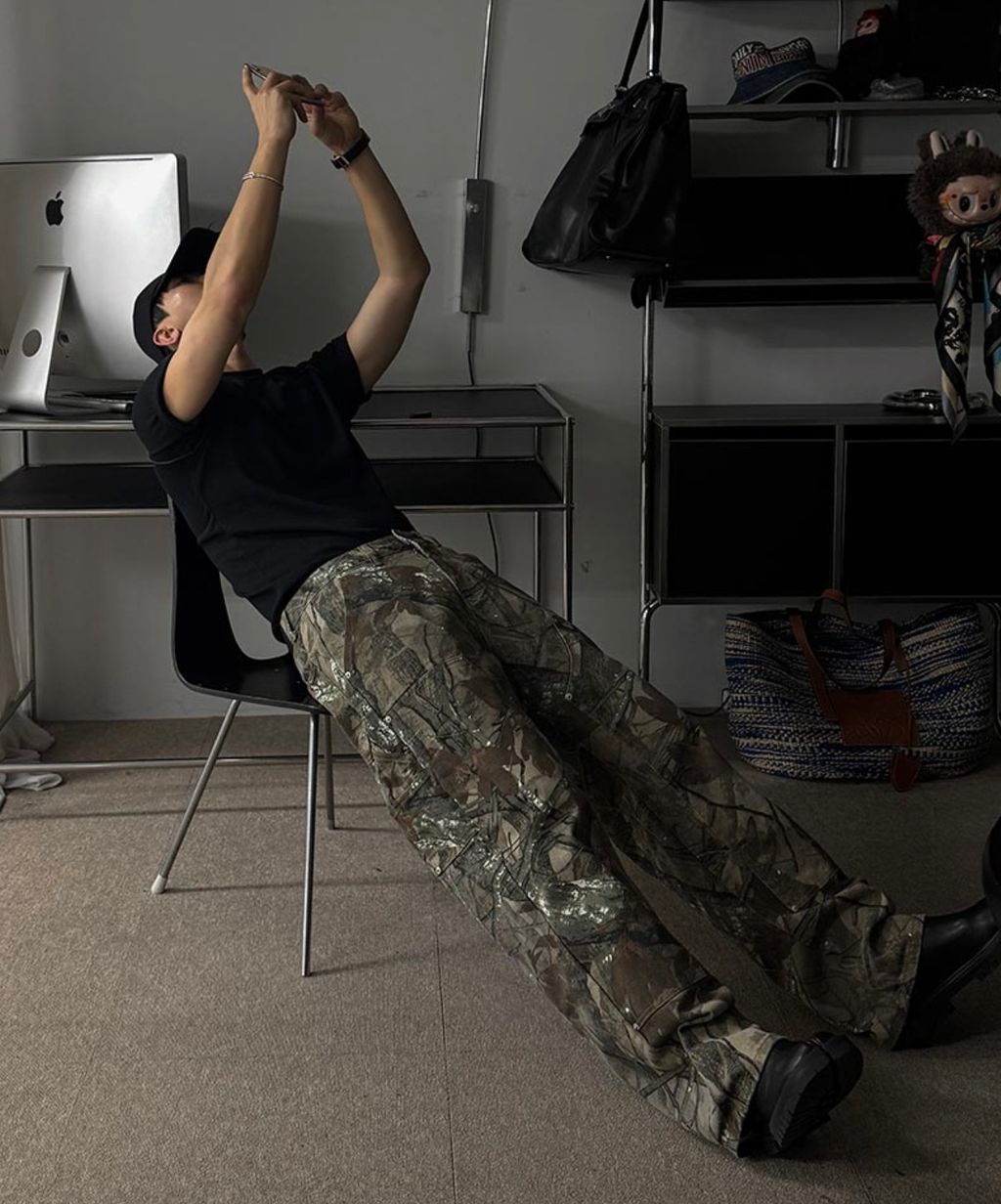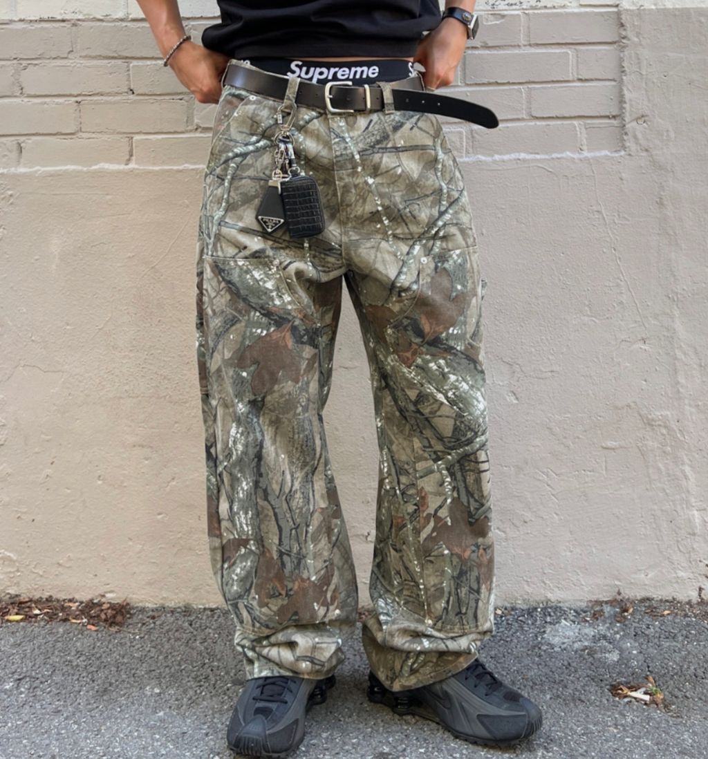 枯木紋路迷彩花紋 小寬管 單寧牛仔 工裝長褲