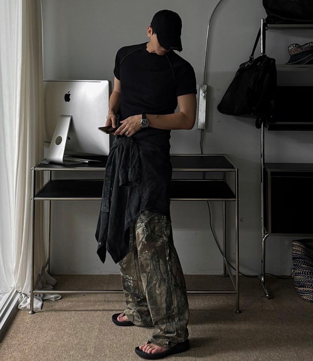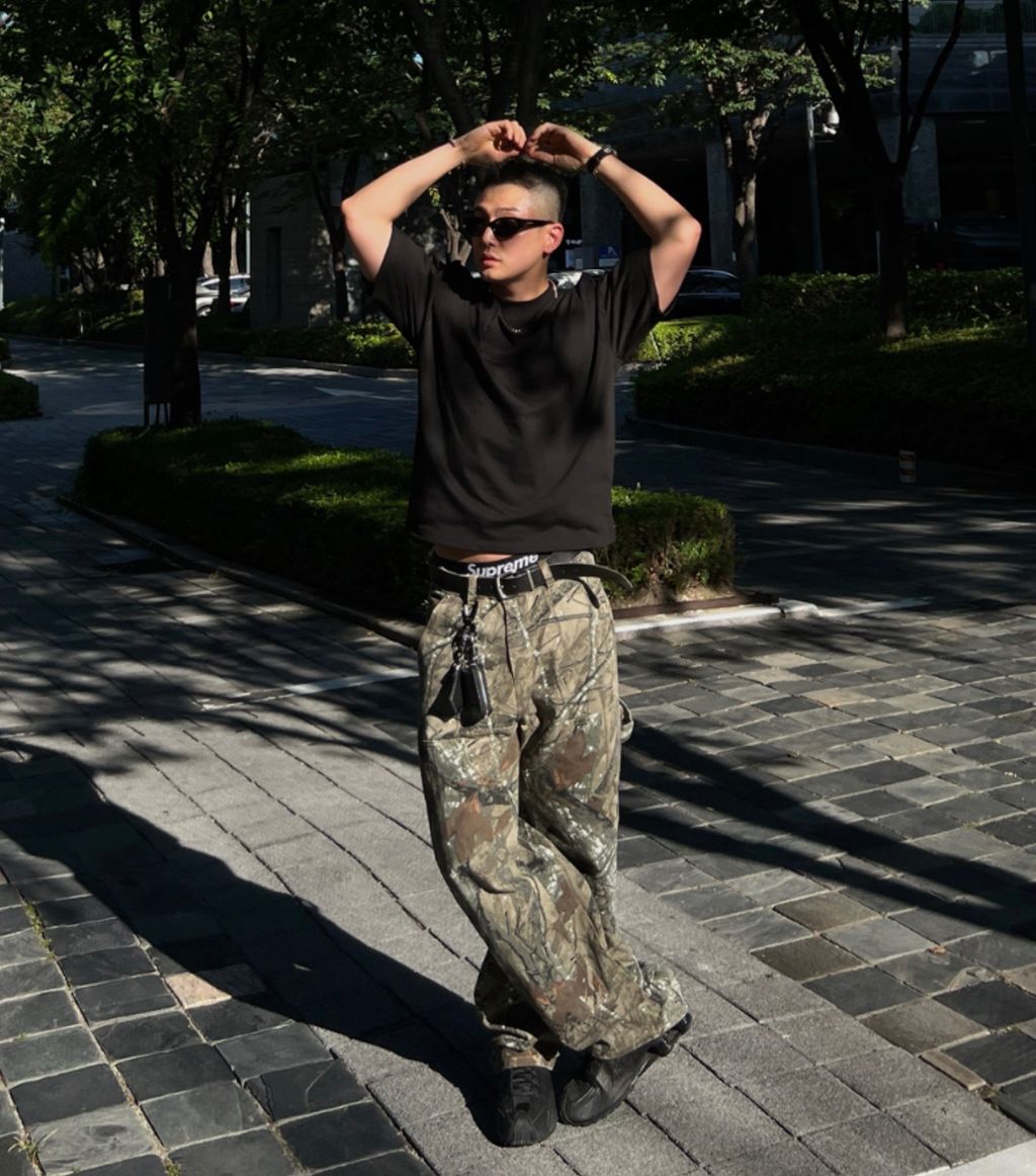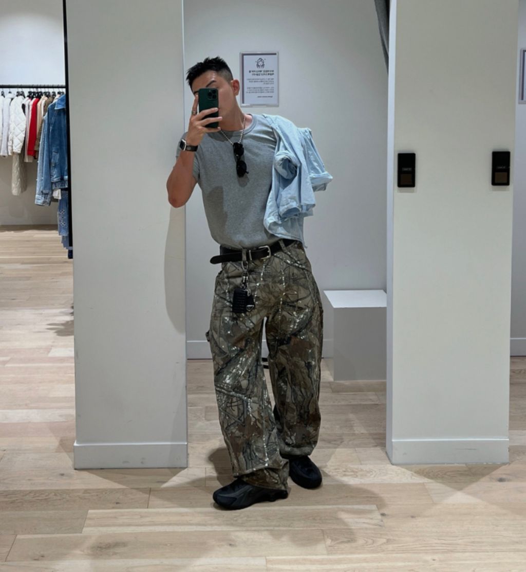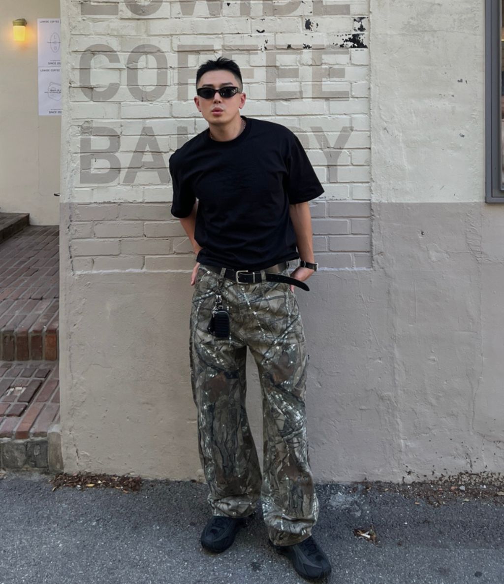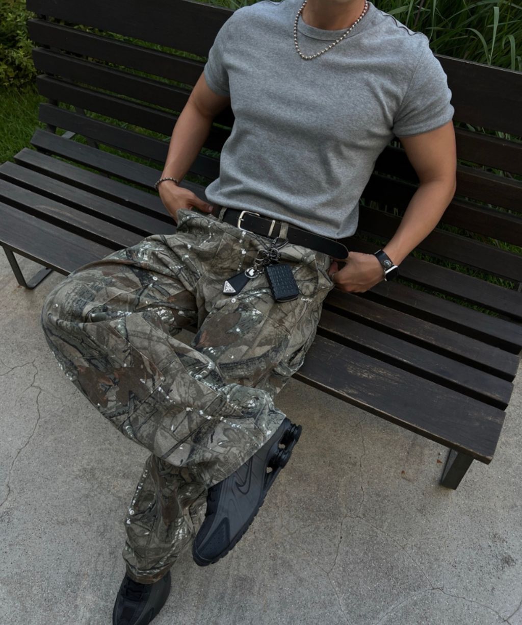 枯木紋路迷彩花紋 小寬管 單寧牛仔 工裝長褲