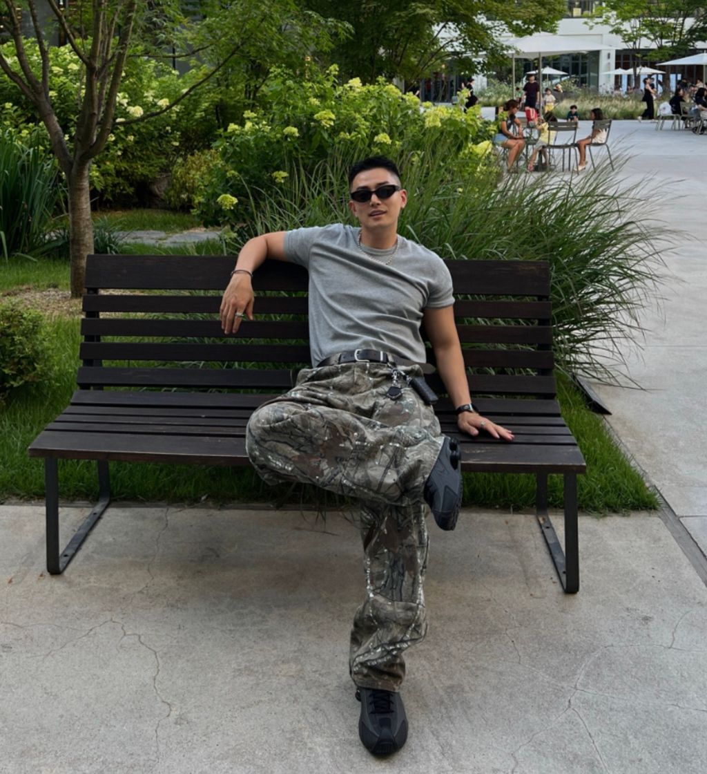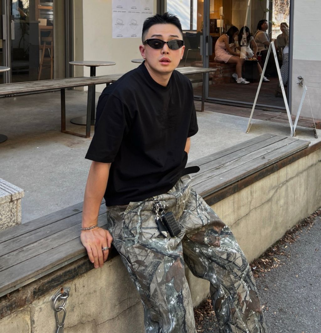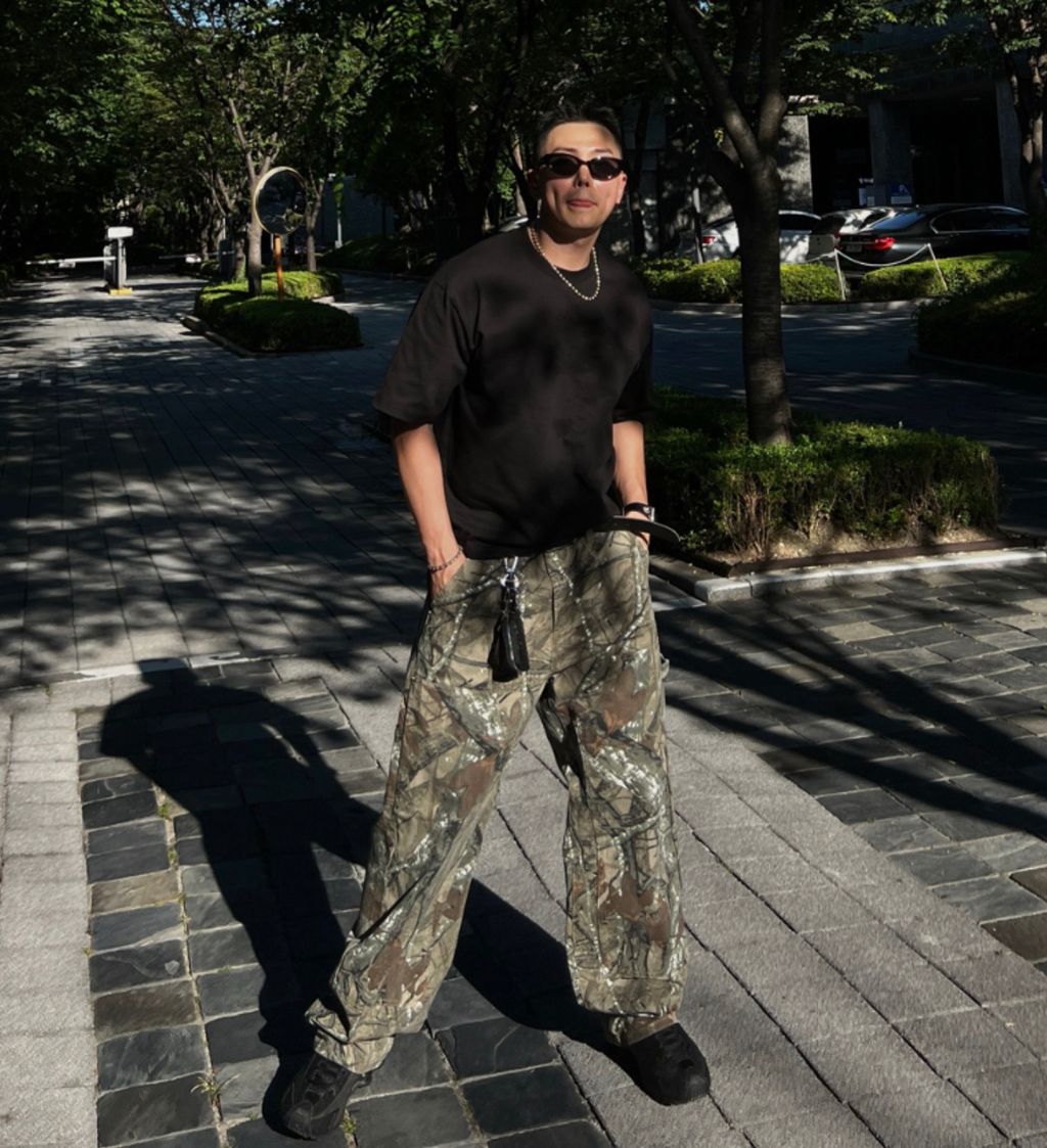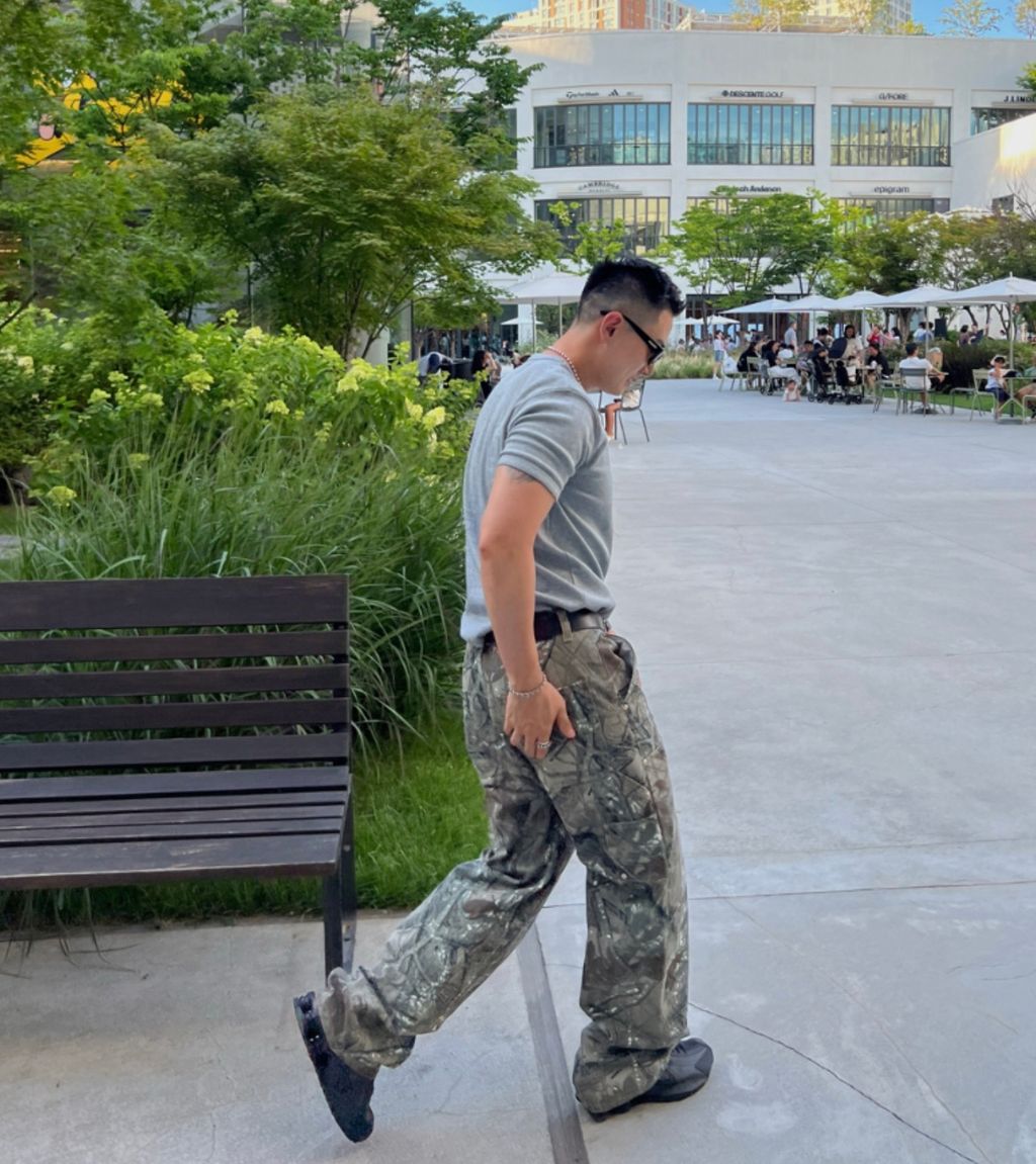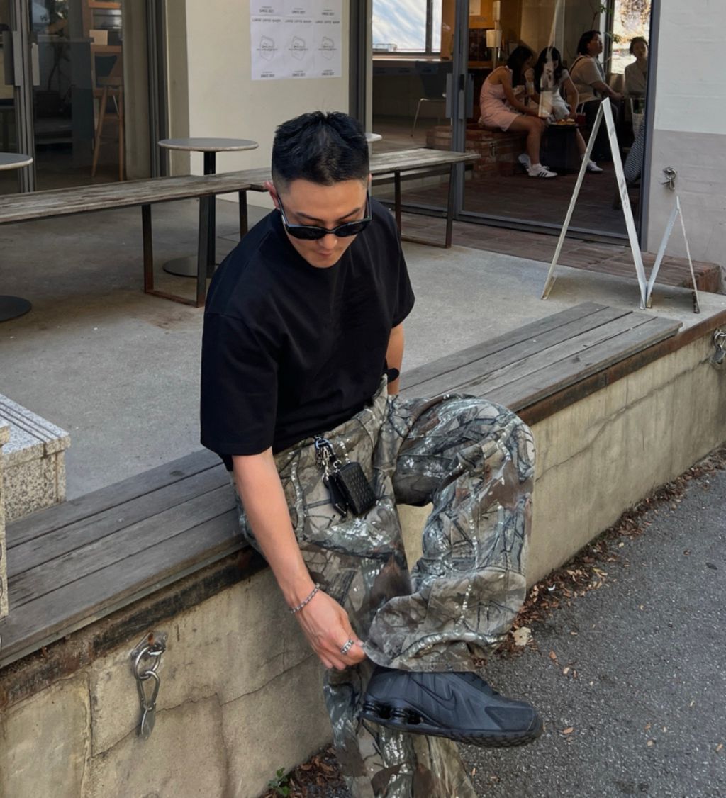 枯木紋路迷彩花紋 小寬管 單寧牛仔 工裝長褲