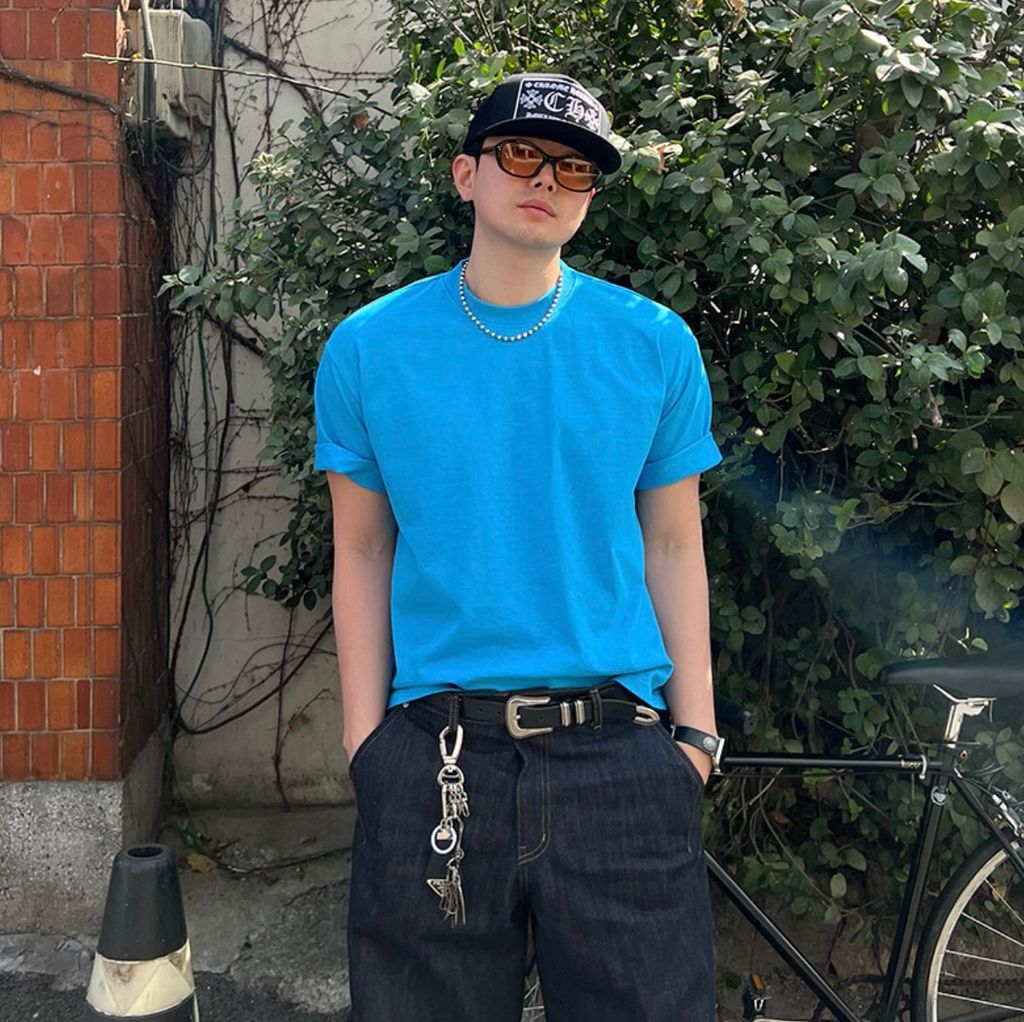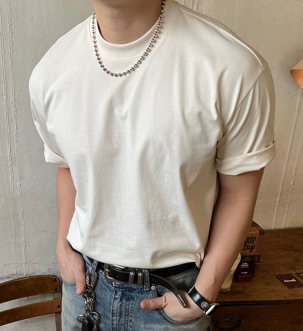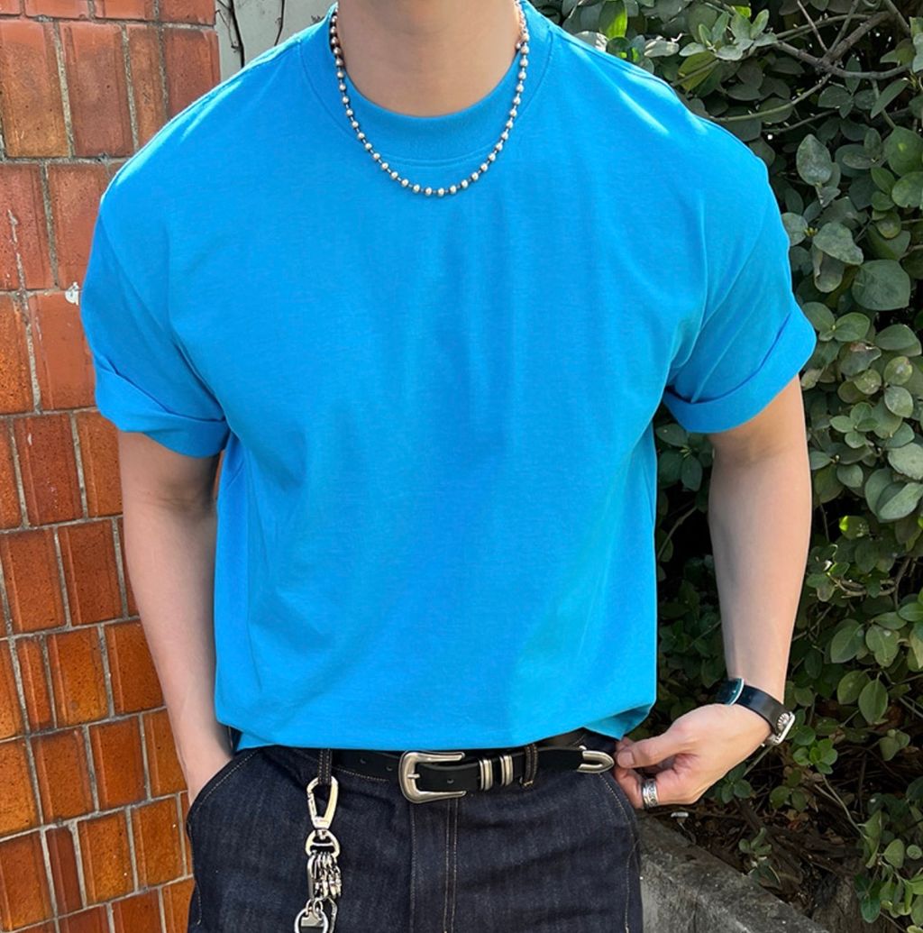 挺版 質感超高 圓領縮口 寬鬆 素色短袖T 四色