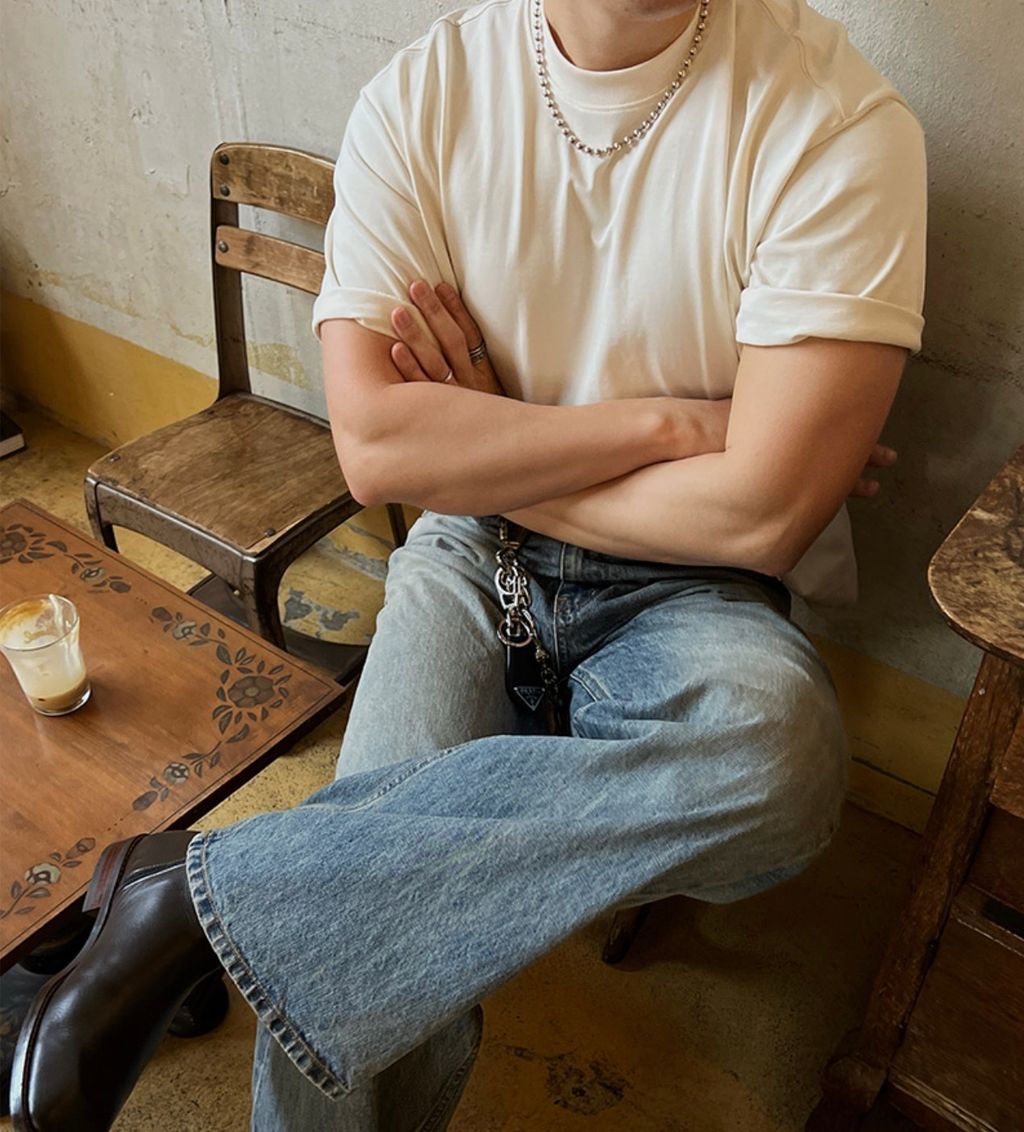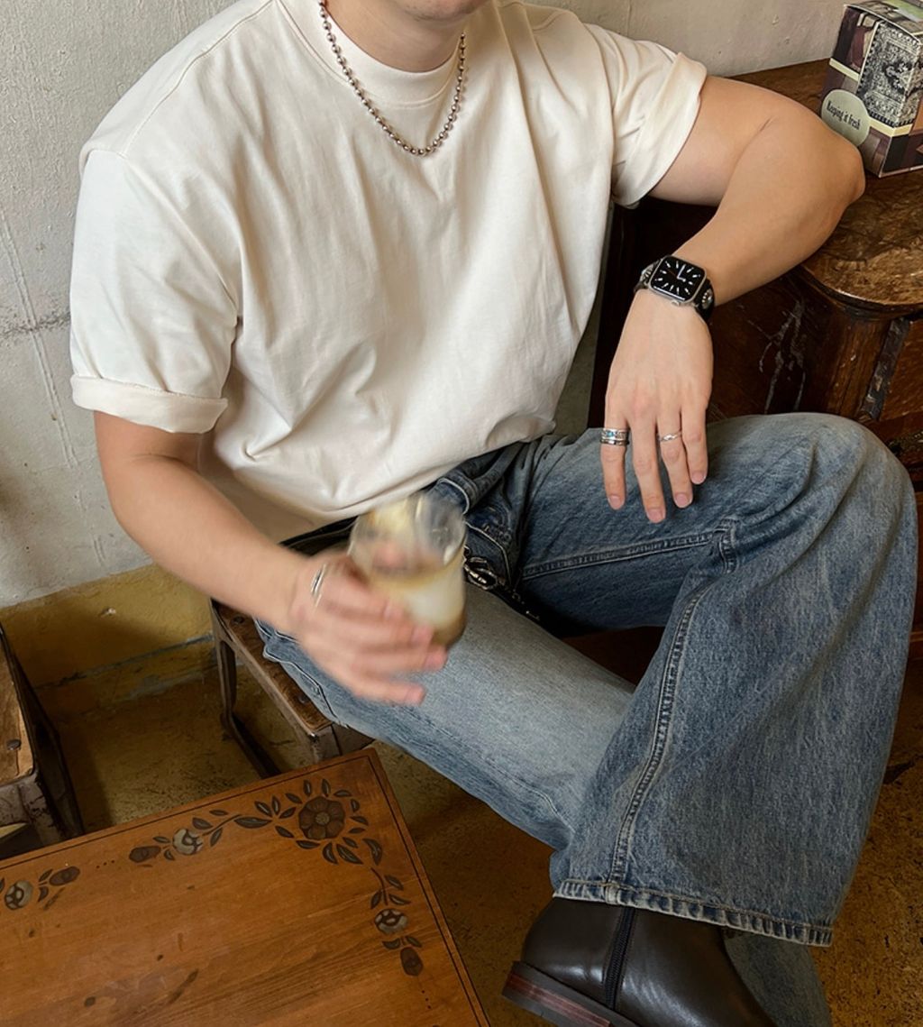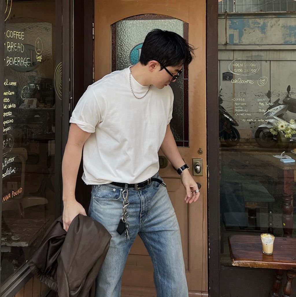 挺版 質感超高 圓領縮口 寬鬆 素色短袖T 四色