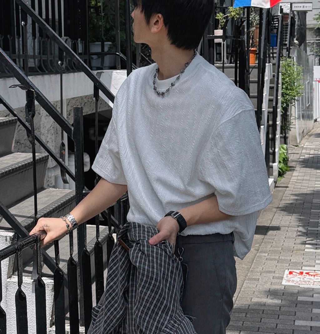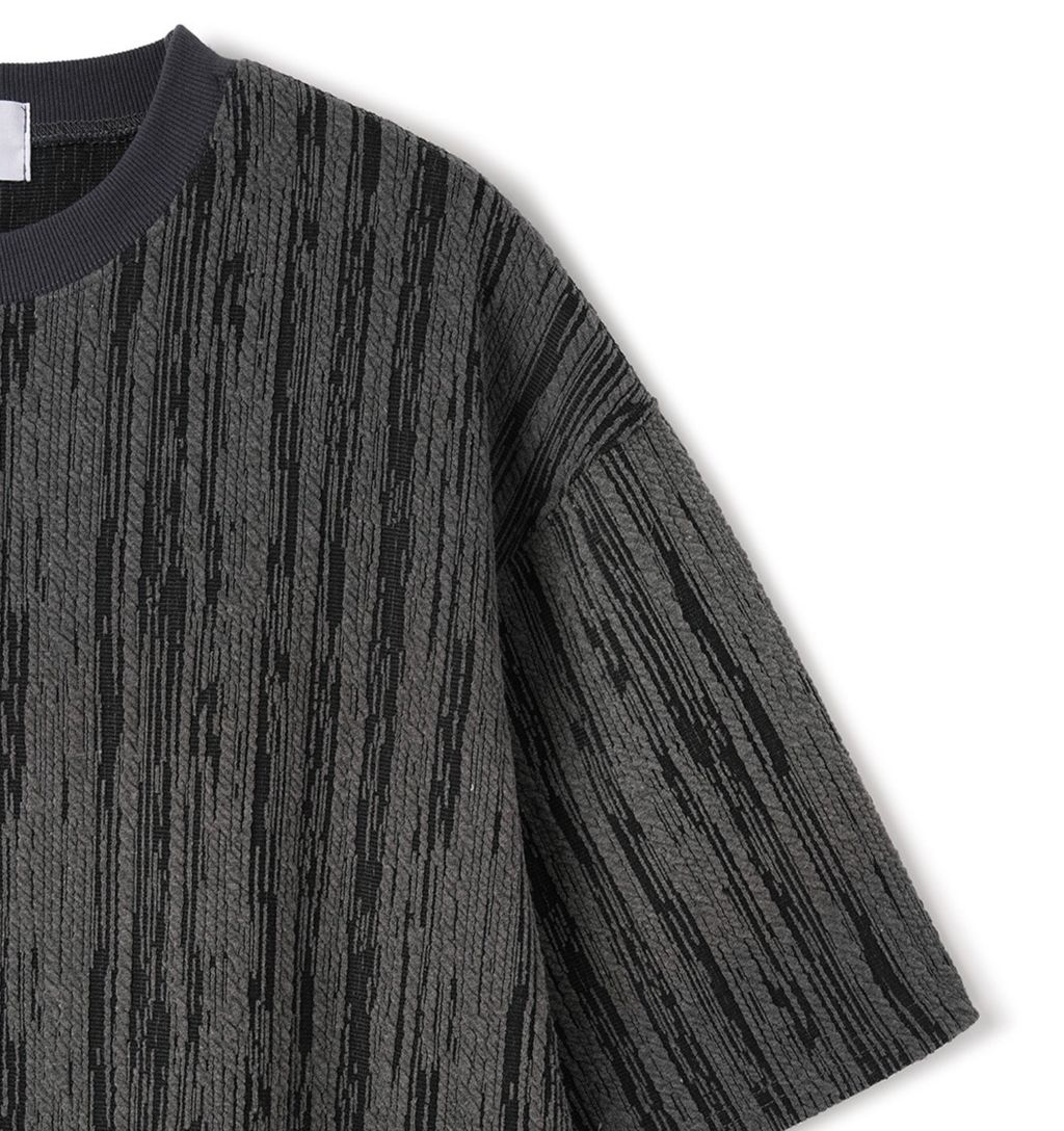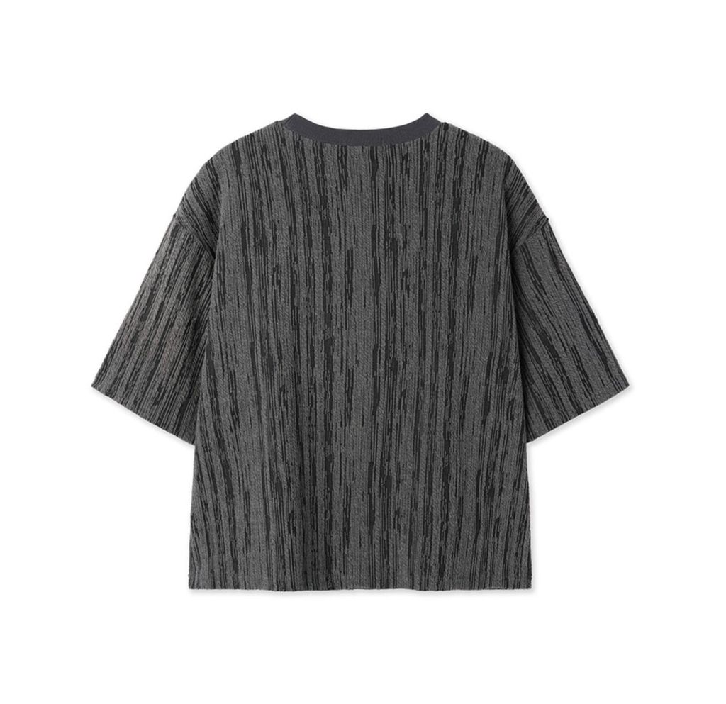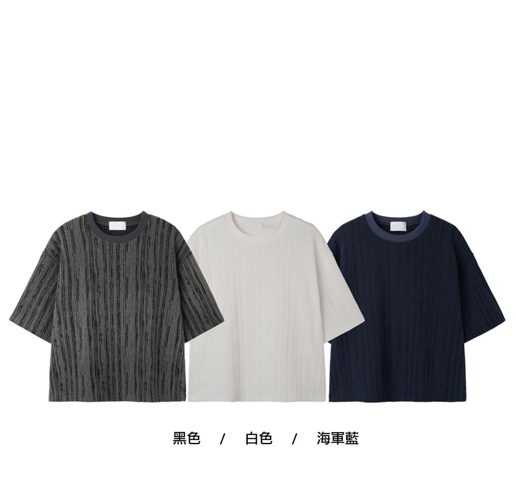木質紋路 領口 寬鬆 五分短袖T 三色