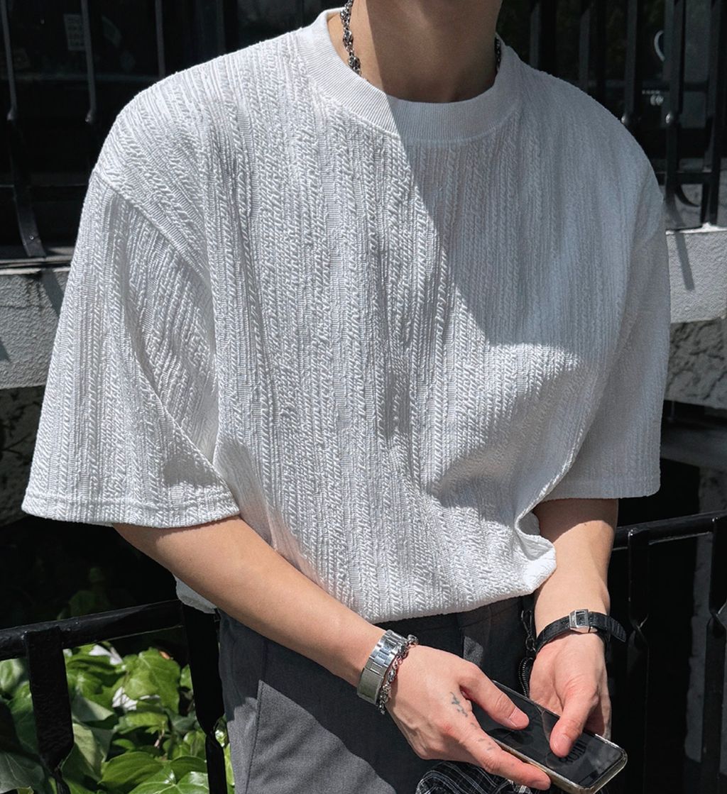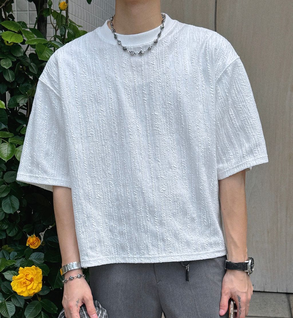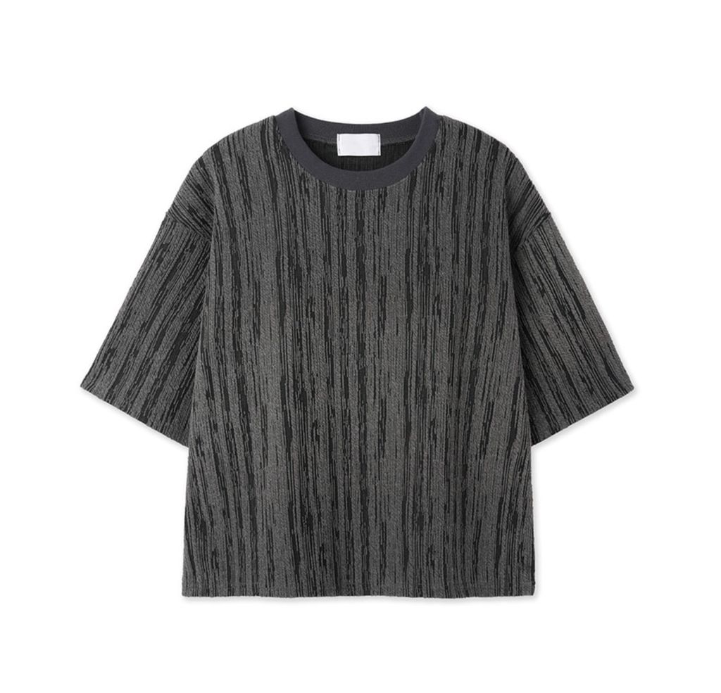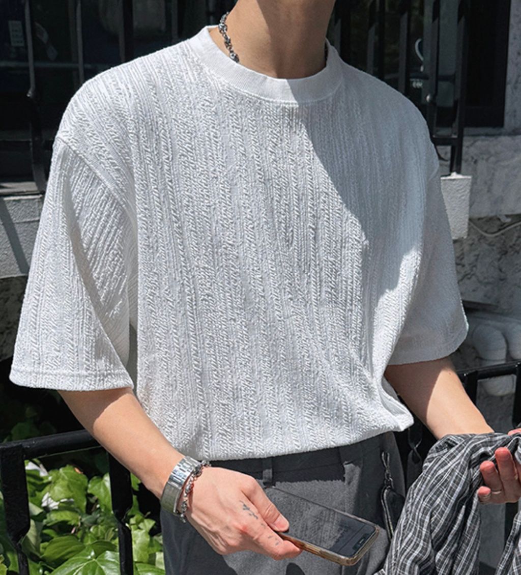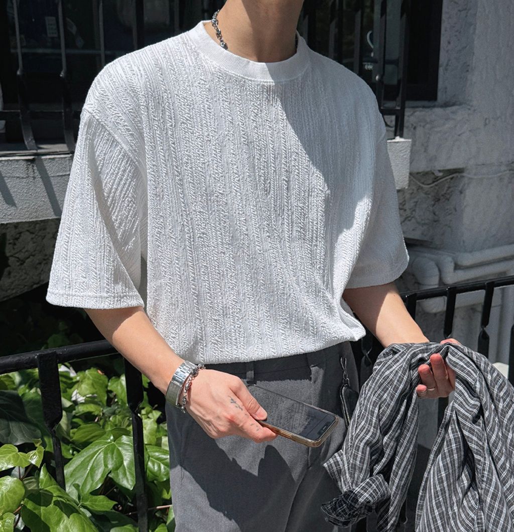 木質紋路 領口 寬鬆 五分短袖T 三色