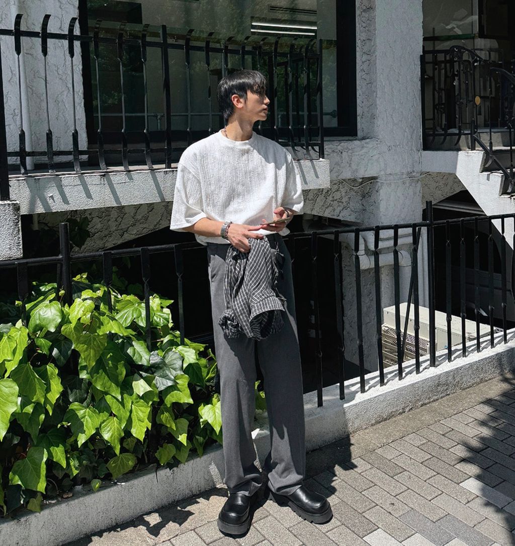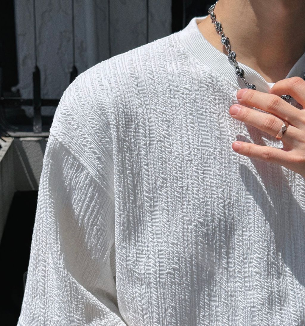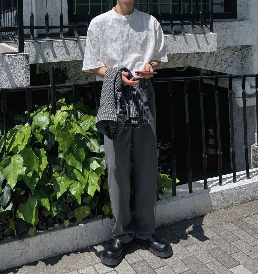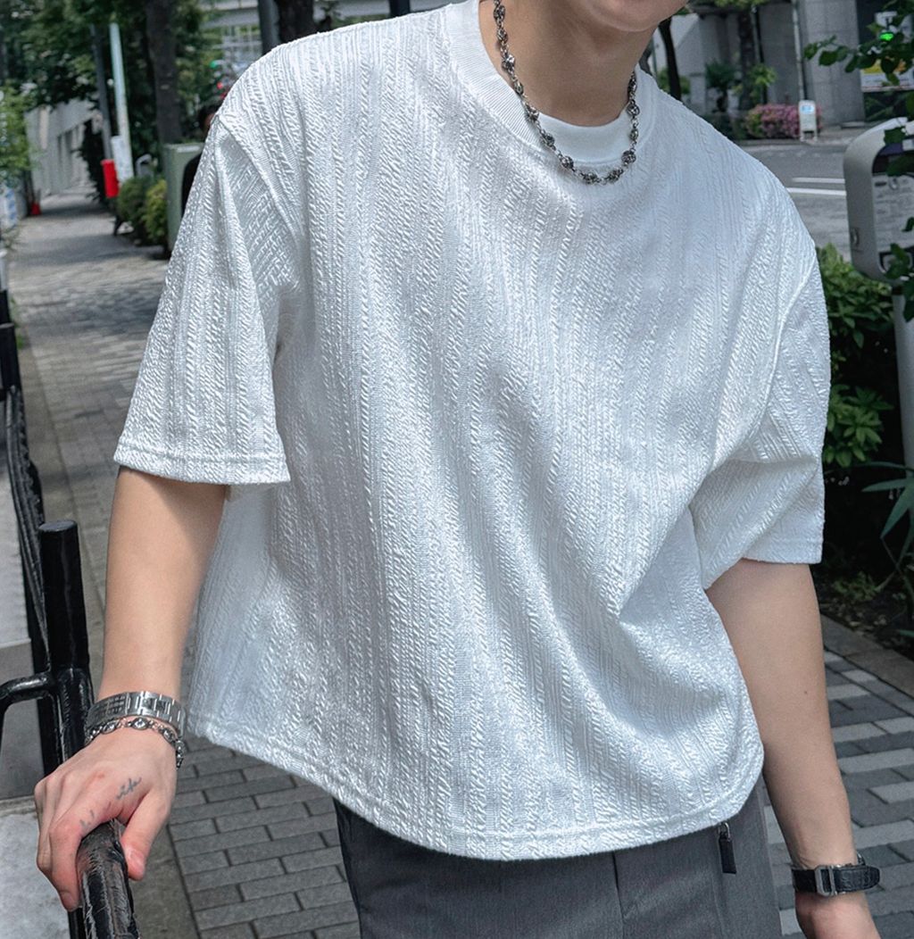 木質紋路 領口 寬鬆 五分短袖T 三色