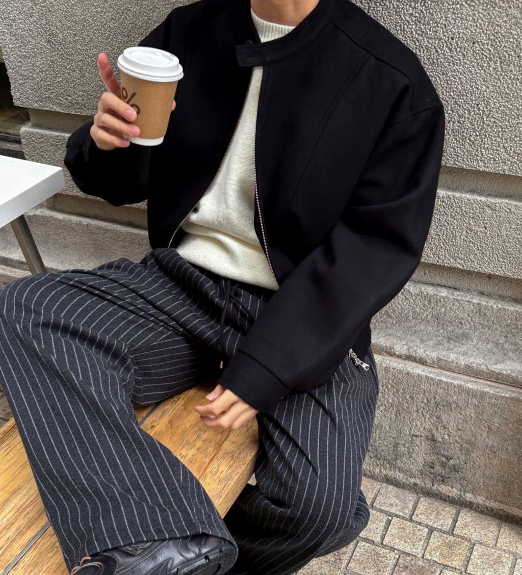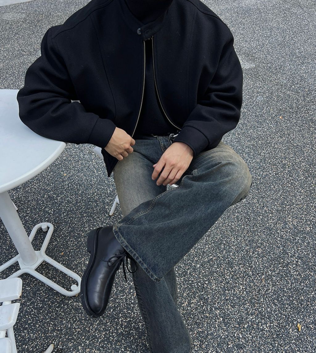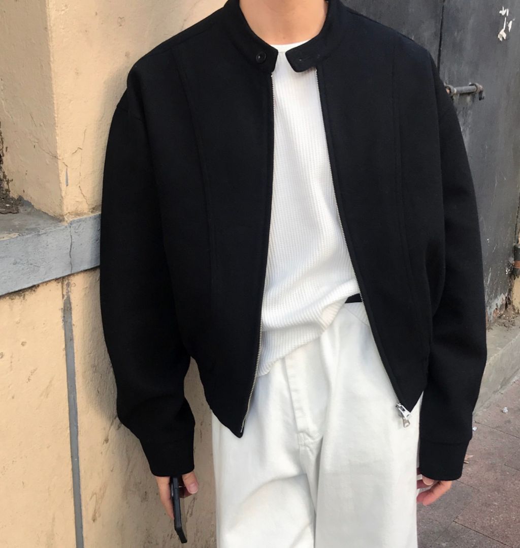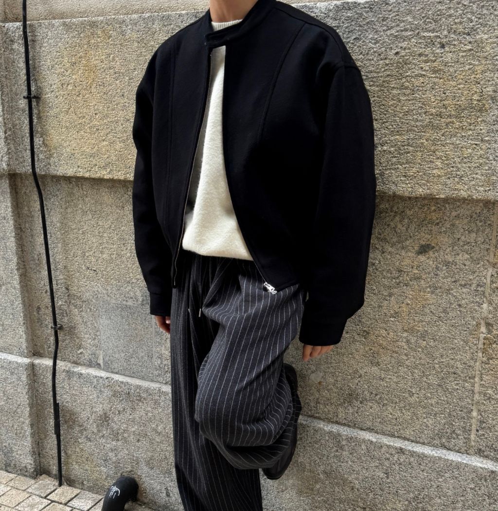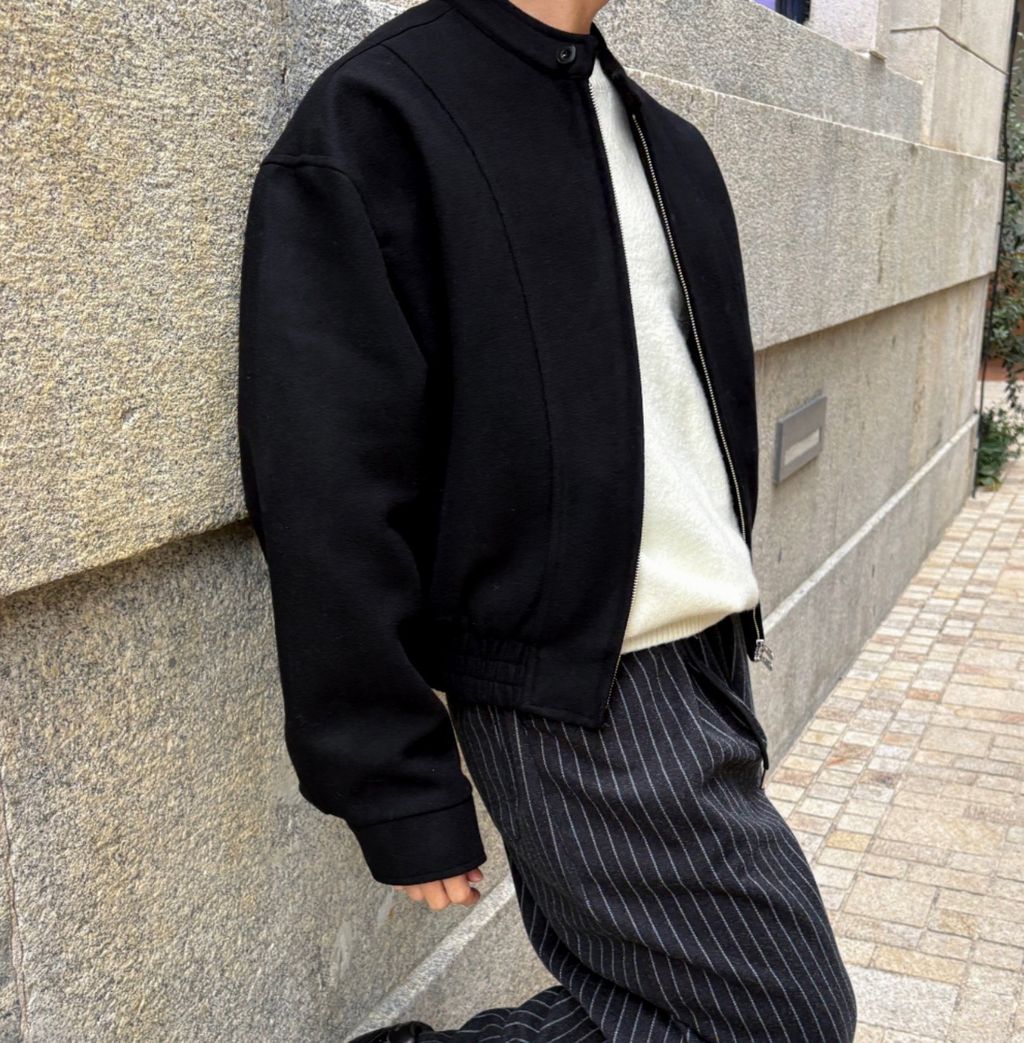 羊毛70趴 超高級 無領羊毛短版騎士夾克外套 三色
