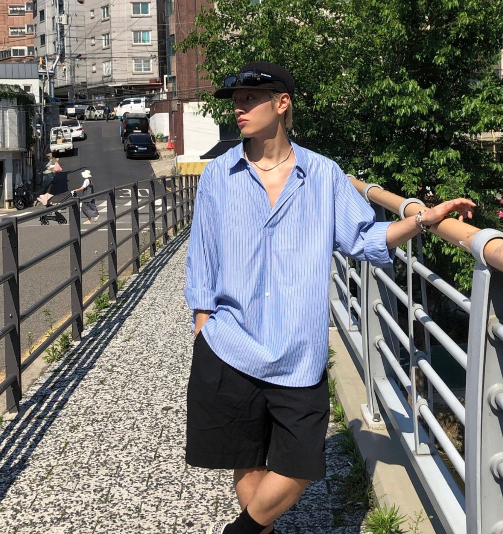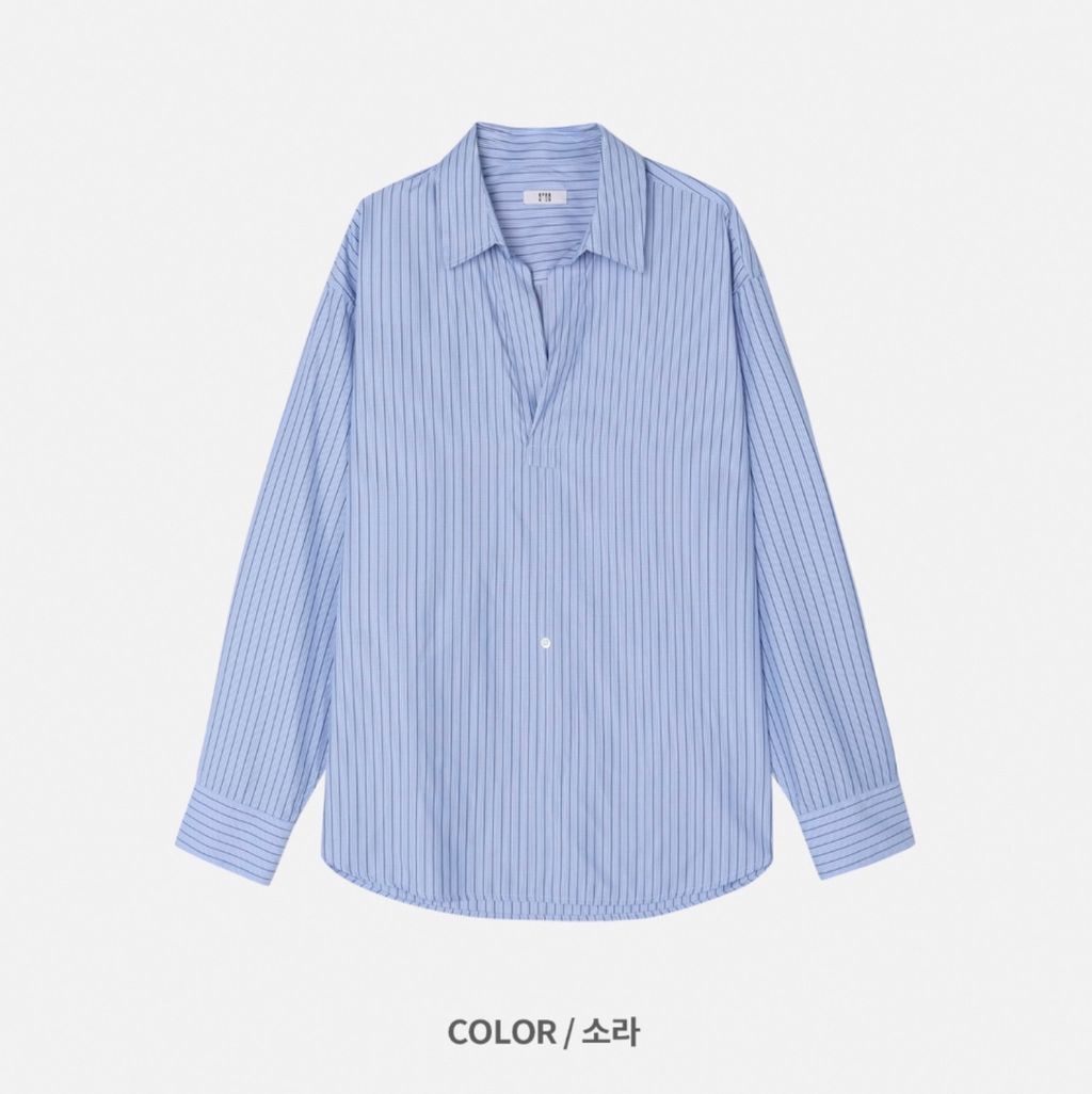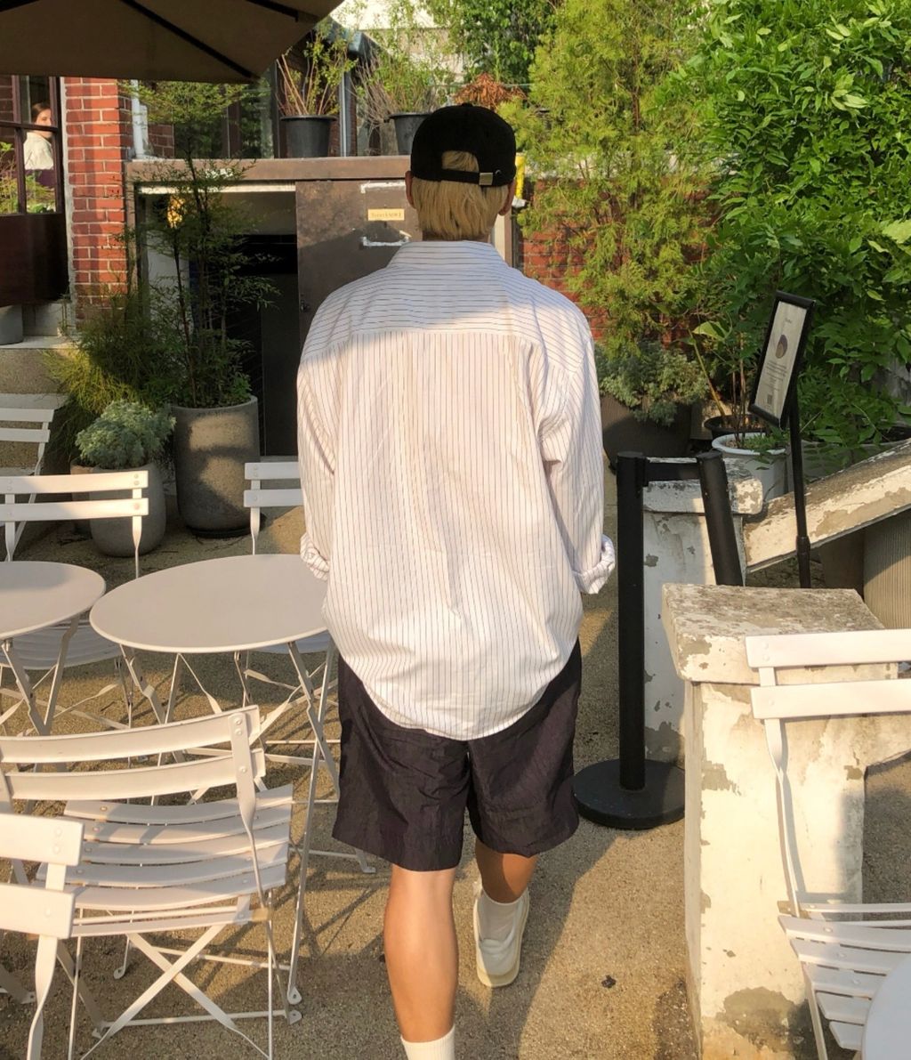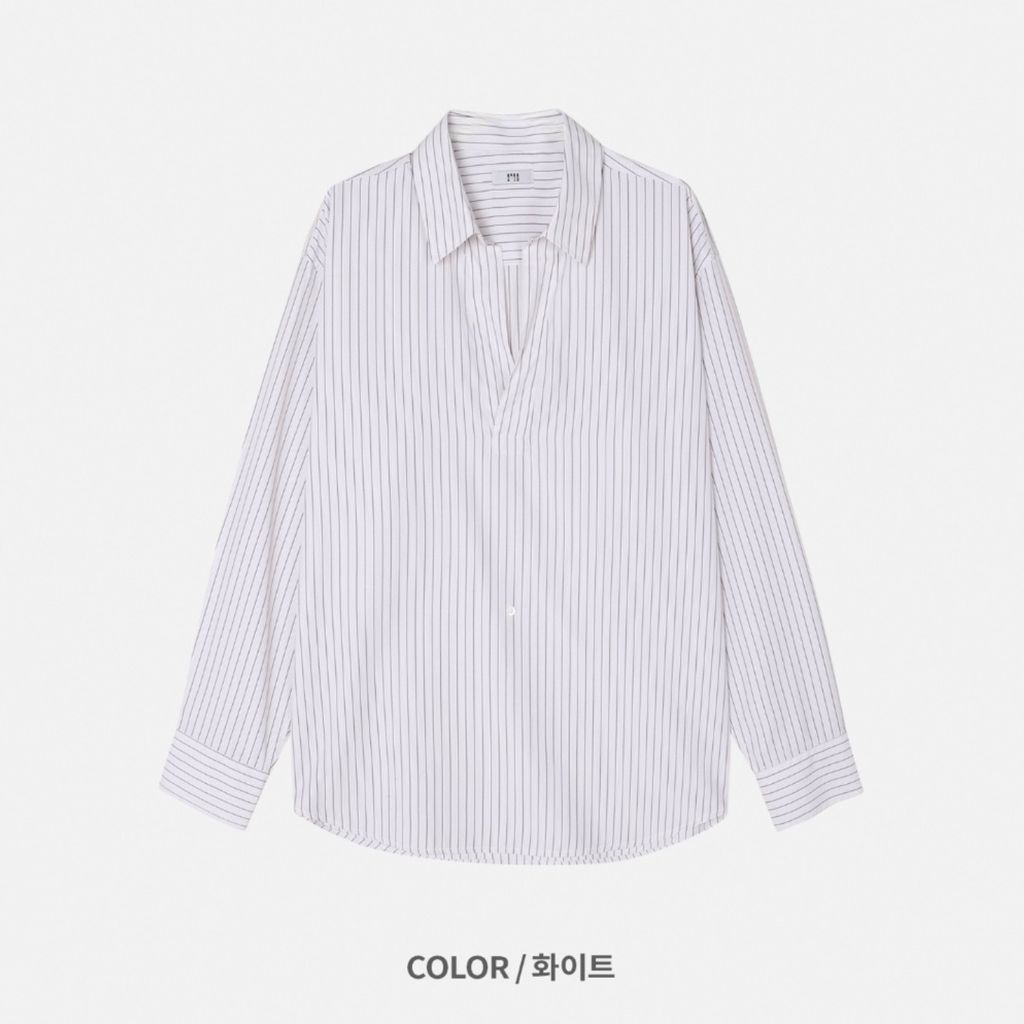 寬鬆版型 街頭 條紋布料 細條紋 長袖襯衫 兩色