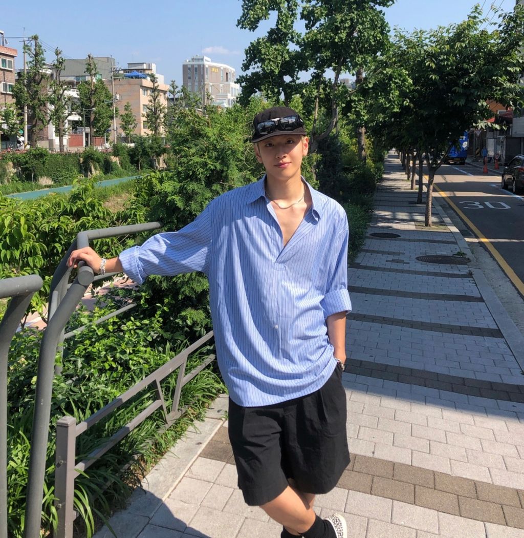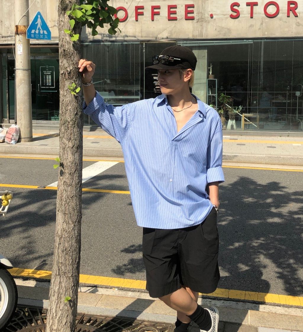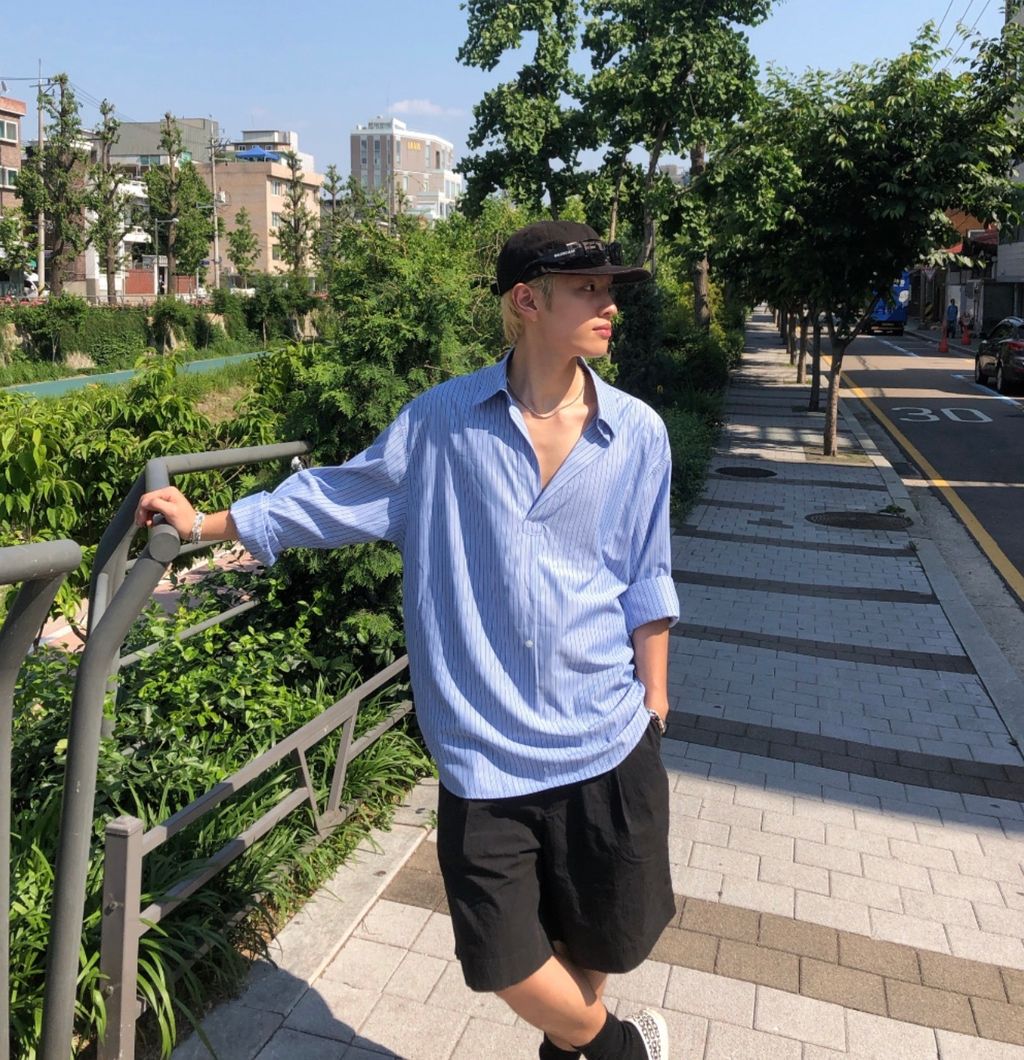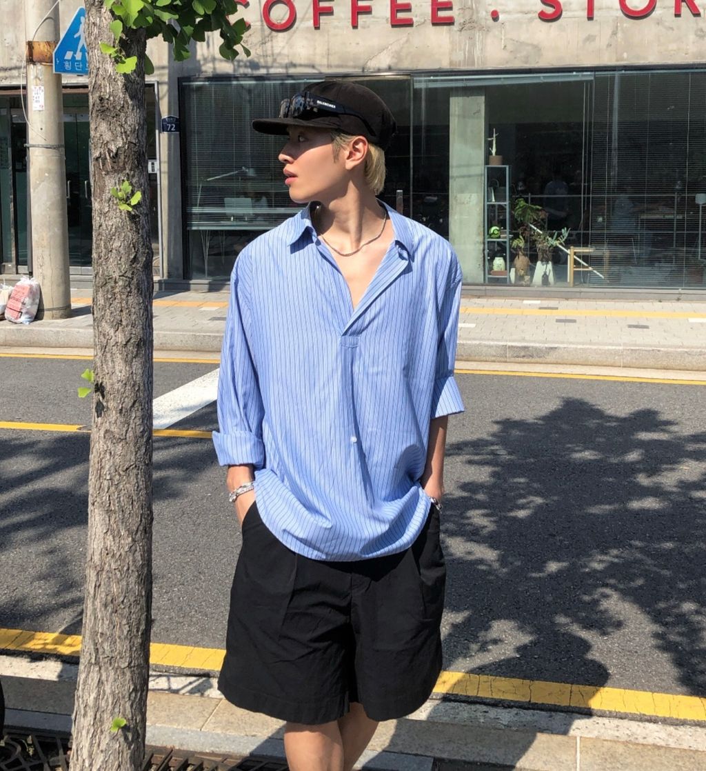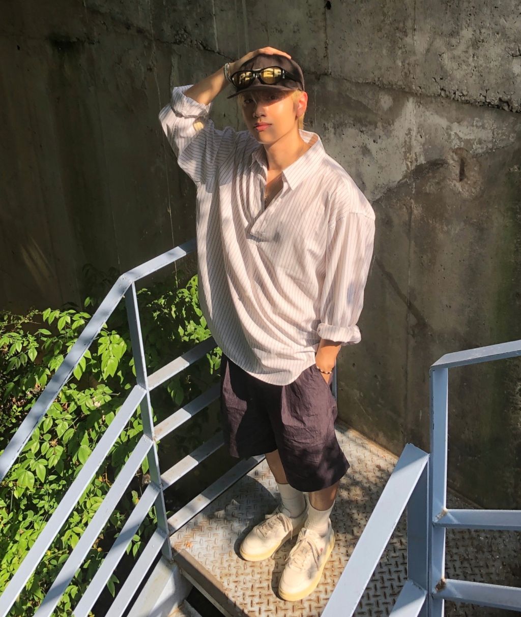 寬鬆版型 街頭 條紋布料 細條紋 長袖襯衫 兩色