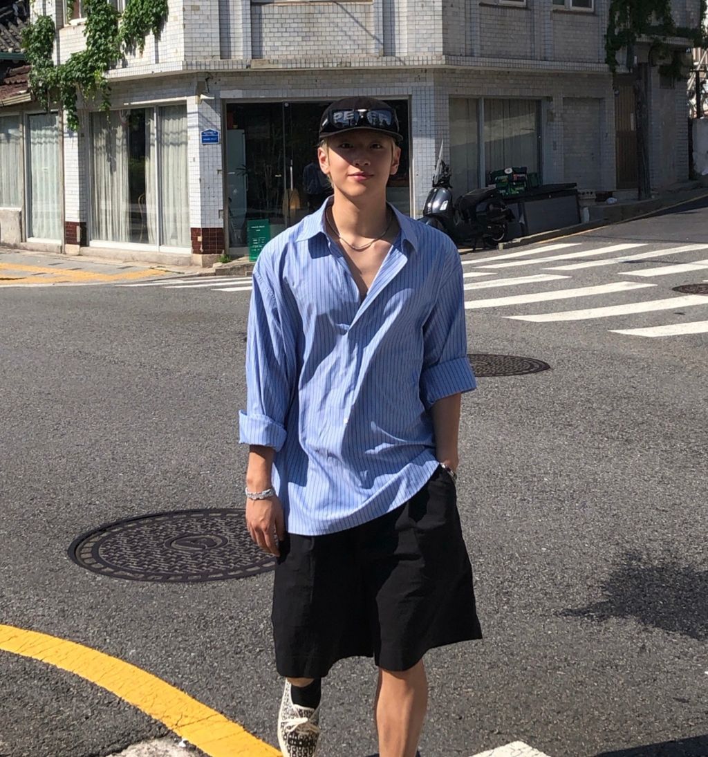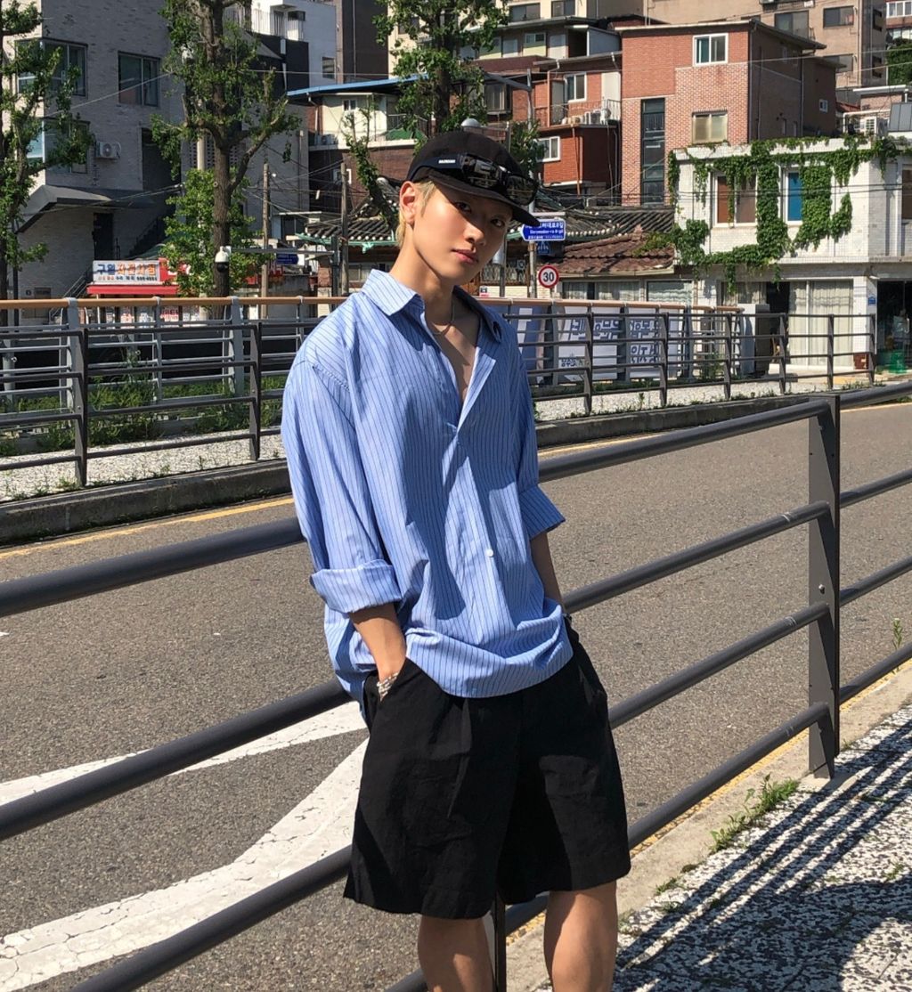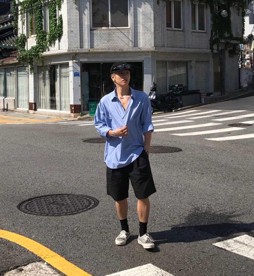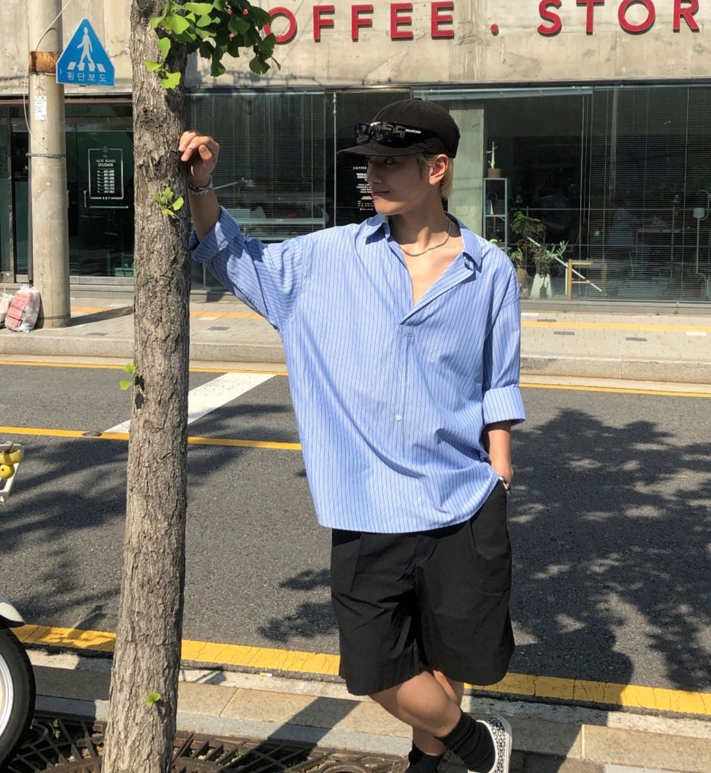 寬鬆版型 街頭 條紋布料 細條紋 長袖襯衫 兩色