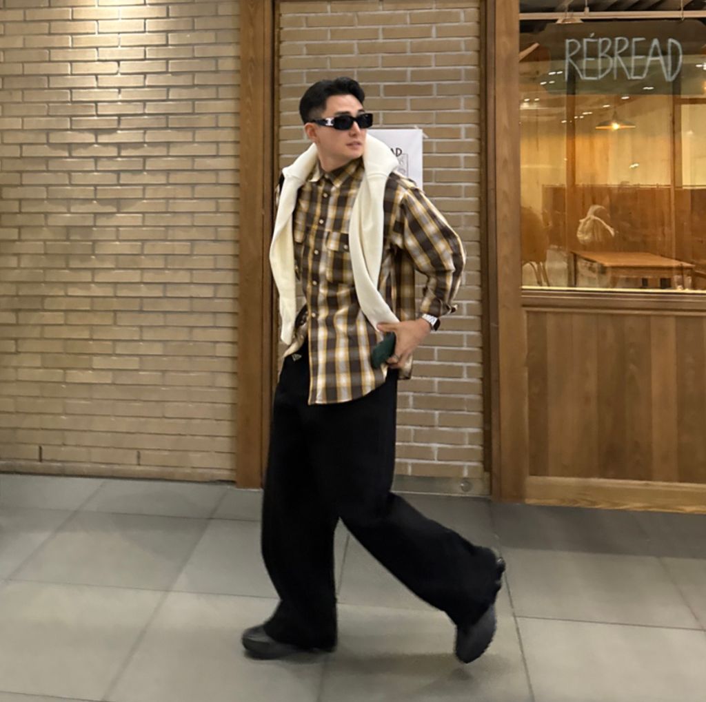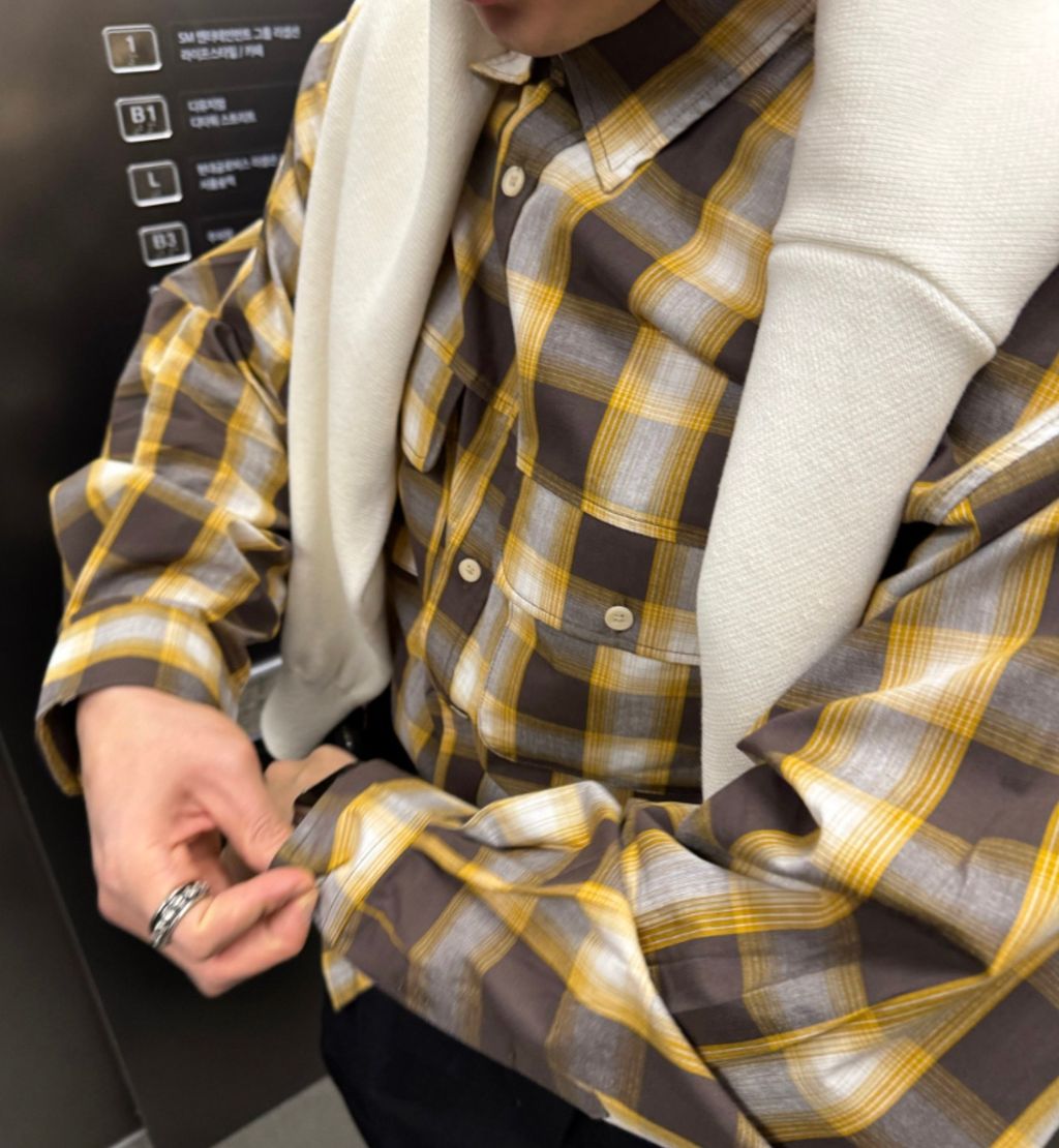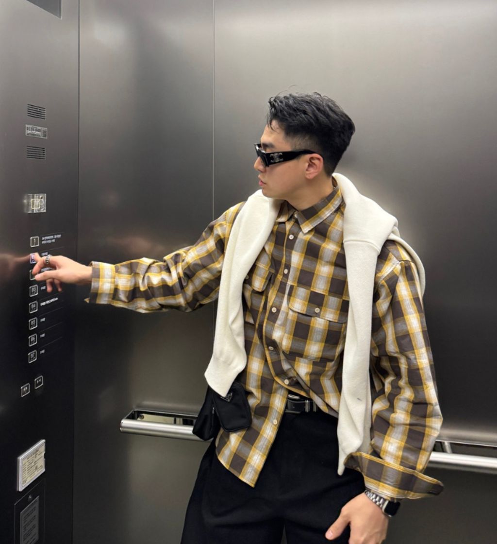 江南歐爸穿搭 春季大格紋薄款長袖襯衫 兩色