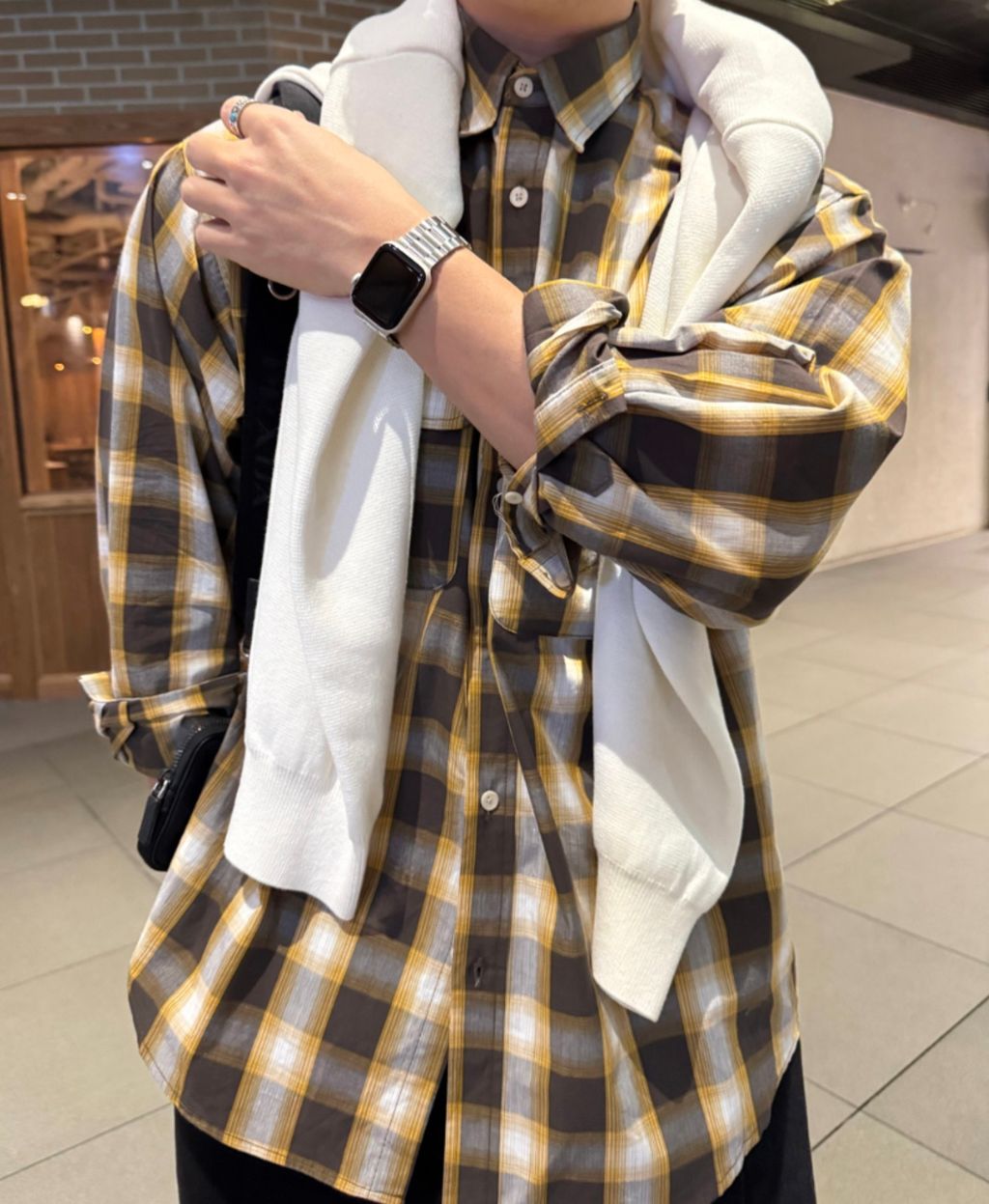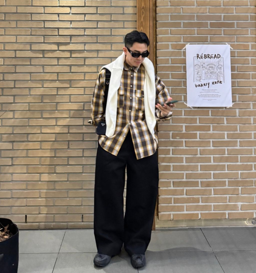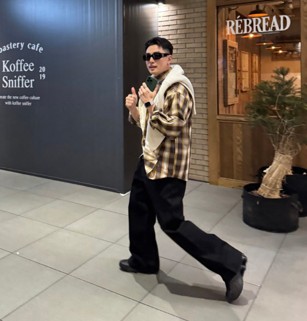 江南歐爸穿搭 春季大格紋薄款長袖襯衫 兩色