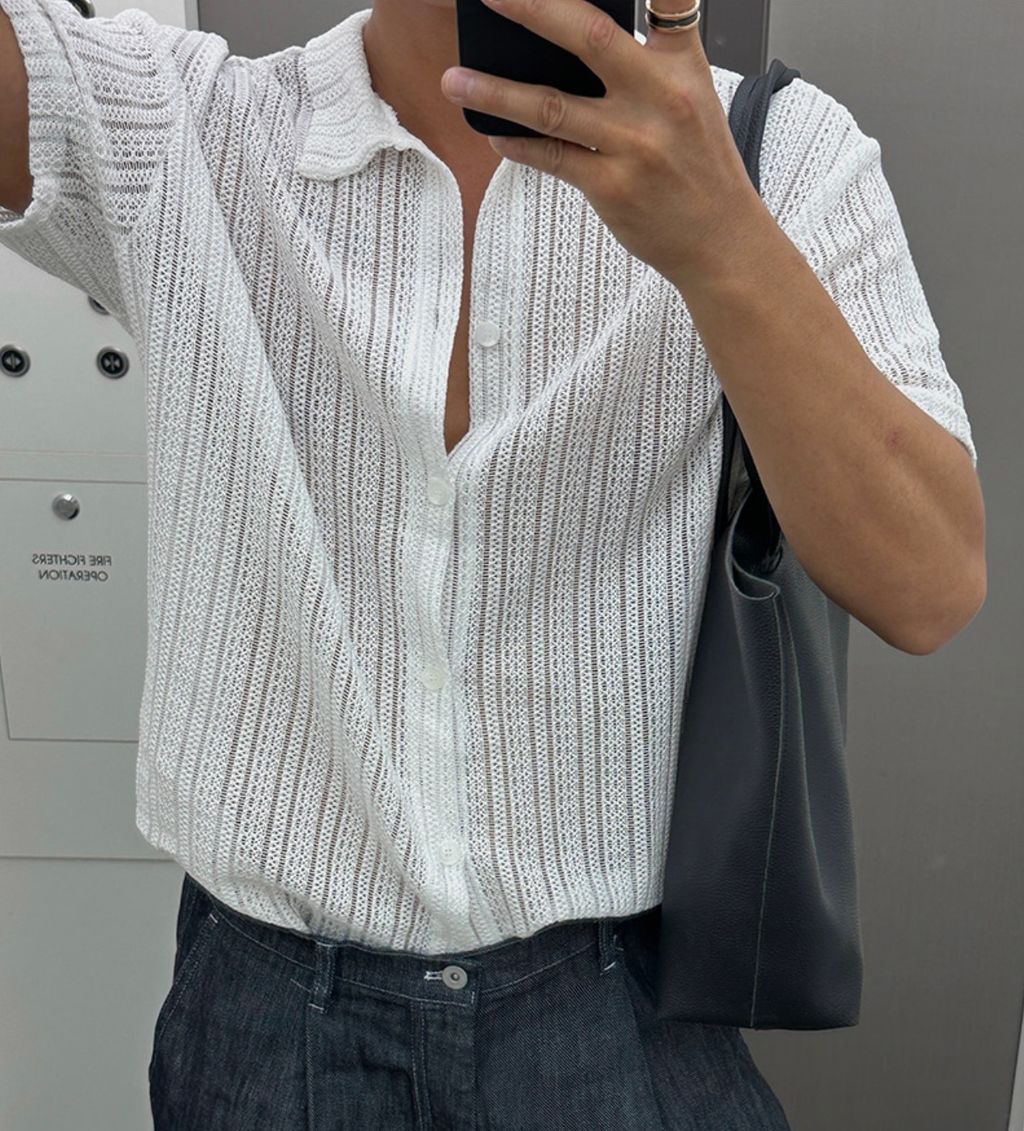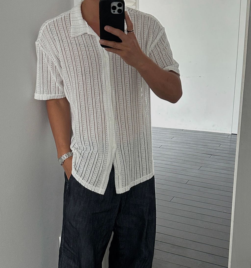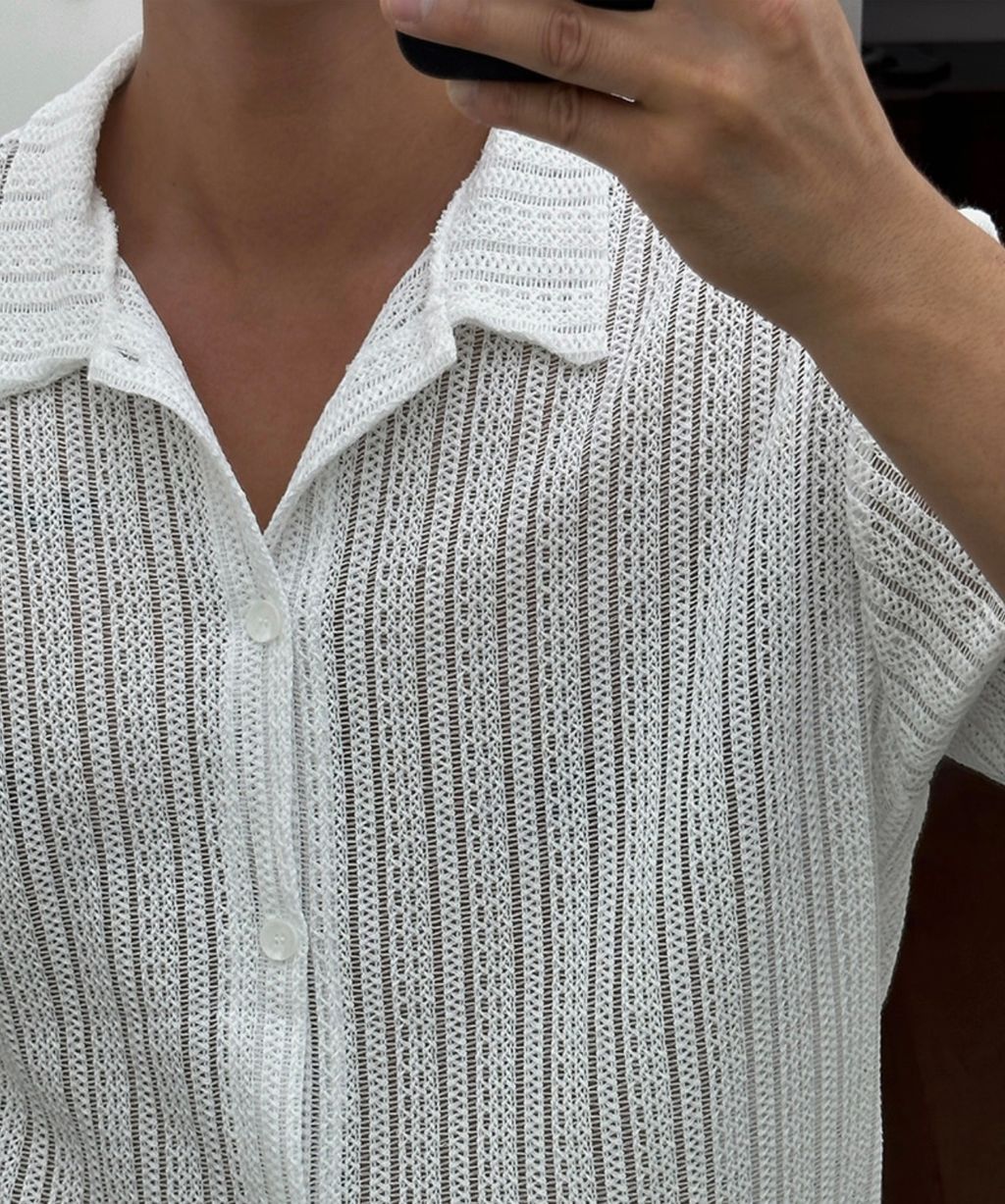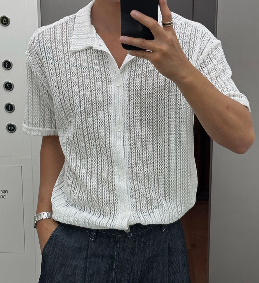 透膚 細細紋路 鬆弛感 短袖襯衫 兩色