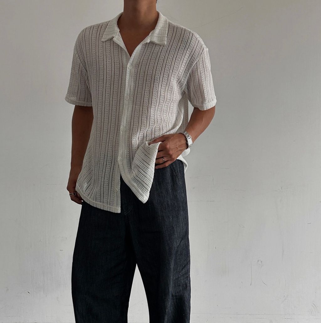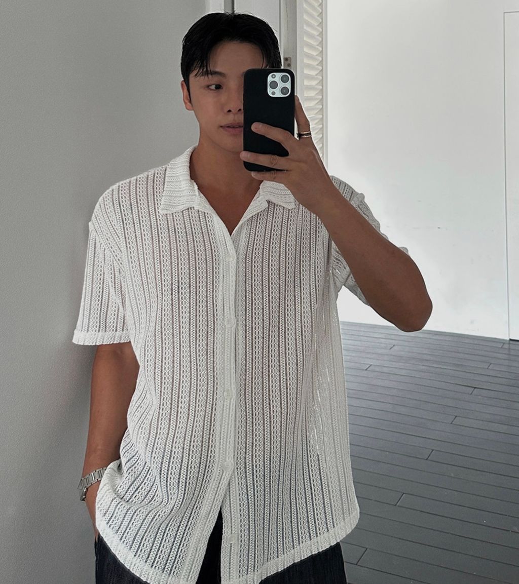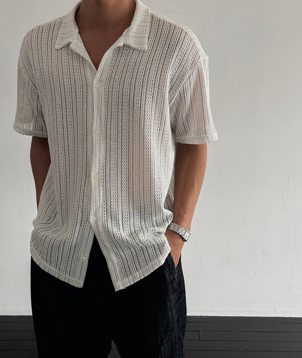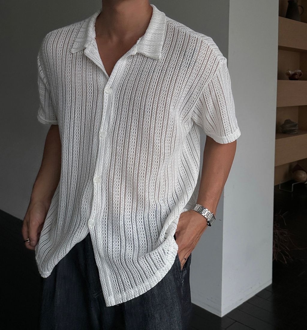 透膚 細細紋路 鬆弛感 短袖襯衫 兩色