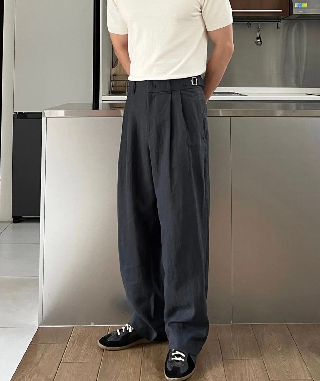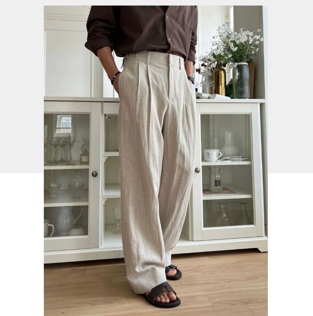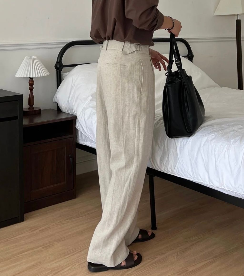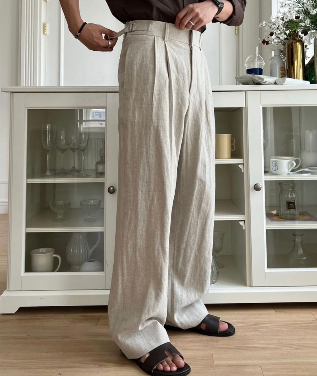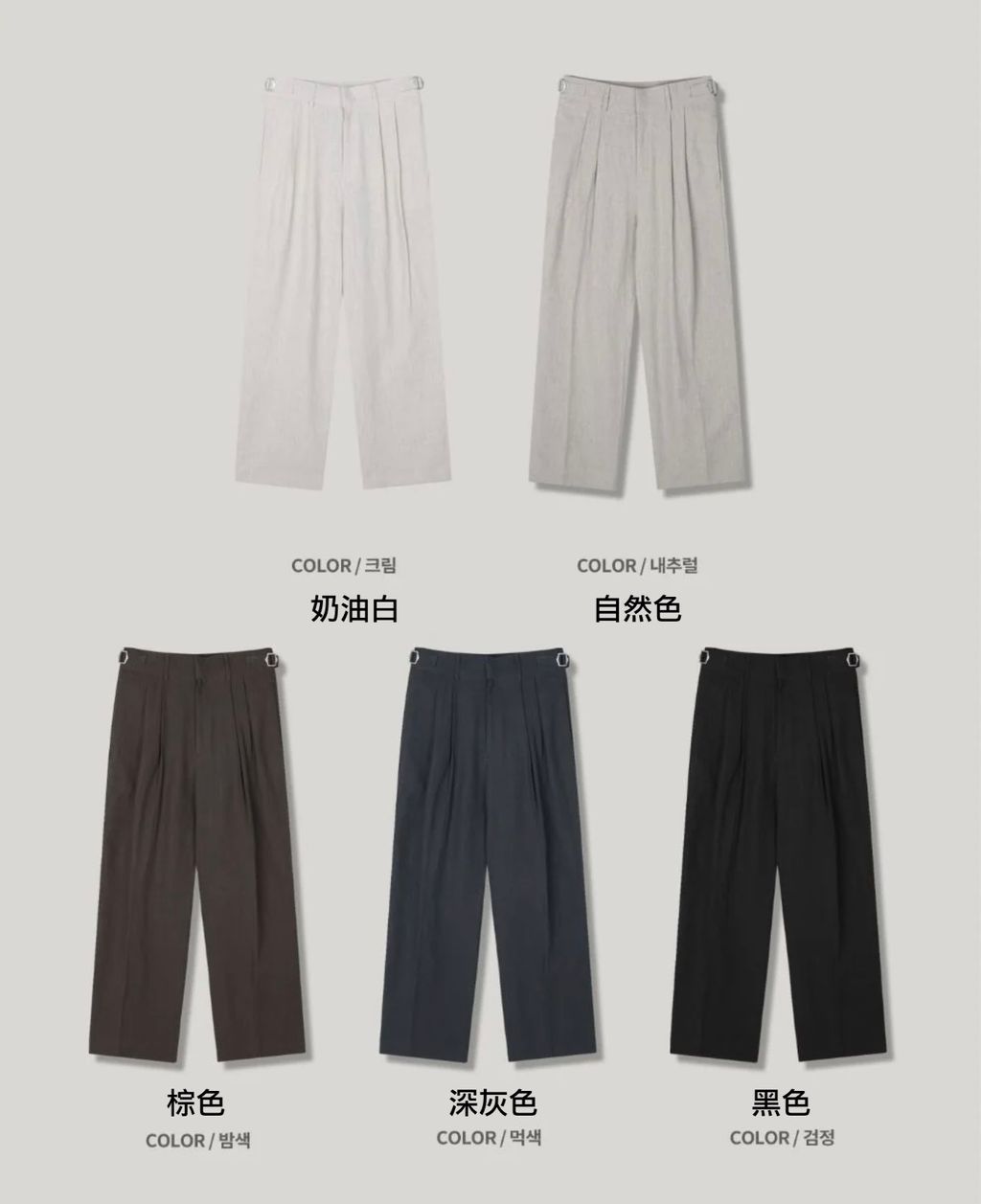 亞麻材質 腰帶裝飾 微寬管長褲 西裝褲 五色