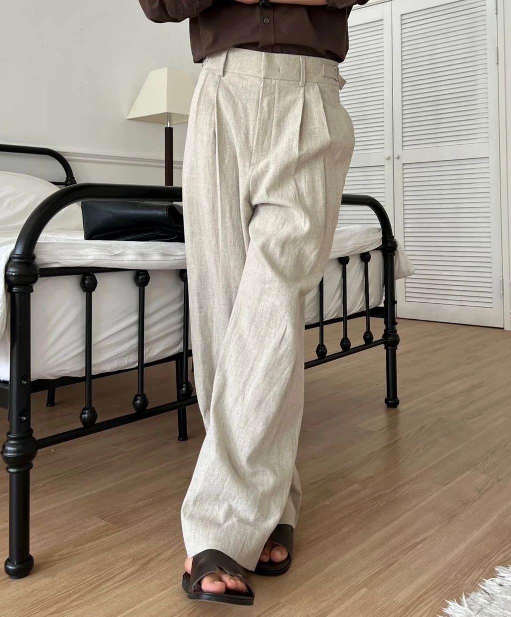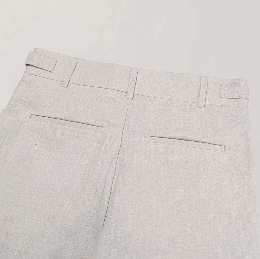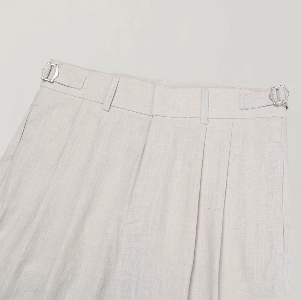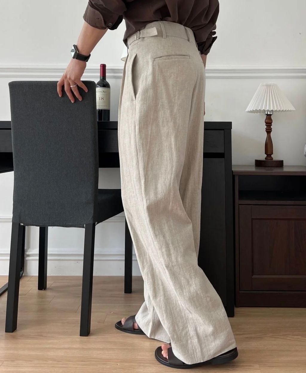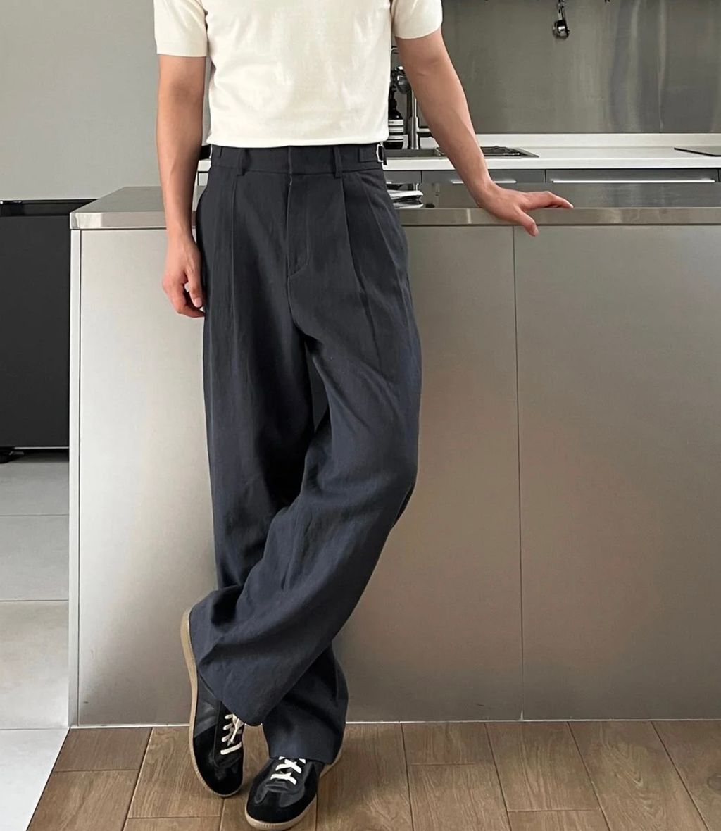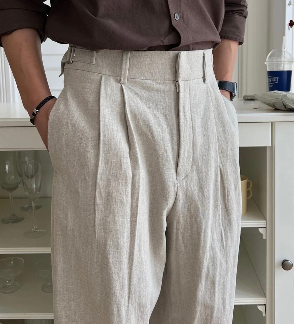 亞麻材質 腰帶裝飾 微寬管長褲 西裝褲 五色