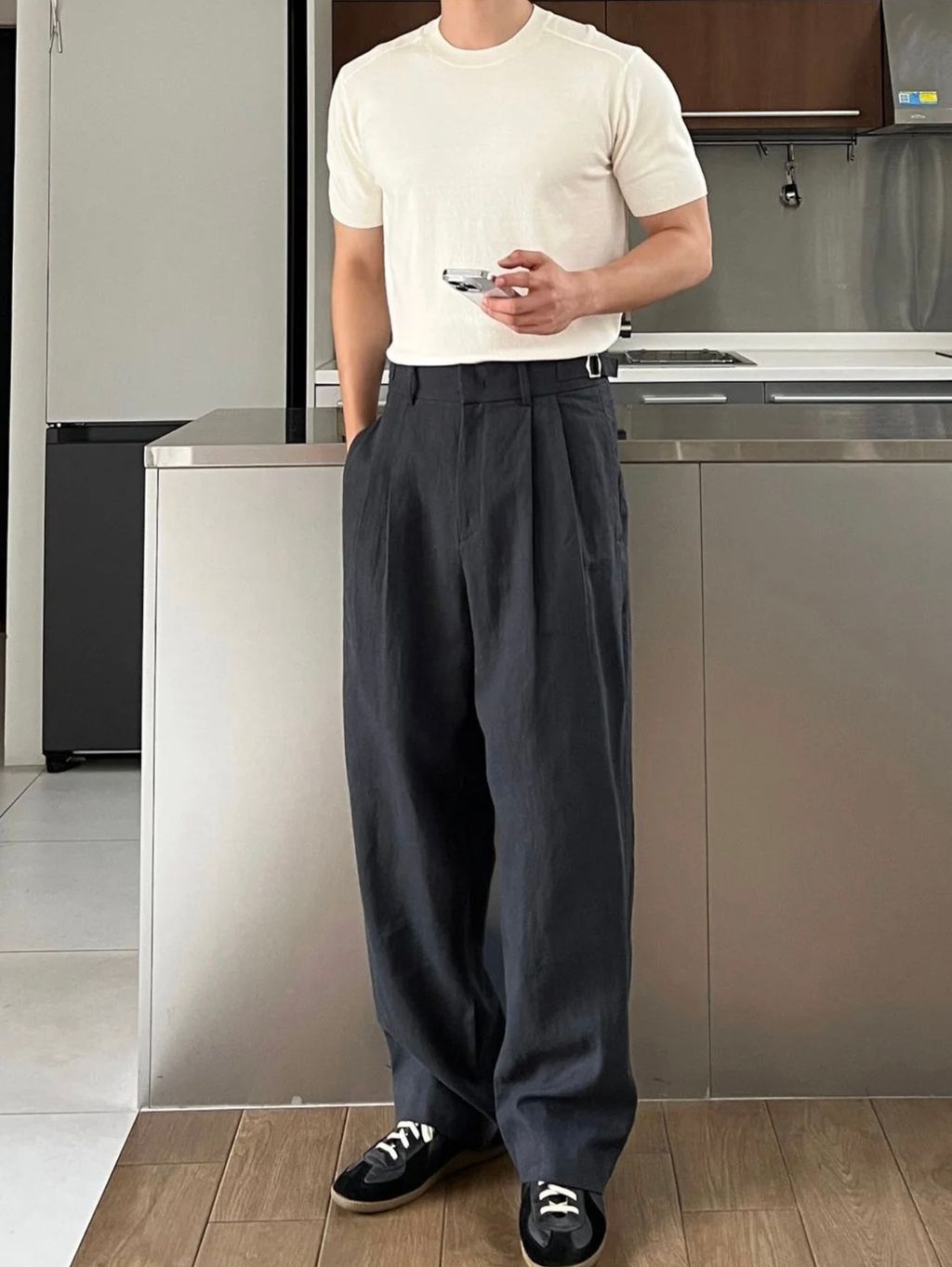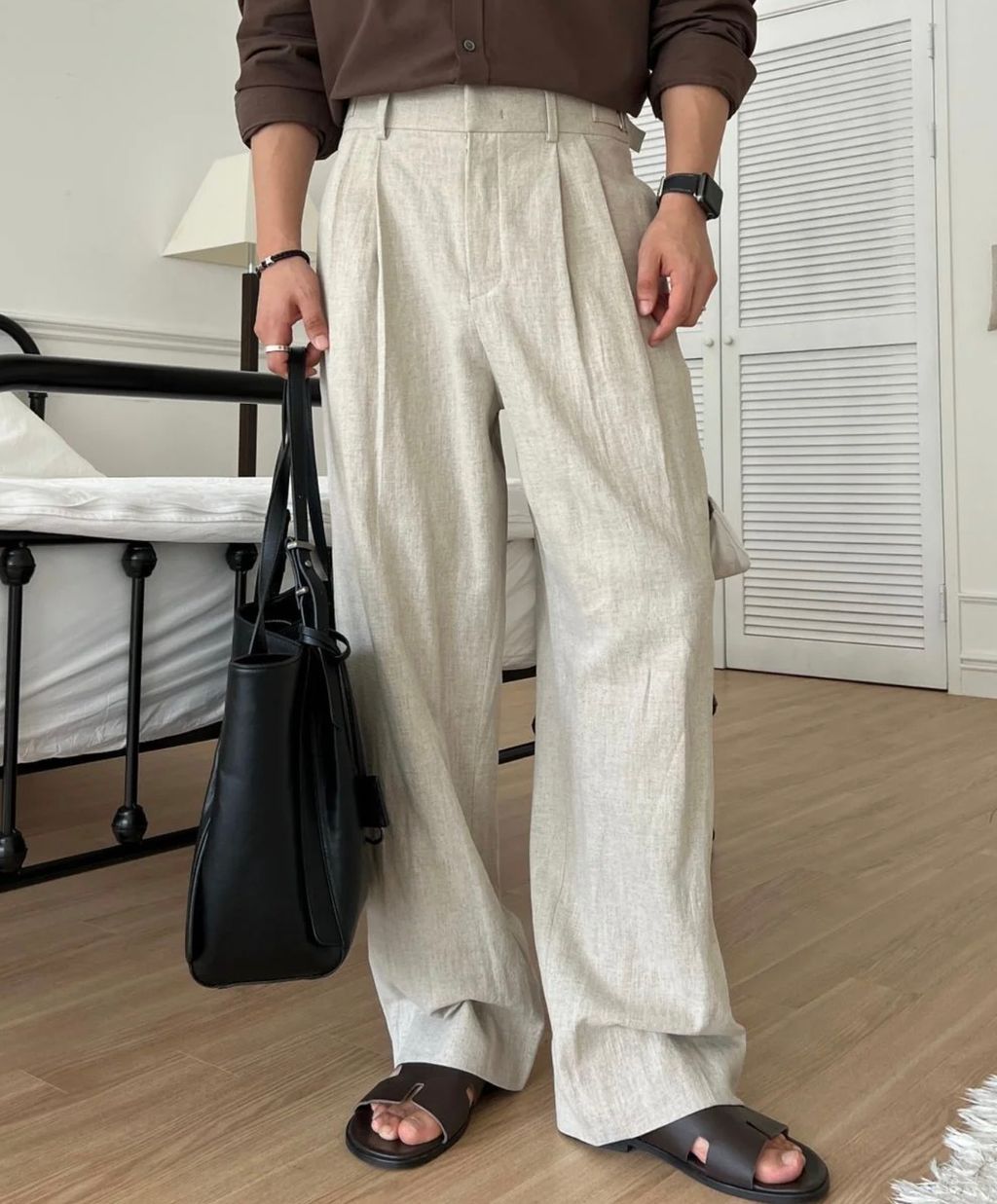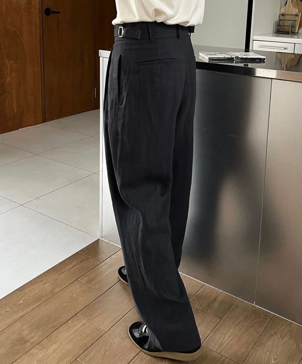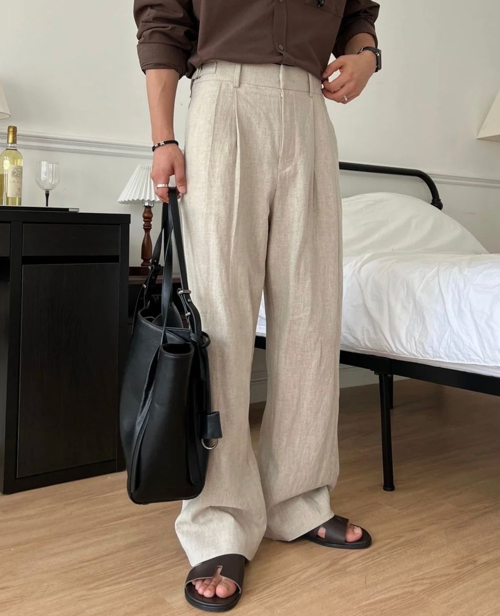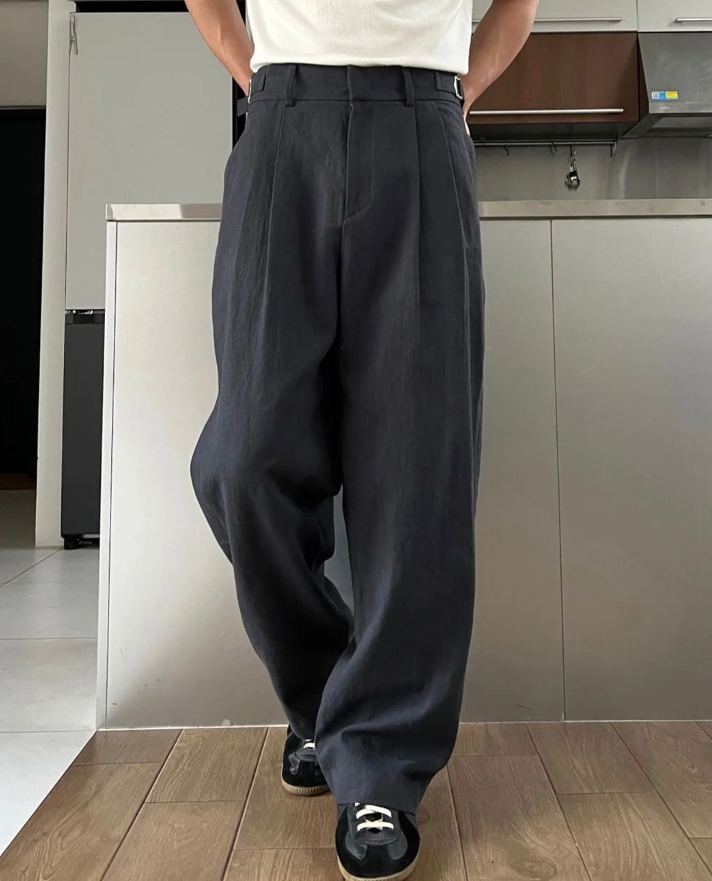 亞麻材質 腰帶裝飾 微寬管長褲 西裝褲 五色