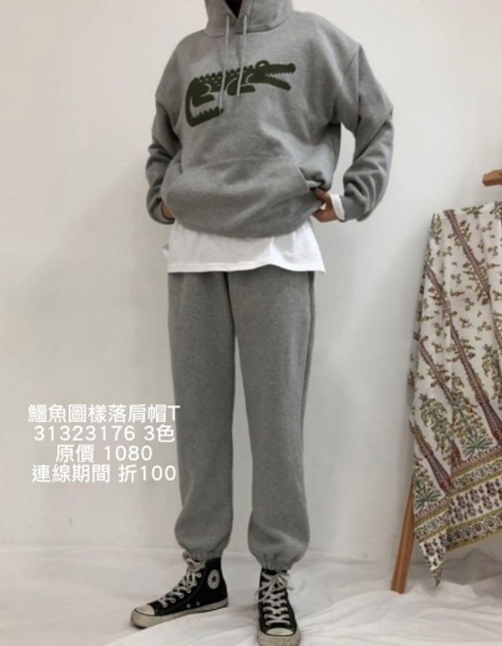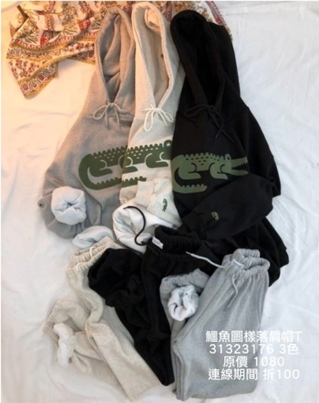 10月連線 鱷魚圖樣落肩帽T 31323176 3色