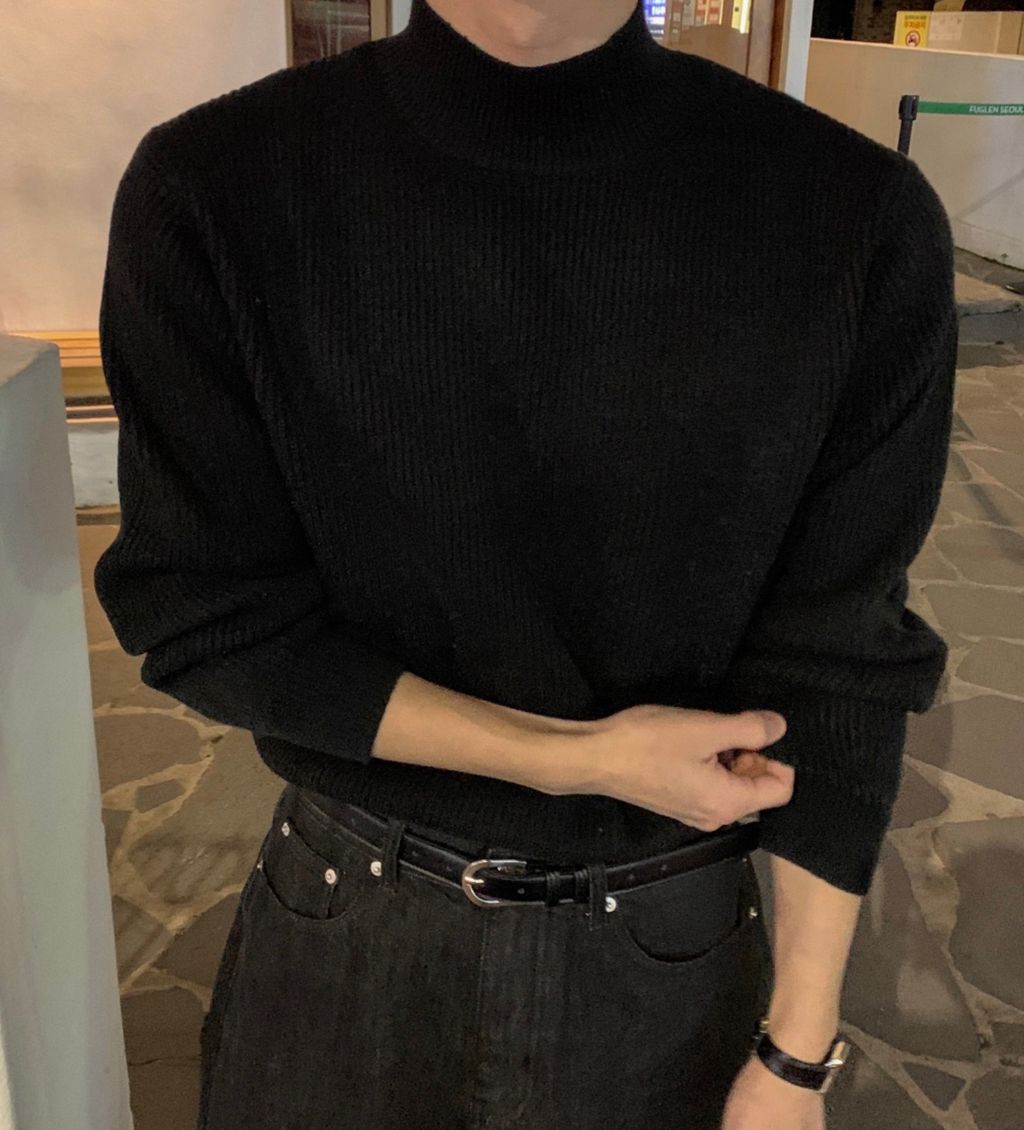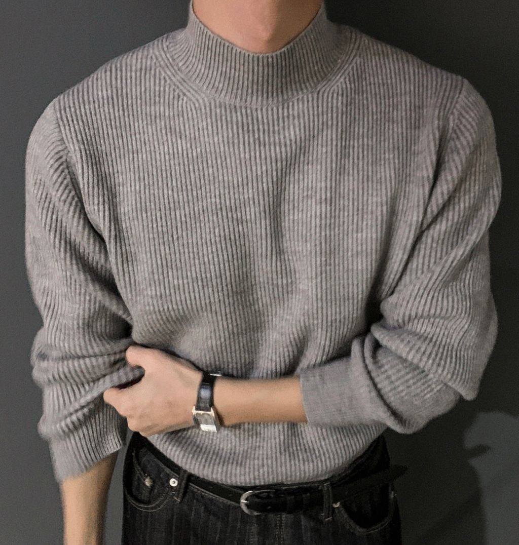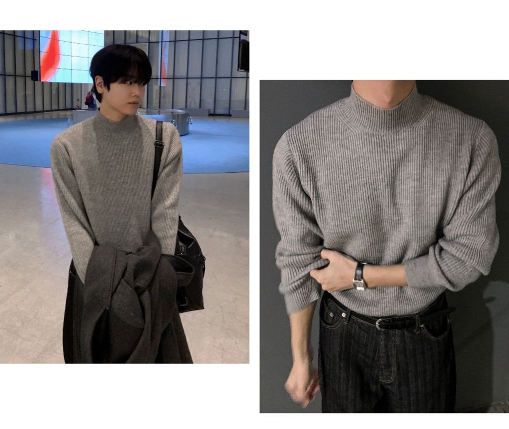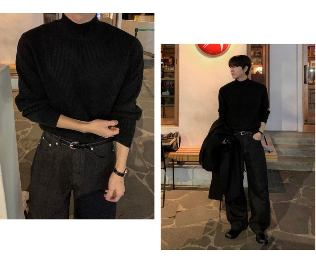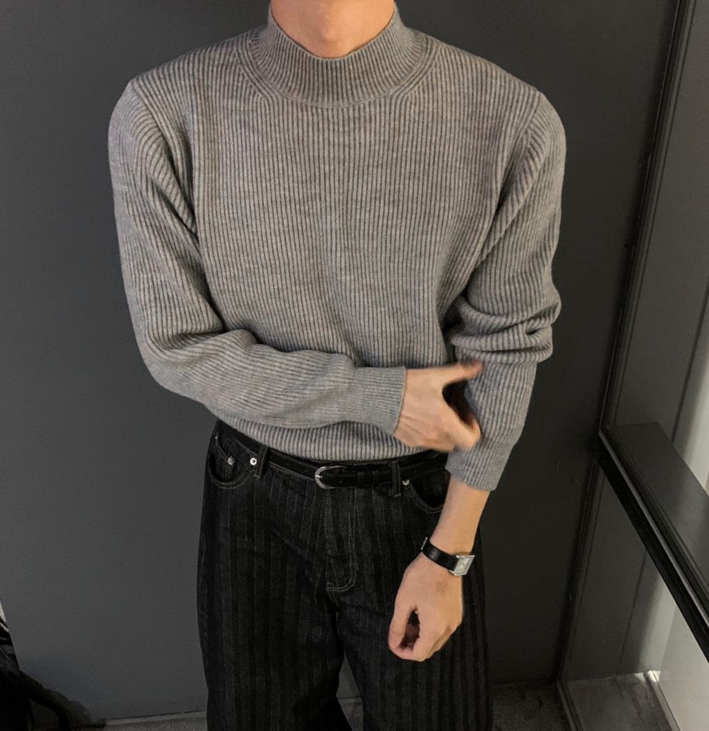 小高領 條紋紋路布料 彈性合身 針織衫 七色