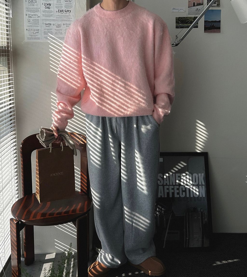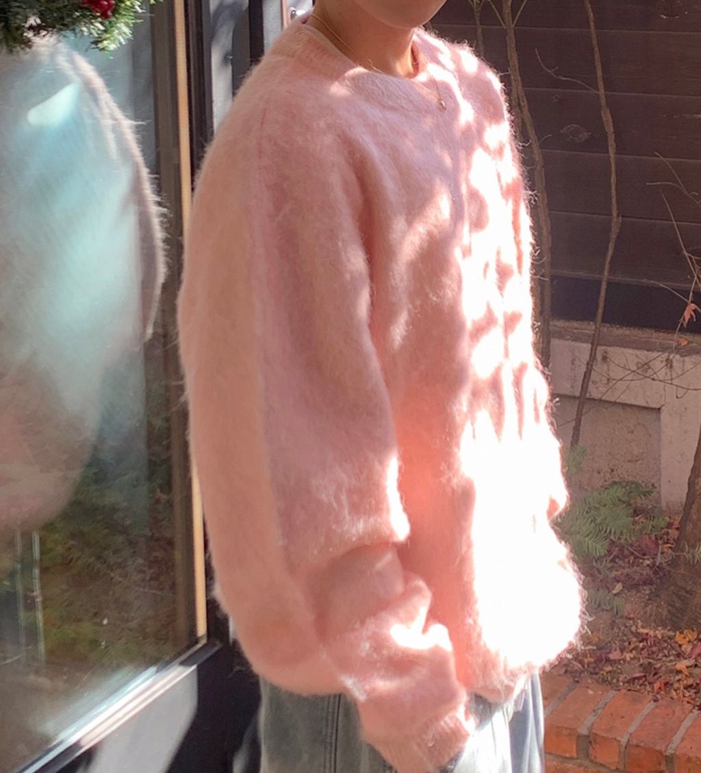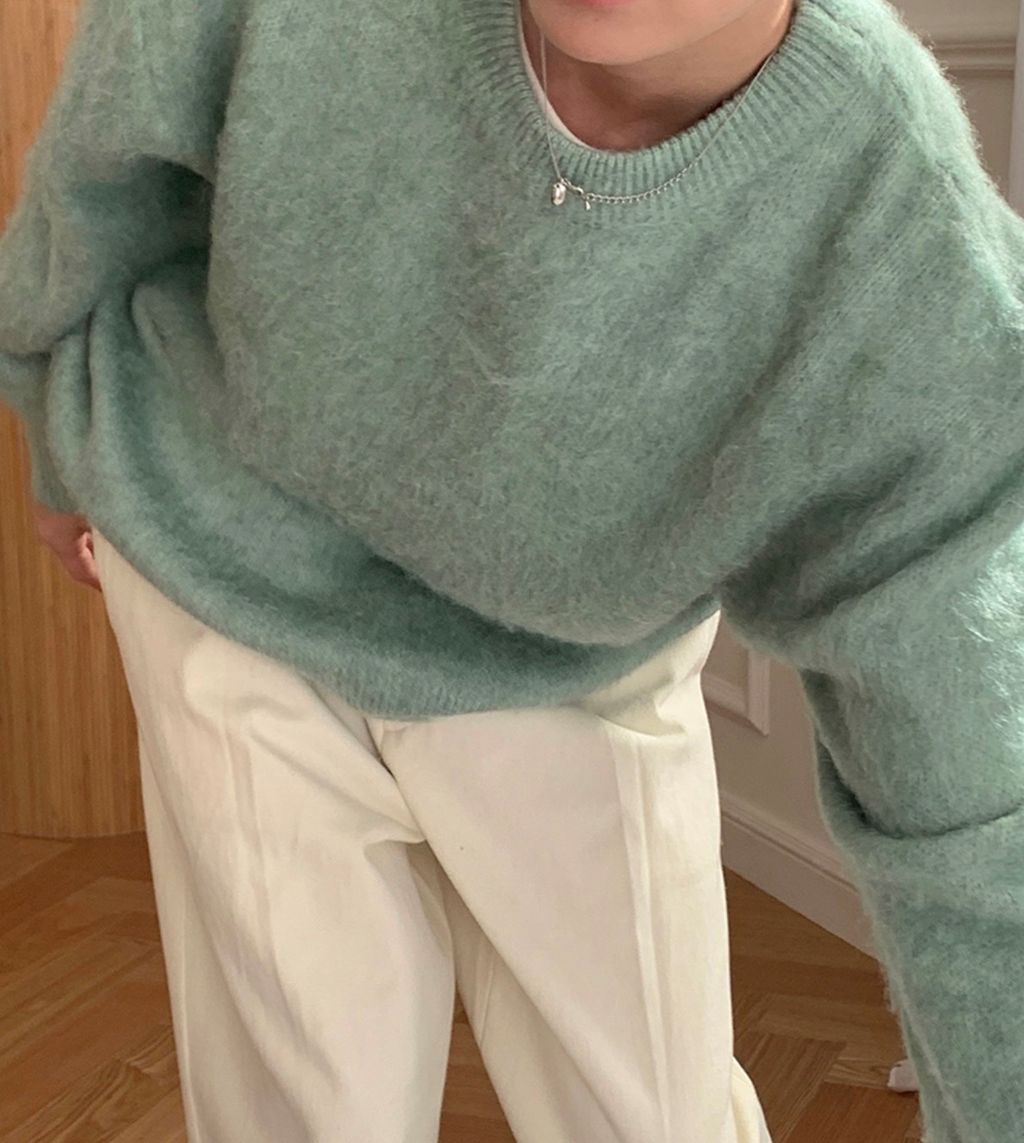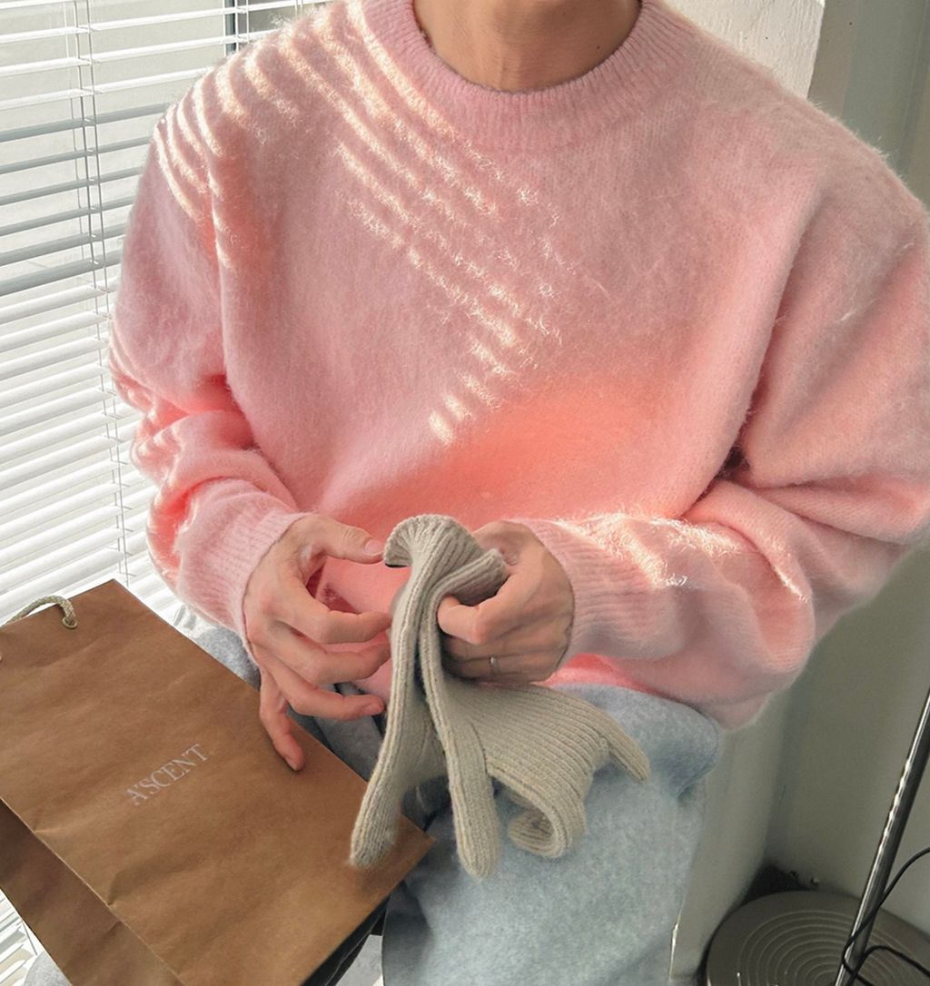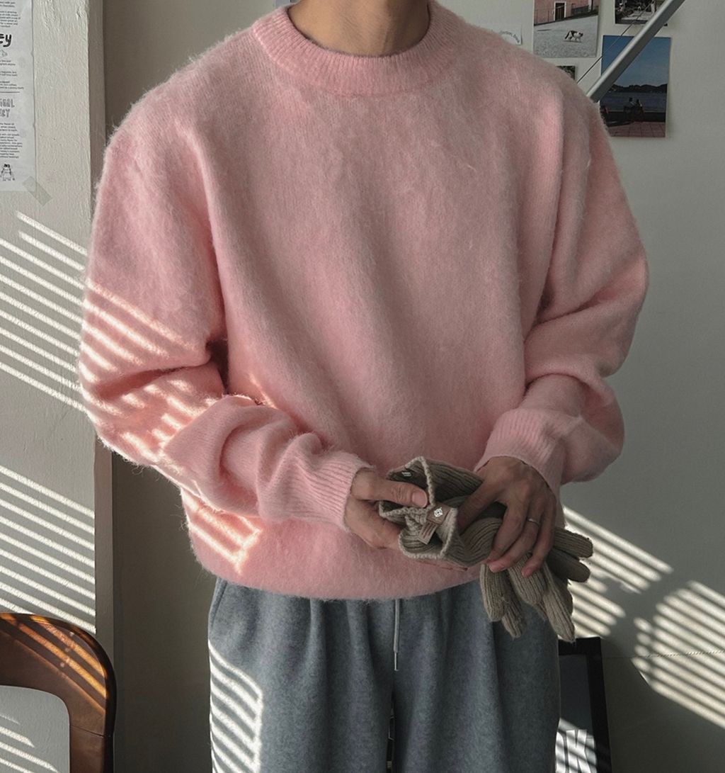 粉嫩粉嫩絨毛落肩寬鬆長袖針織衫毛衣 六色