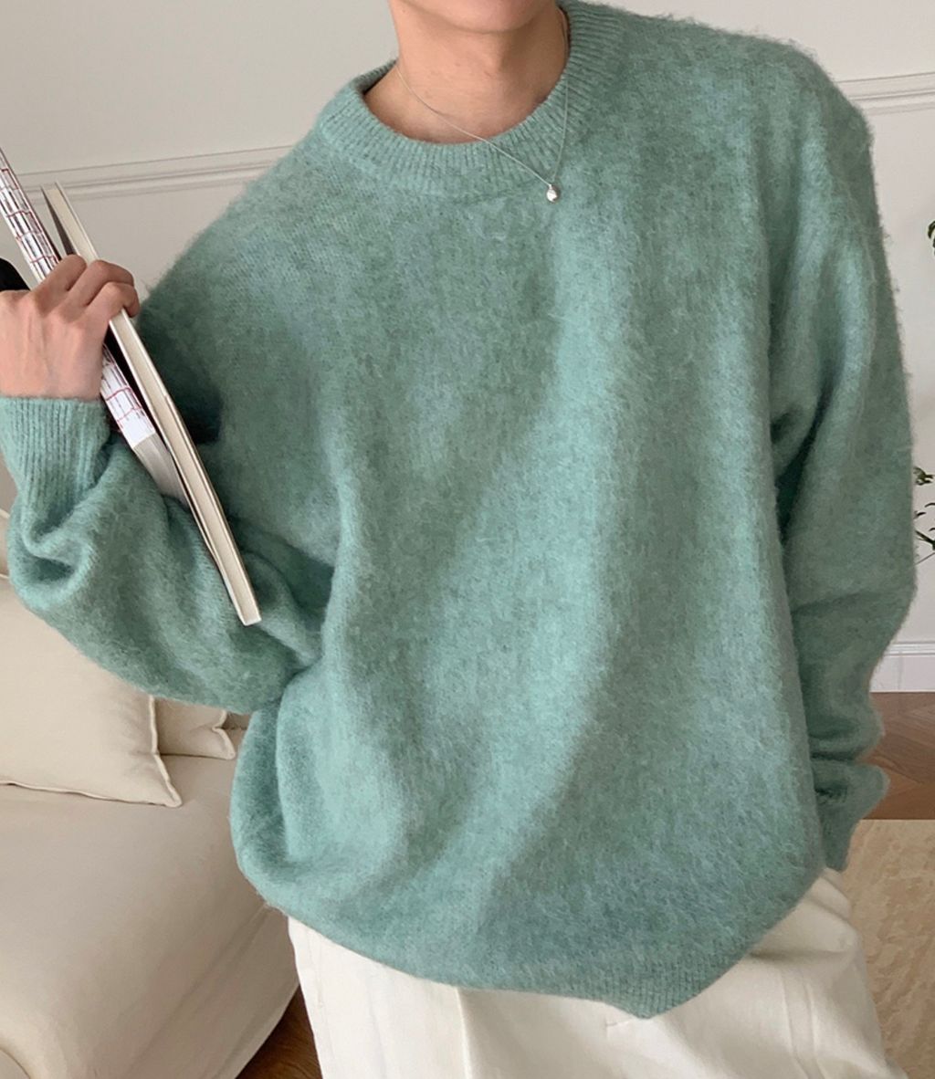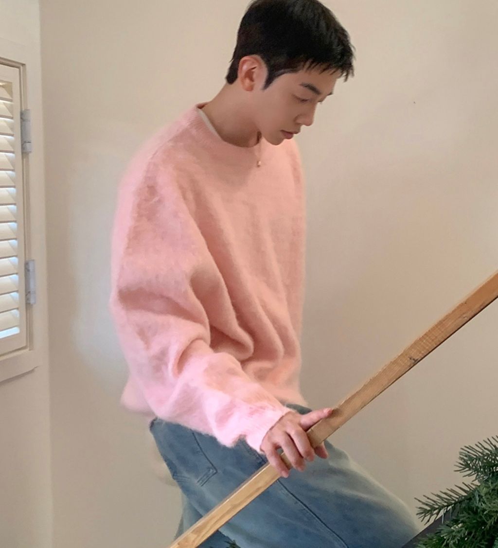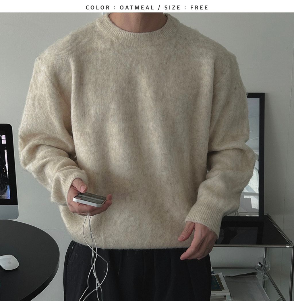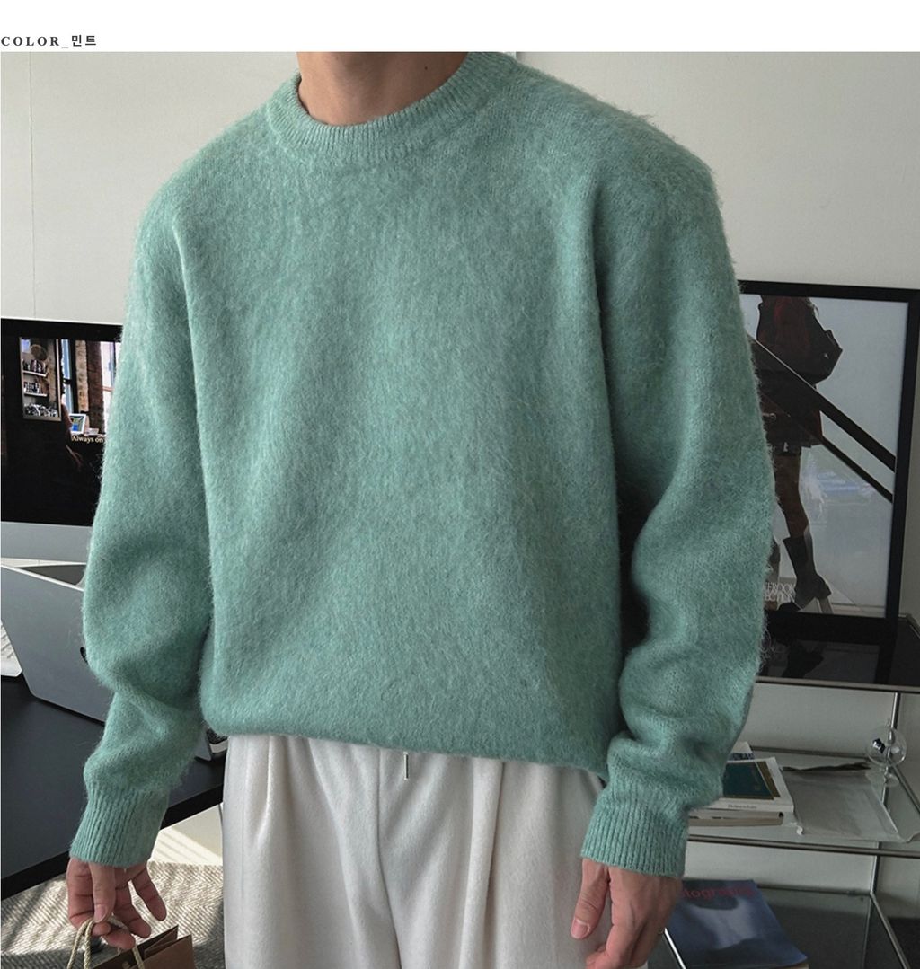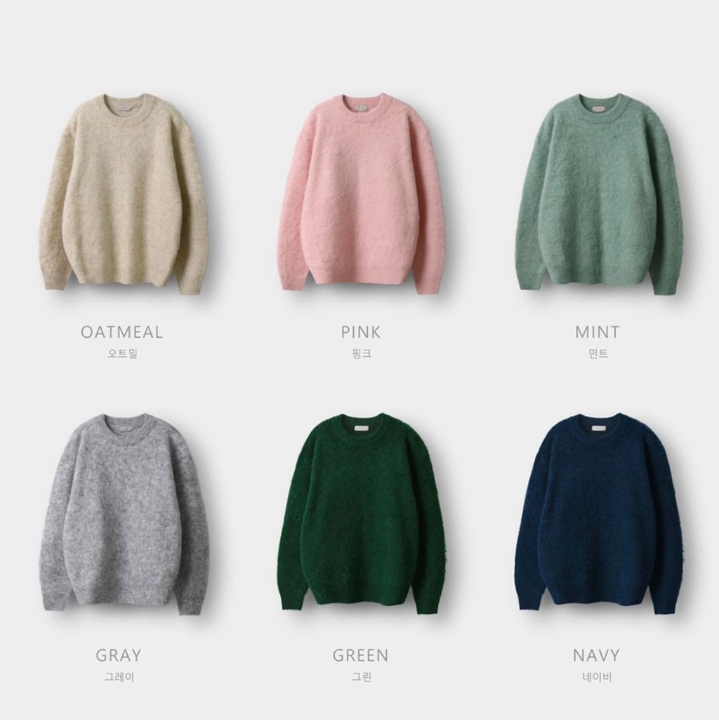 粉嫩粉嫩絨毛落肩寬鬆長袖針織衫毛衣 六色