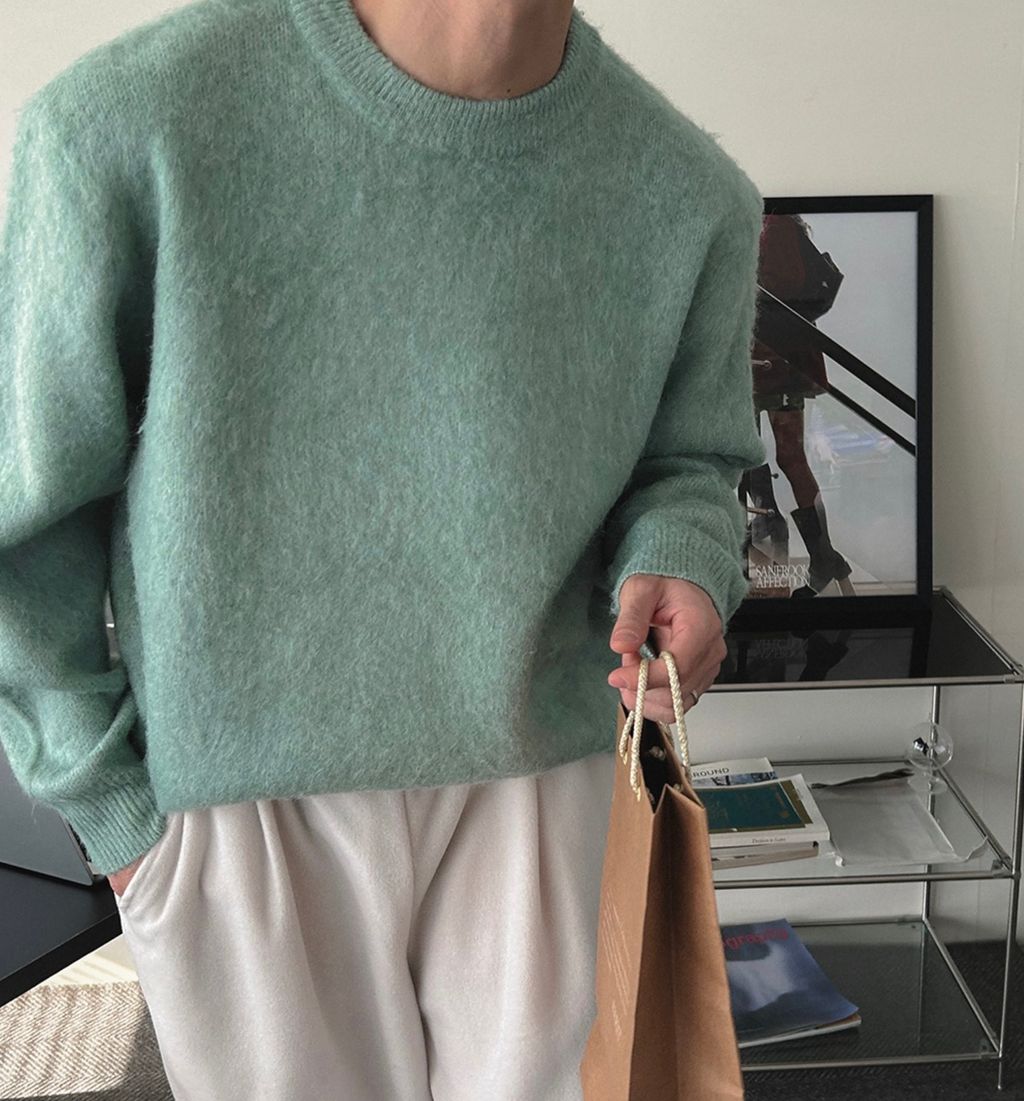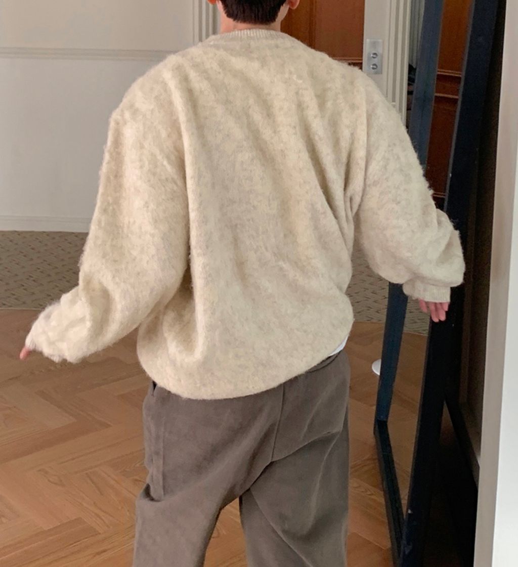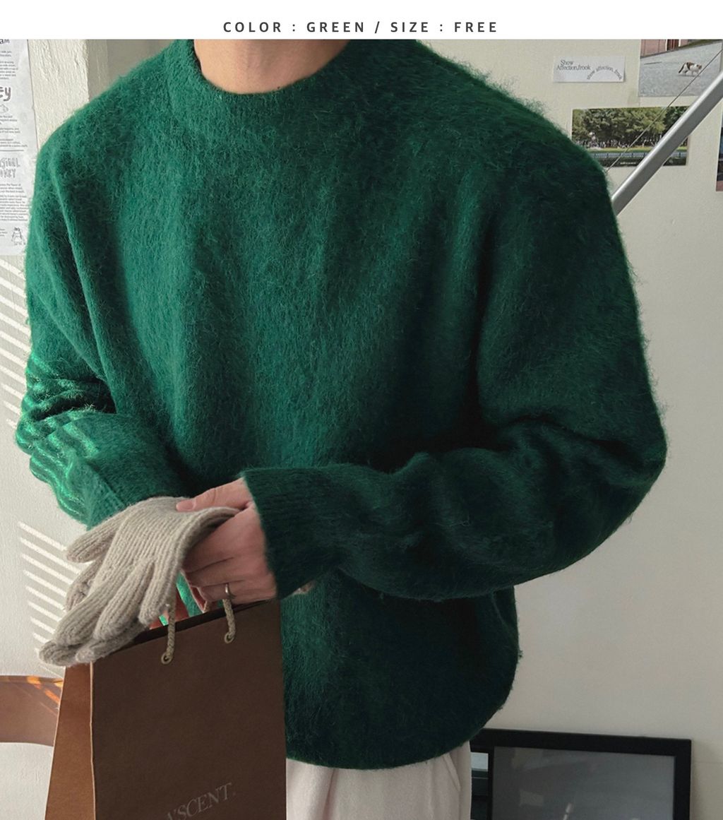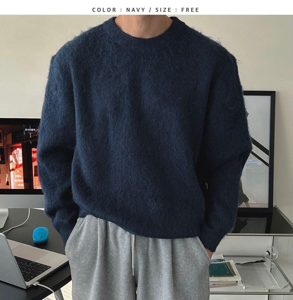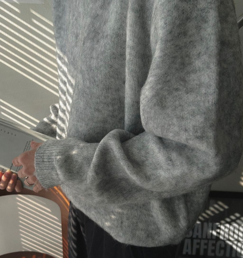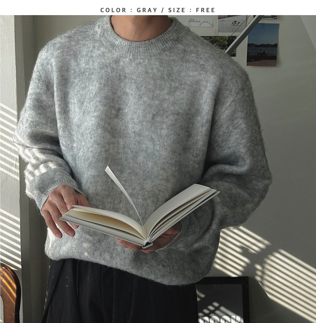 粉嫩粉嫩絨毛落肩寬鬆長袖針織衫毛衣 六色