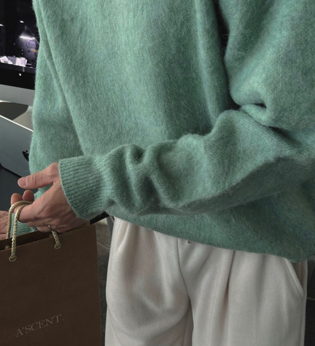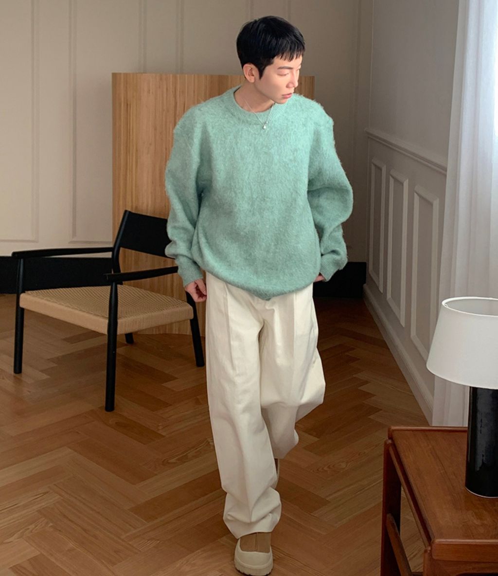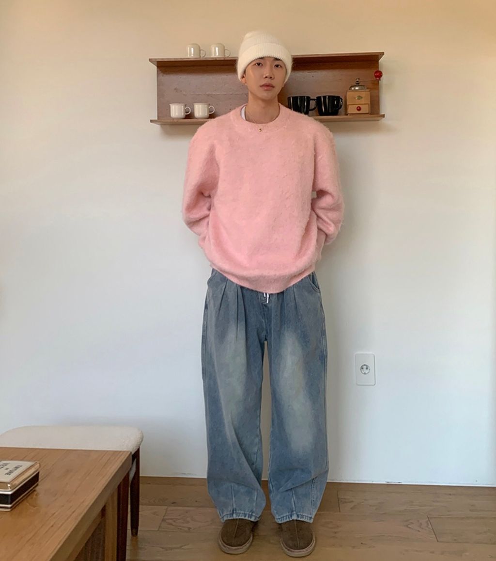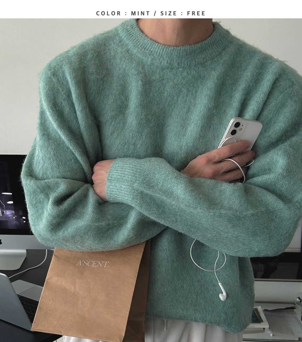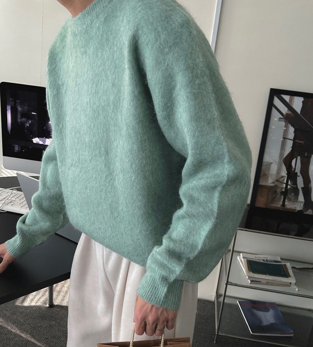 粉嫩粉嫩絨毛落肩寬鬆長袖針織衫毛衣 六色
