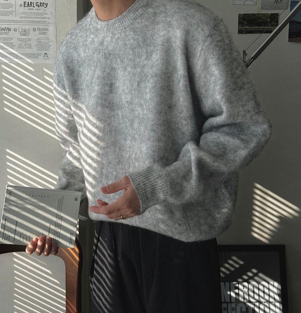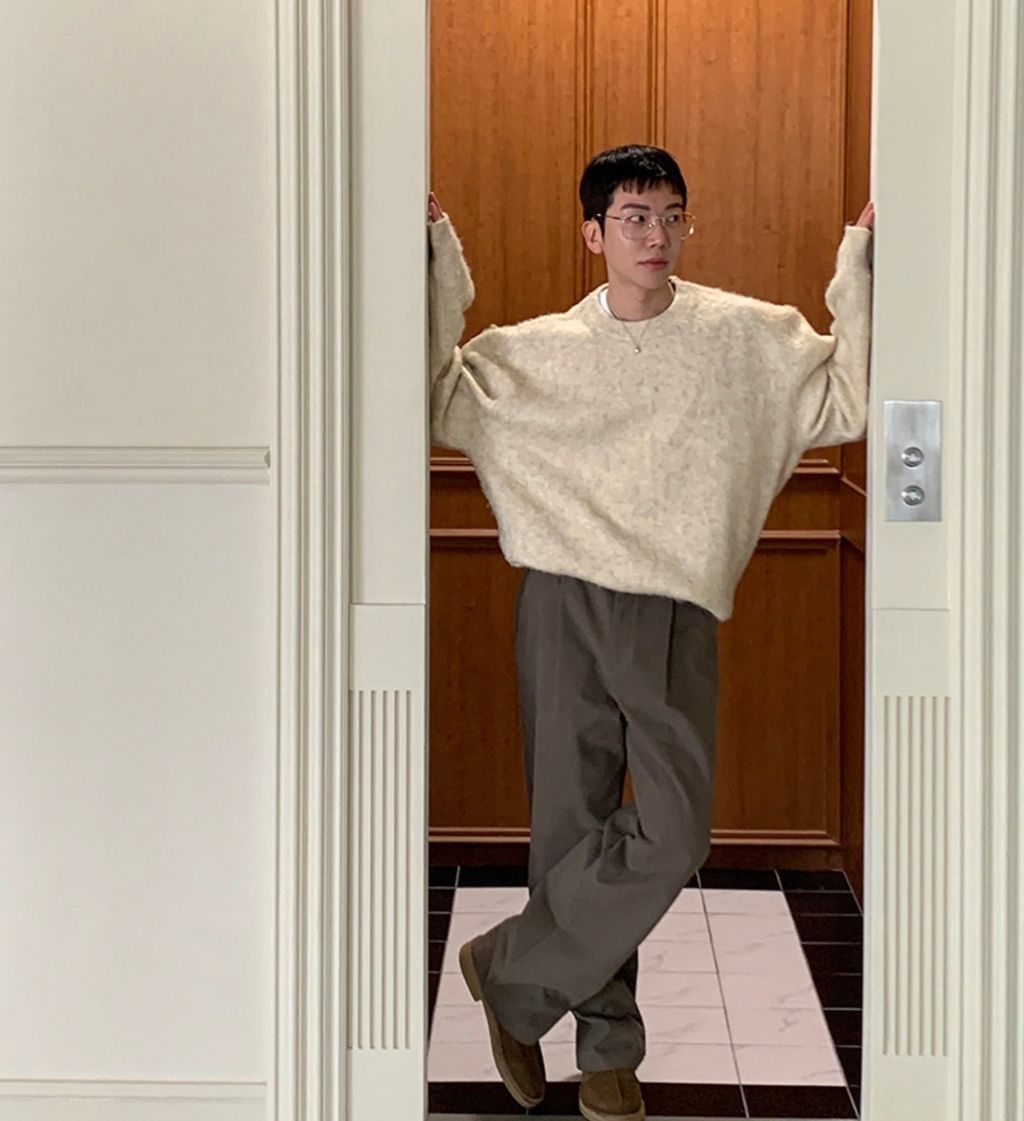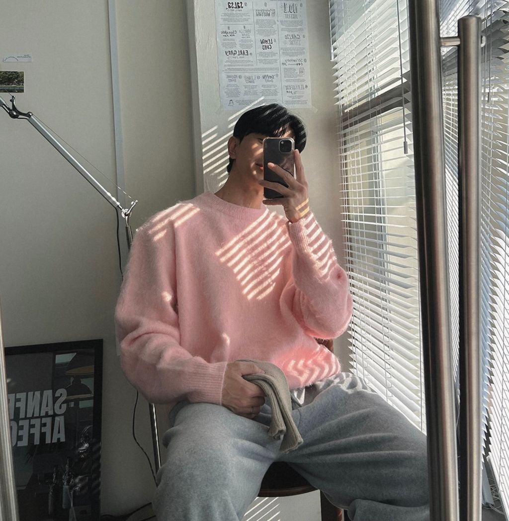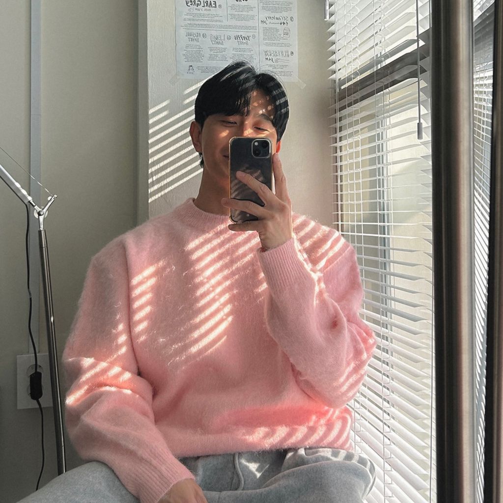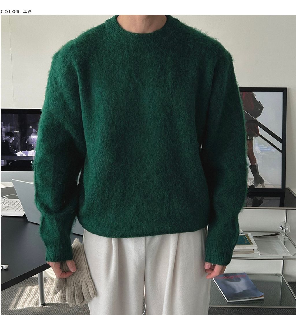 粉嫩粉嫩絨毛落肩寬鬆長袖針織衫毛衣 六色