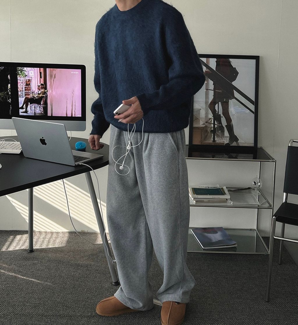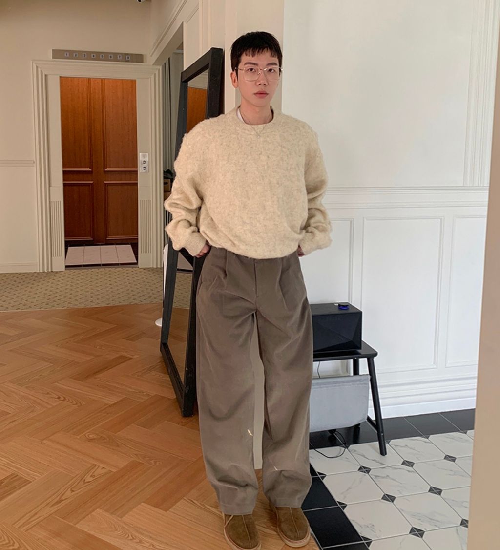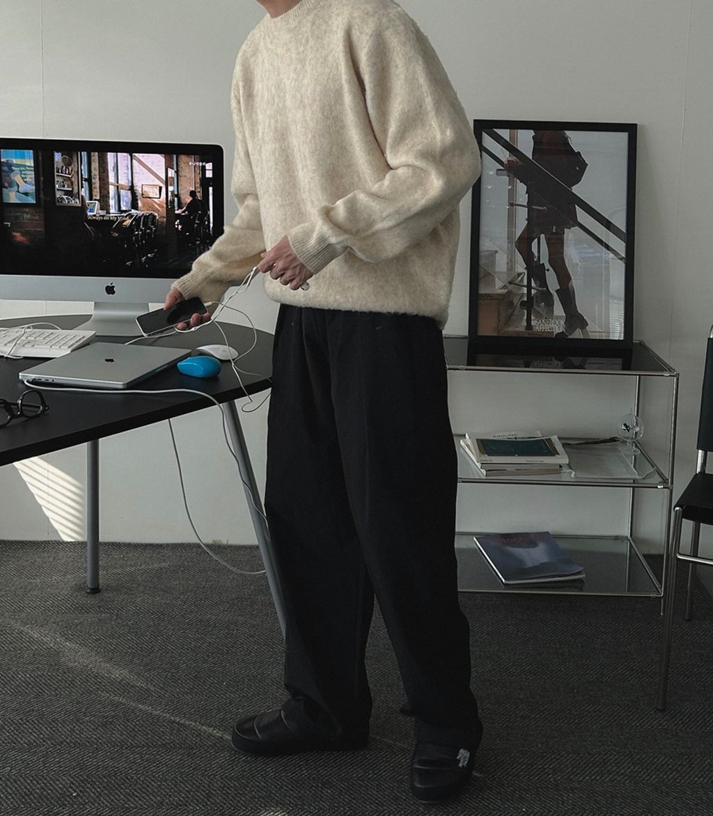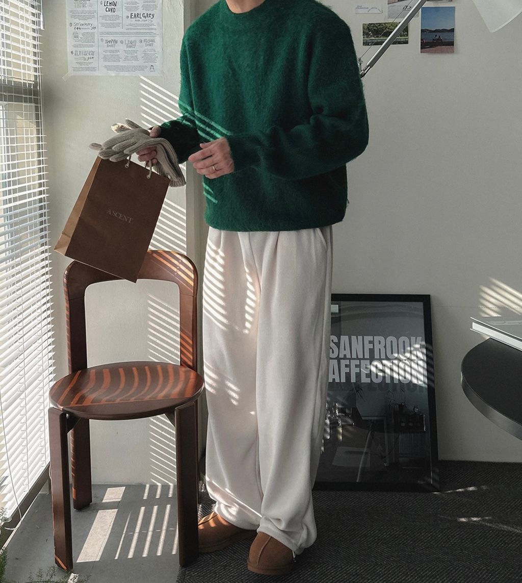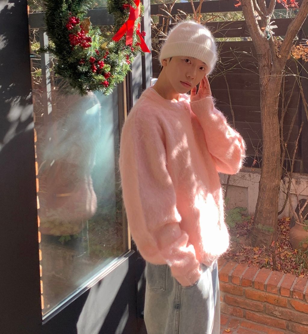 粉嫩粉嫩絨毛落肩寬鬆長袖針織衫毛衣 六色