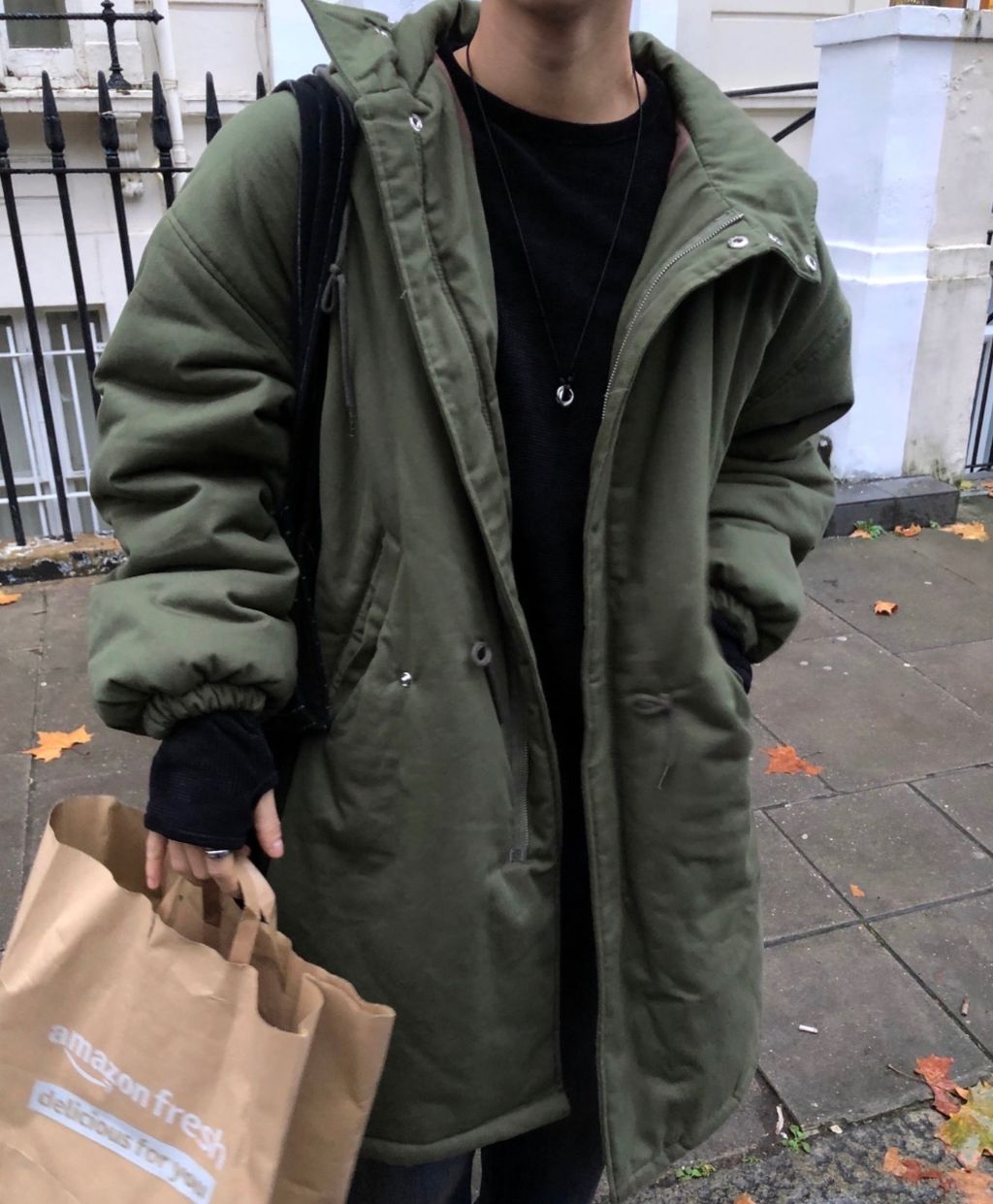 連帽 長版 軍裝 抽繩 大衣外套 兩色