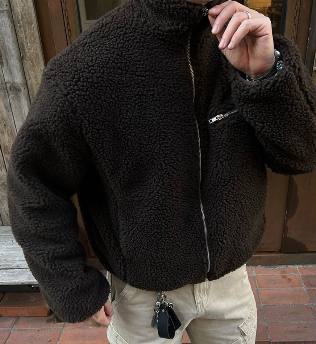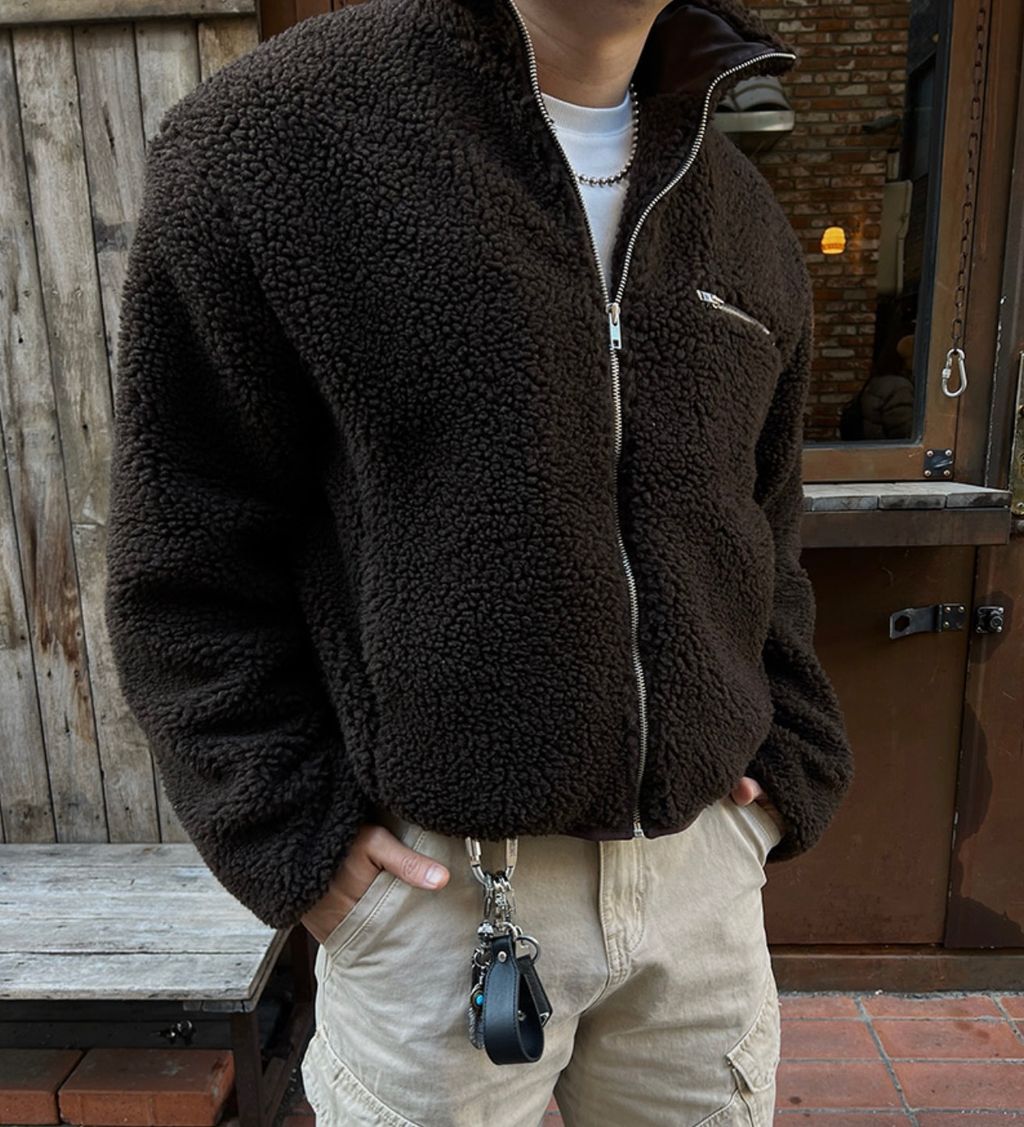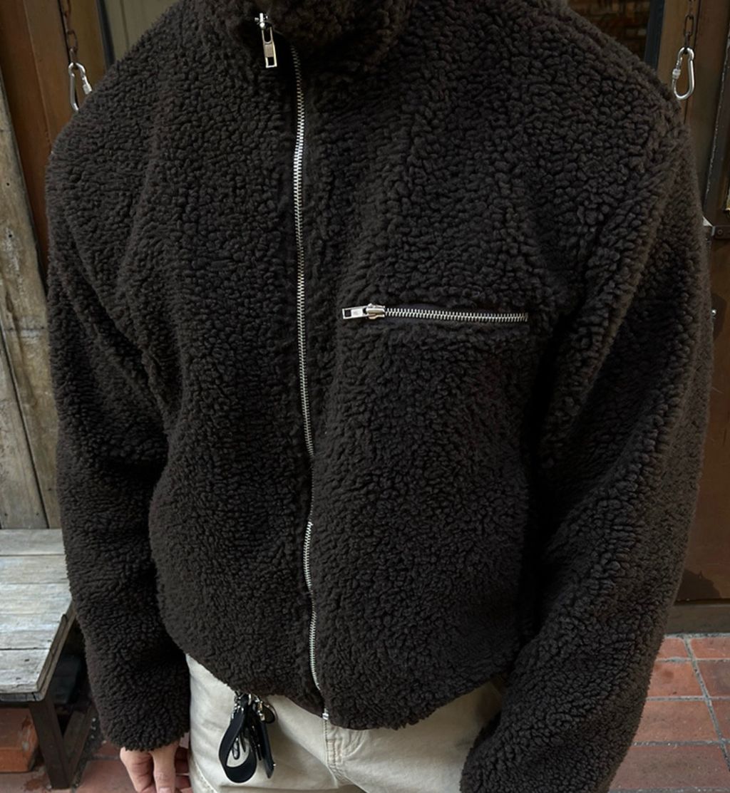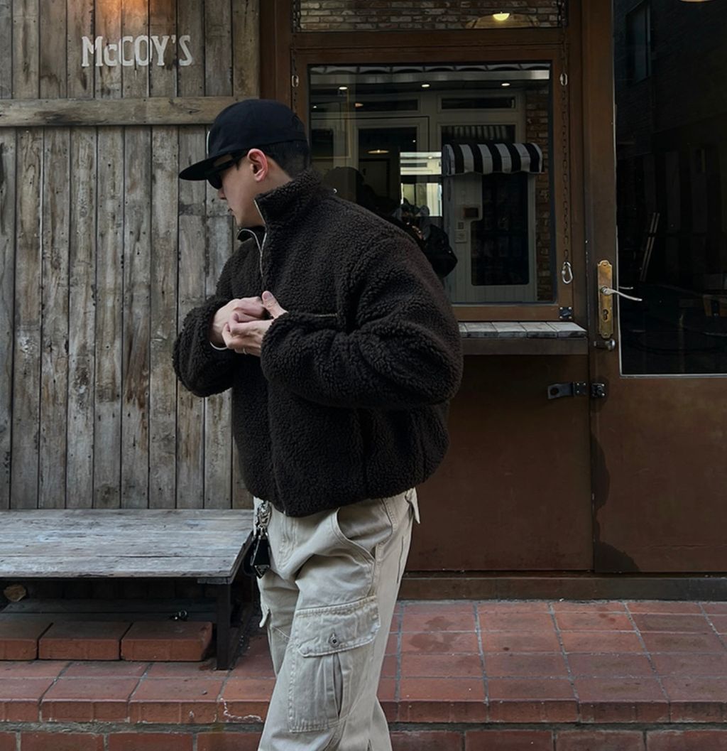 露營風 outdoor 抓絨布料 小高領 短版外套夾克 四色