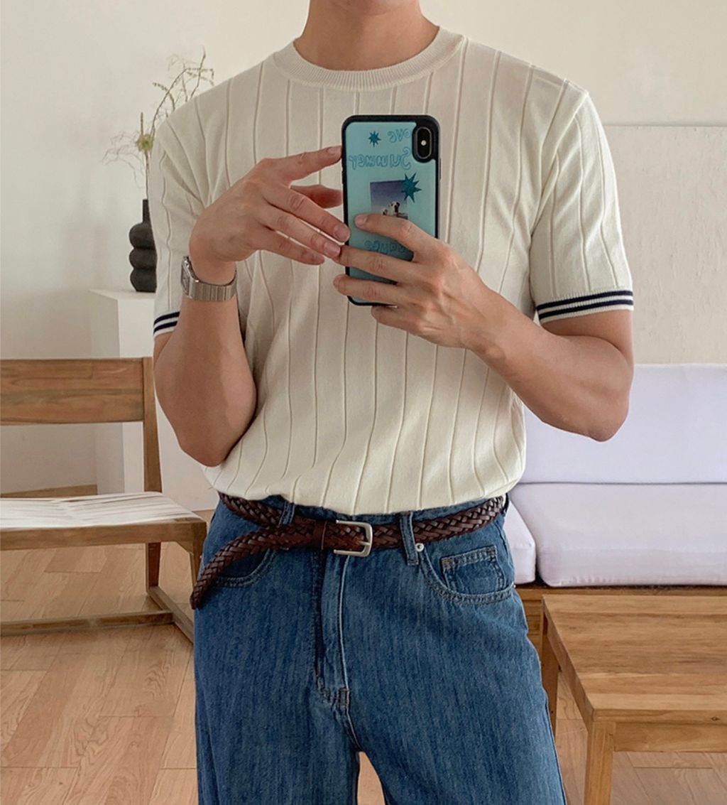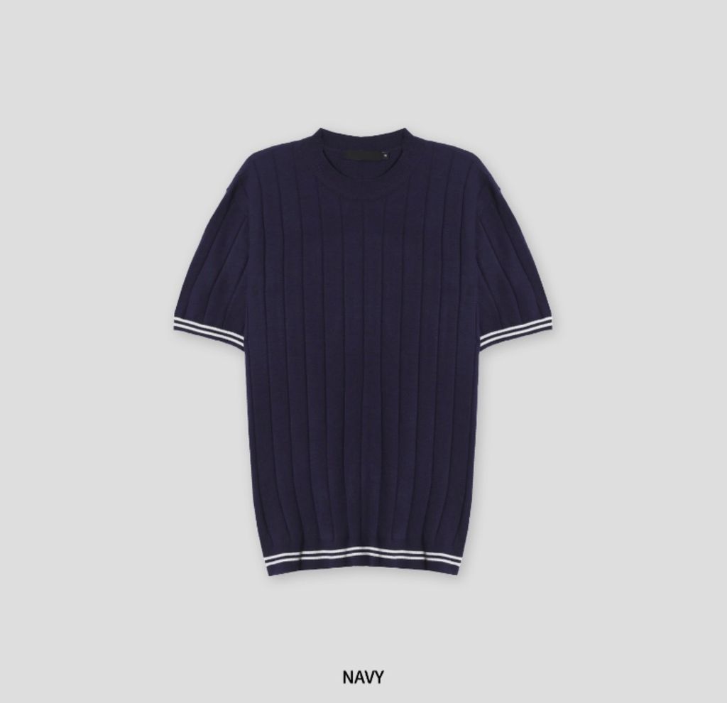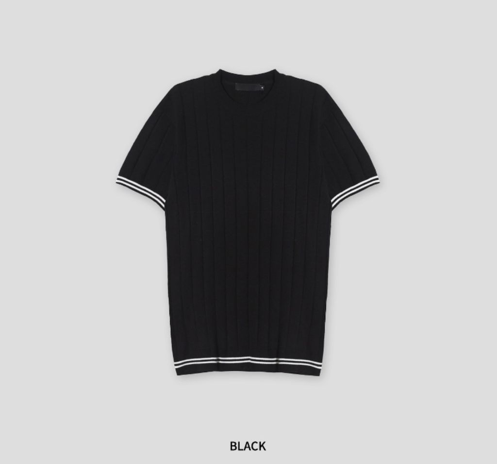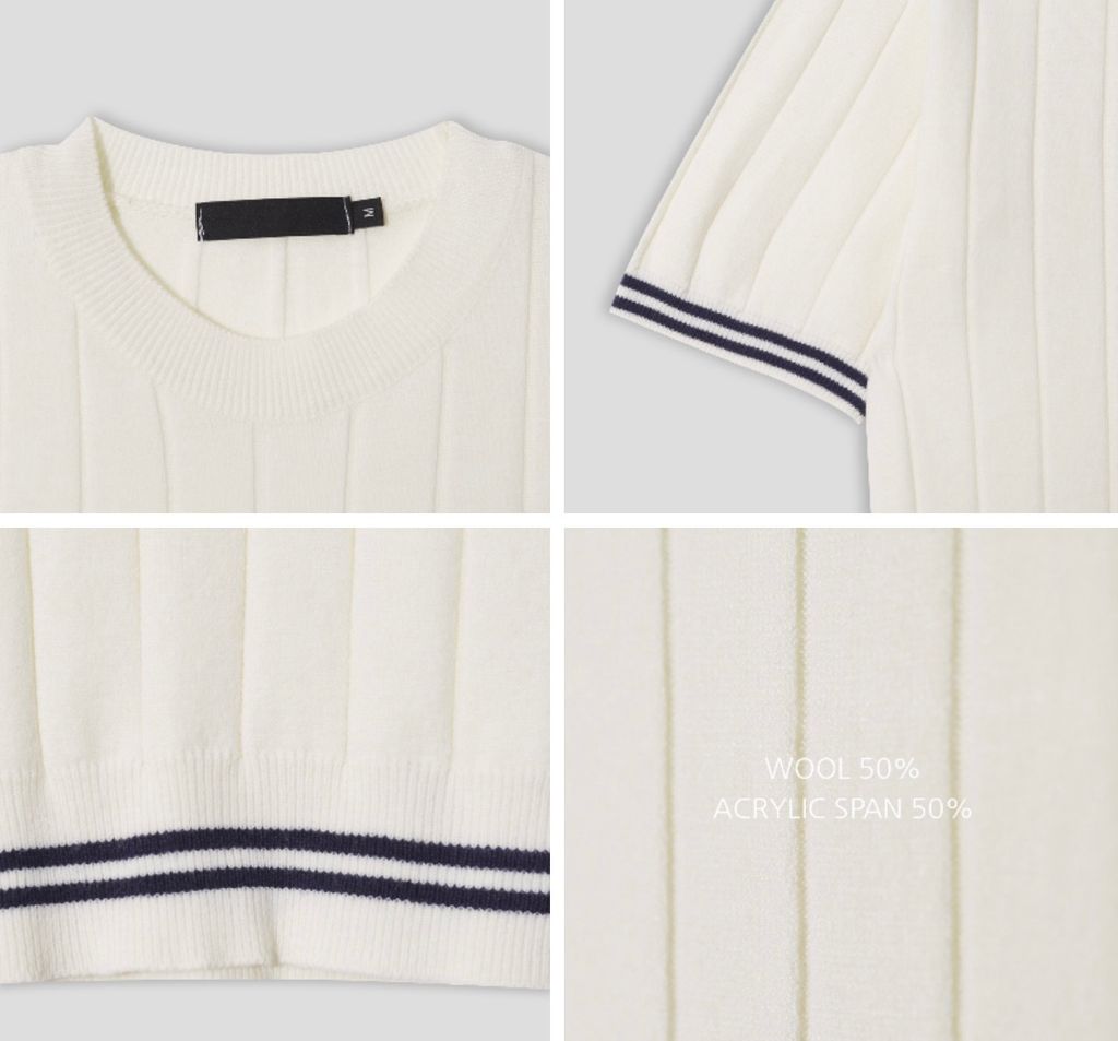 彈性合身針織衫袖口線條短袖 三色 96112667
