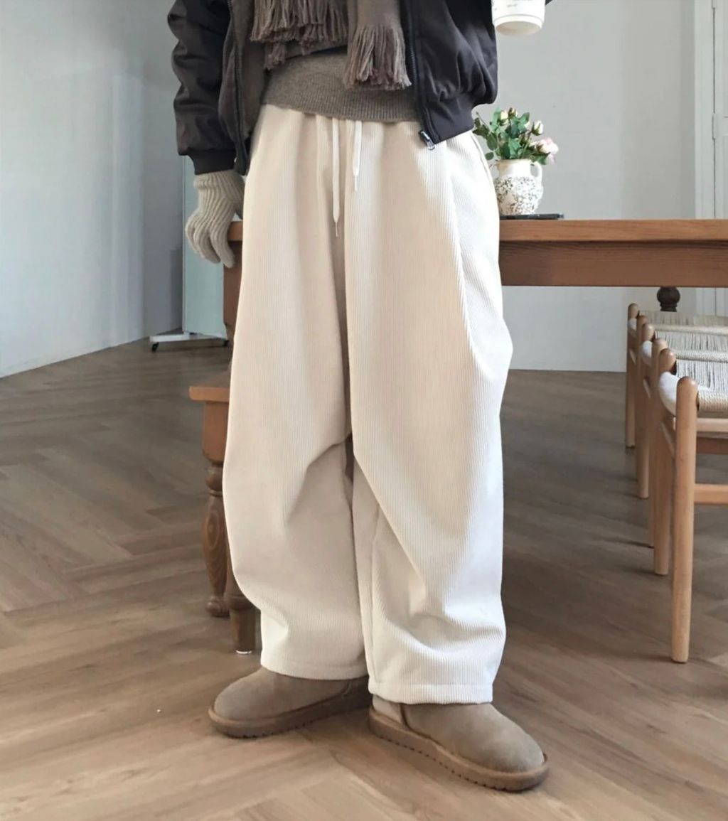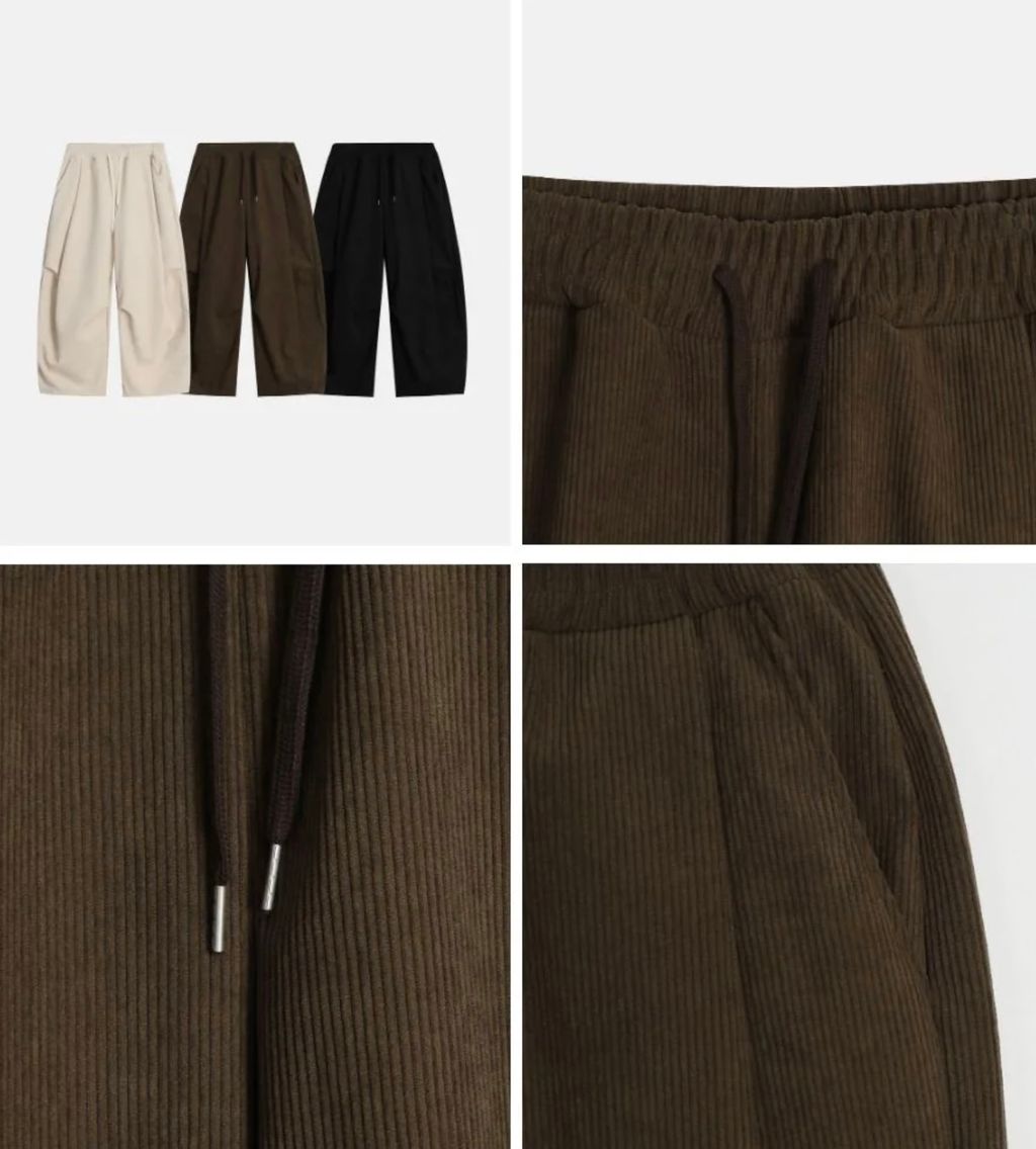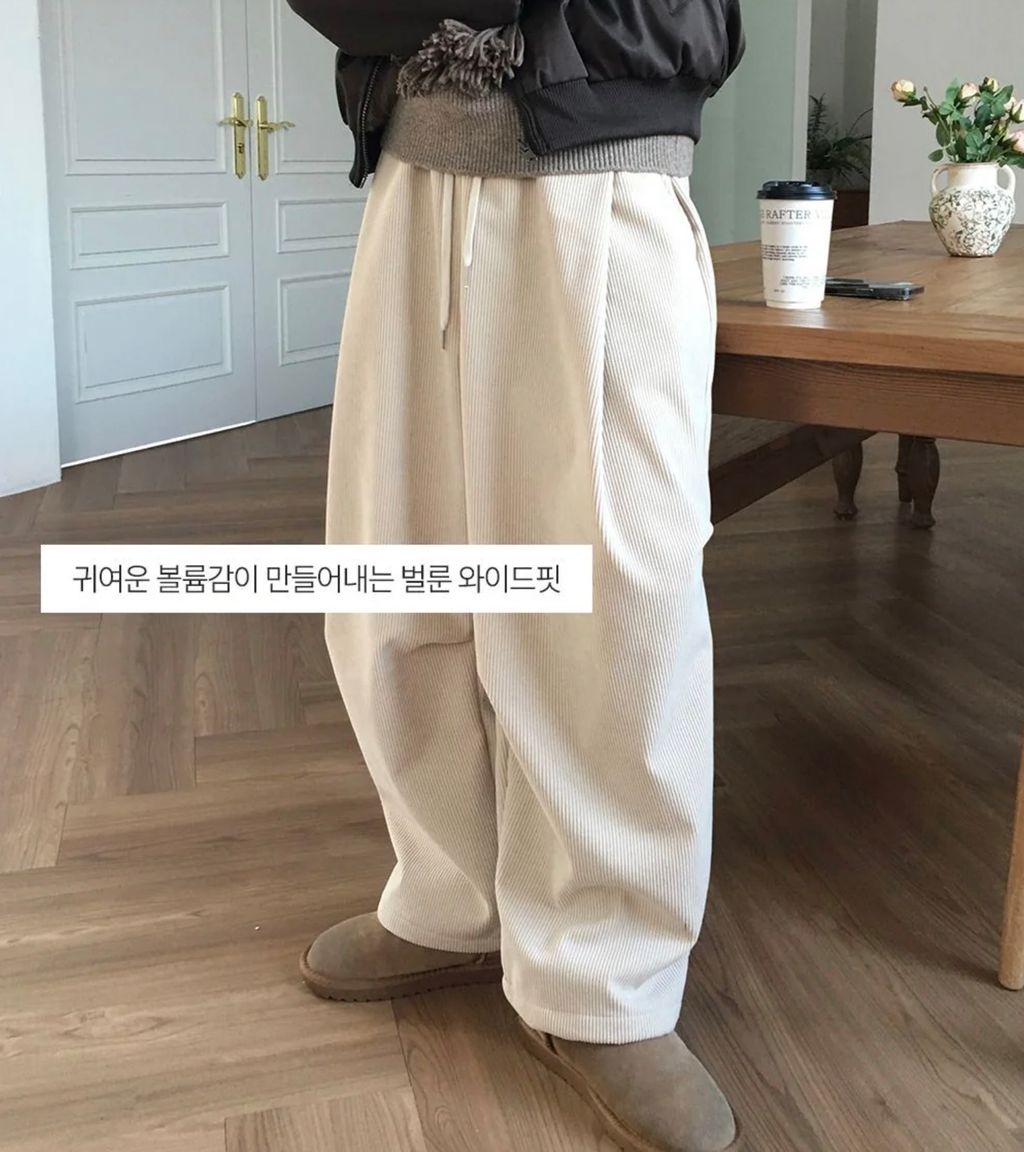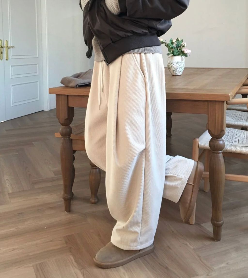 燈芯絨 內刷白 聖誕穿搭 鬆緊寬褲長褲 三色