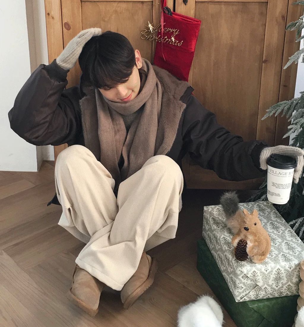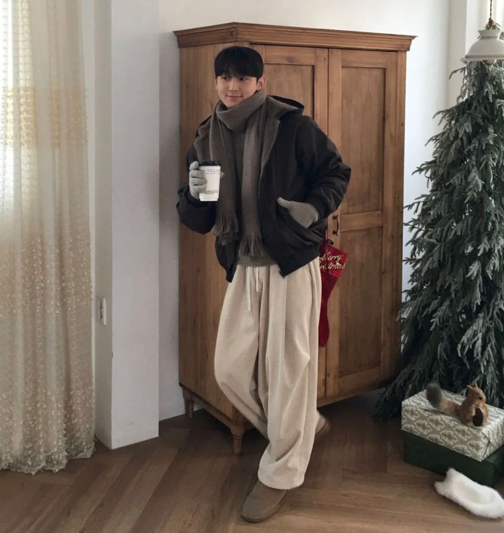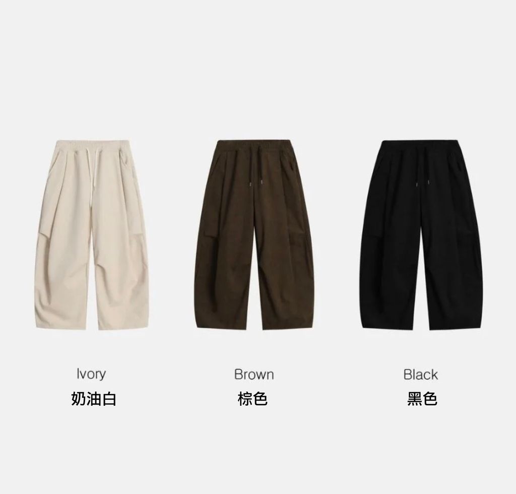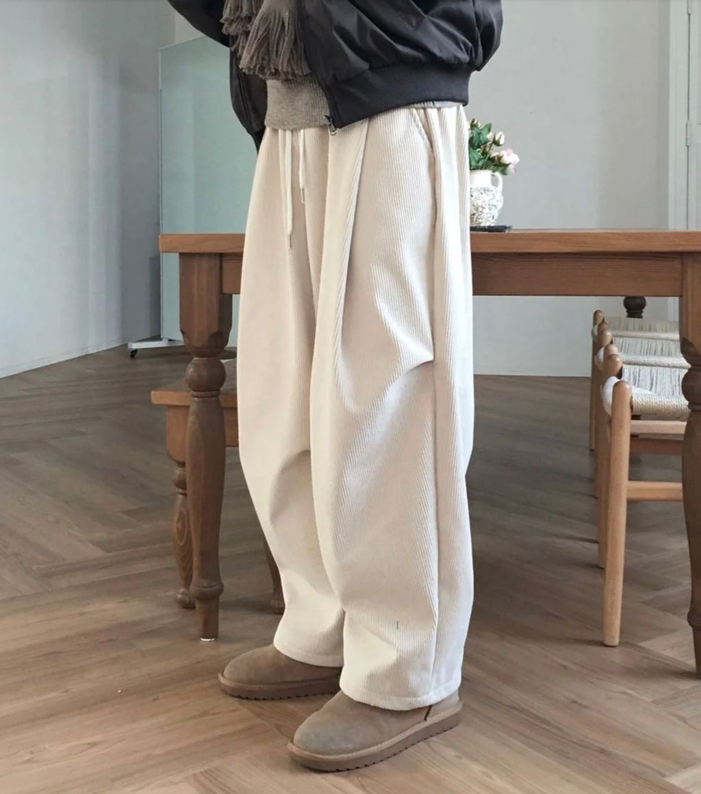 燈芯絨 內刷白 聖誕穿搭 鬆緊寬褲長褲 三色