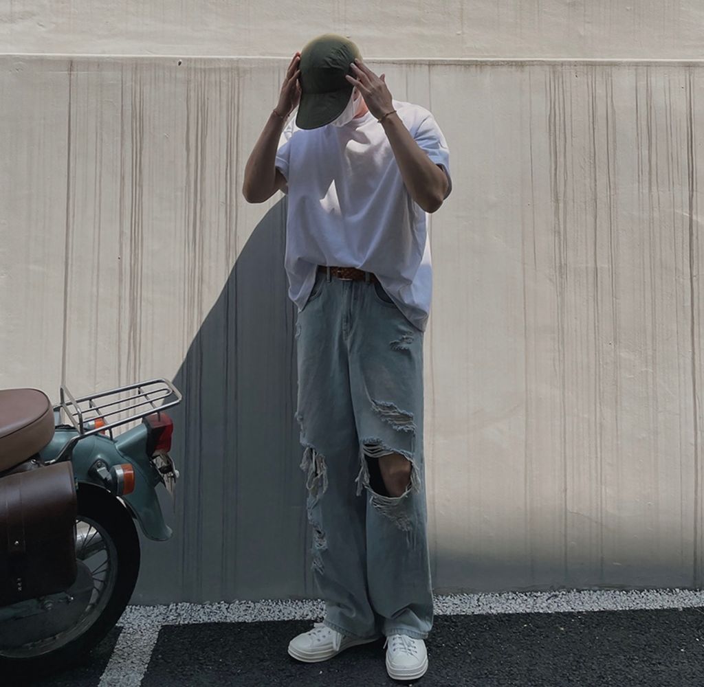 男女同款 超寬超破淺色刷白破洞單寧牛仔褲 86419056