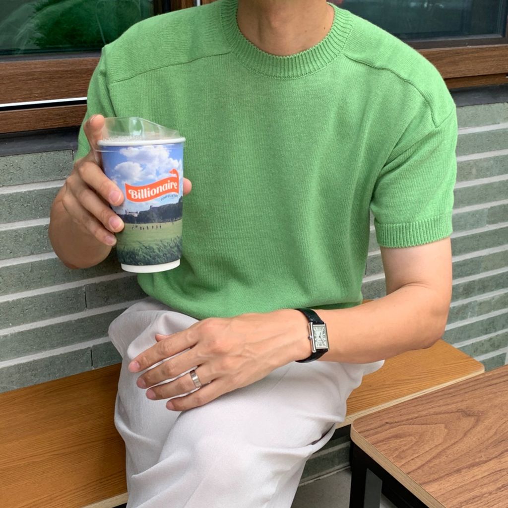 落肩 拼接 彈性針織短袖T 四色