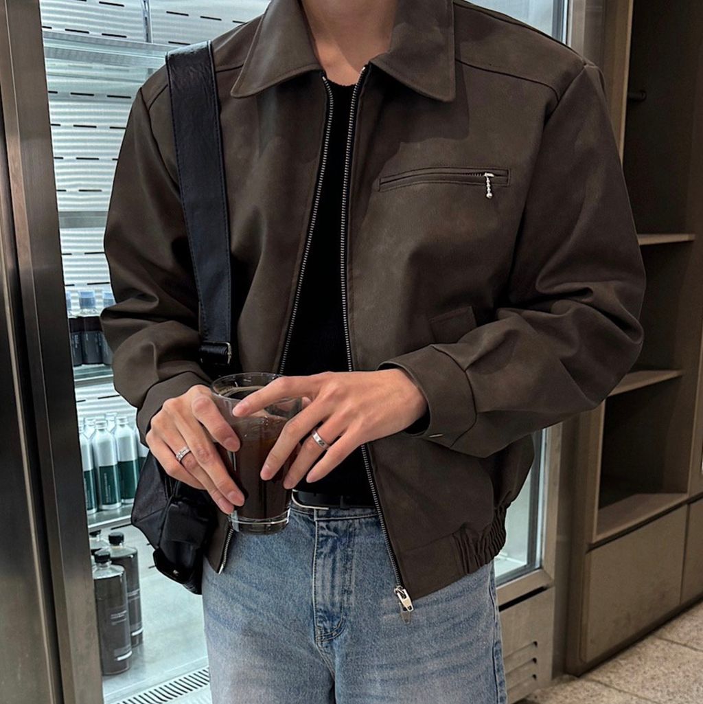裂紋荔枝紋路皮革 合成皮革 騎士短版夾克 兩色
