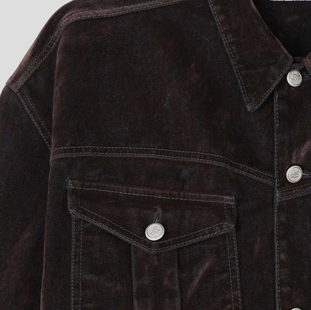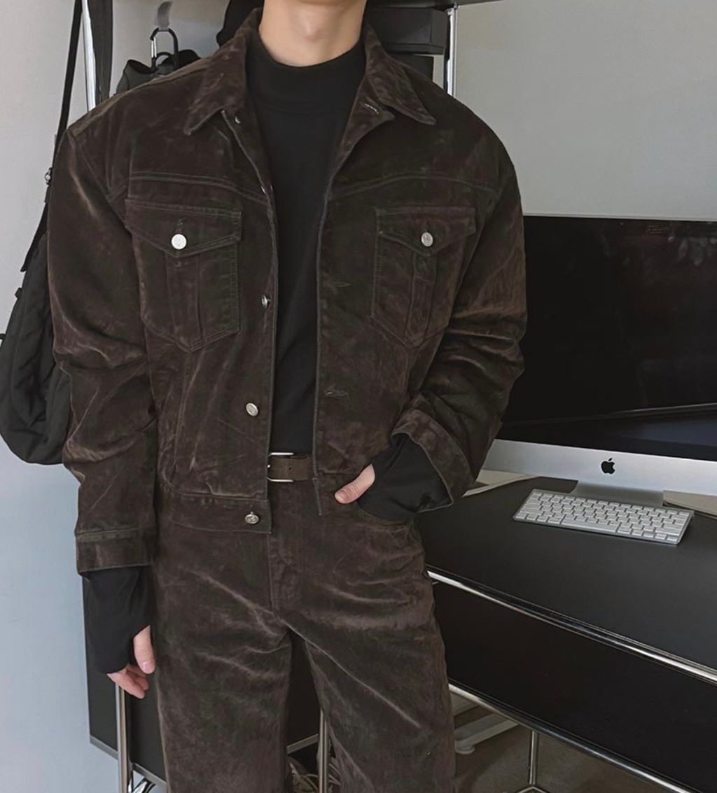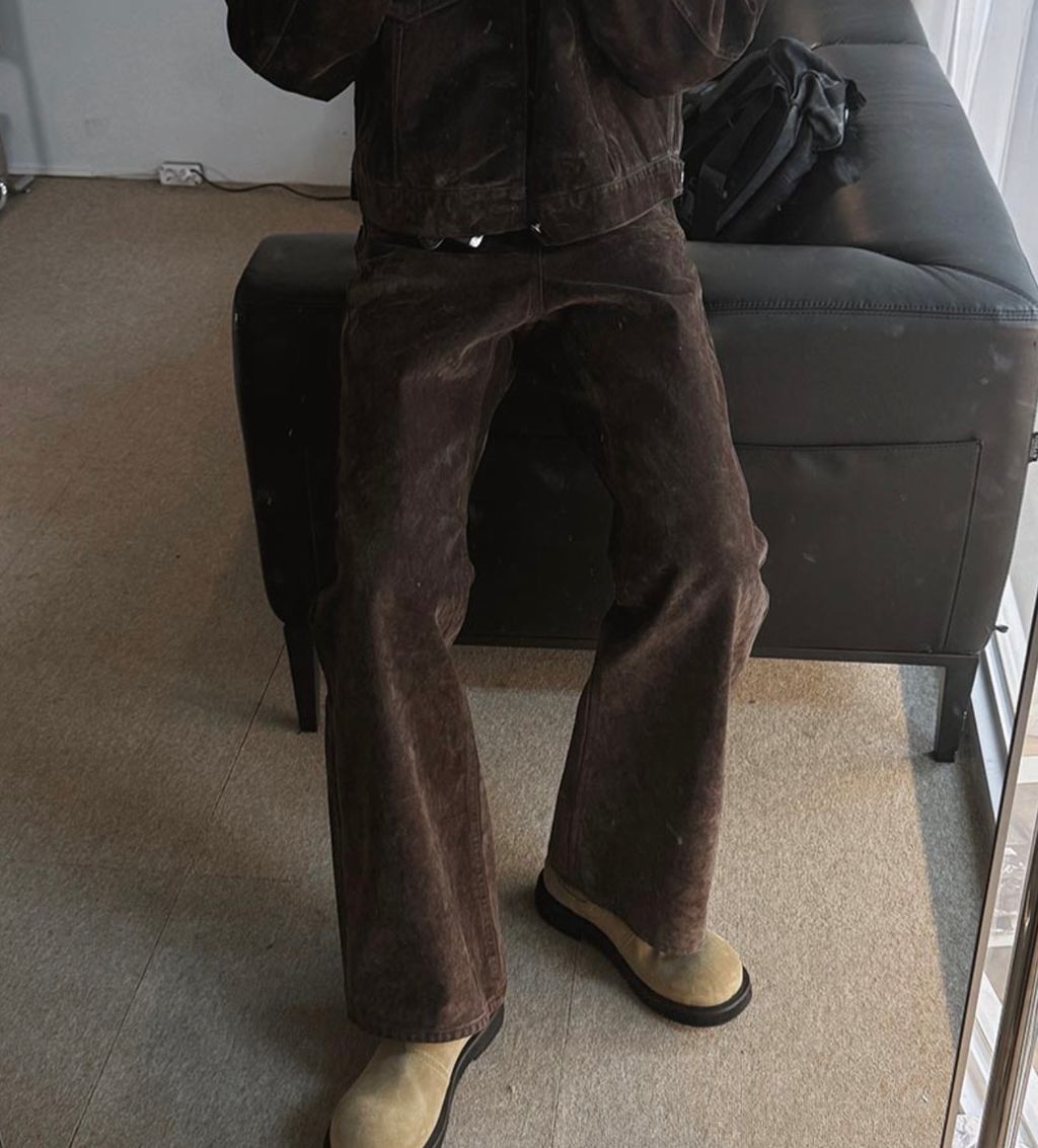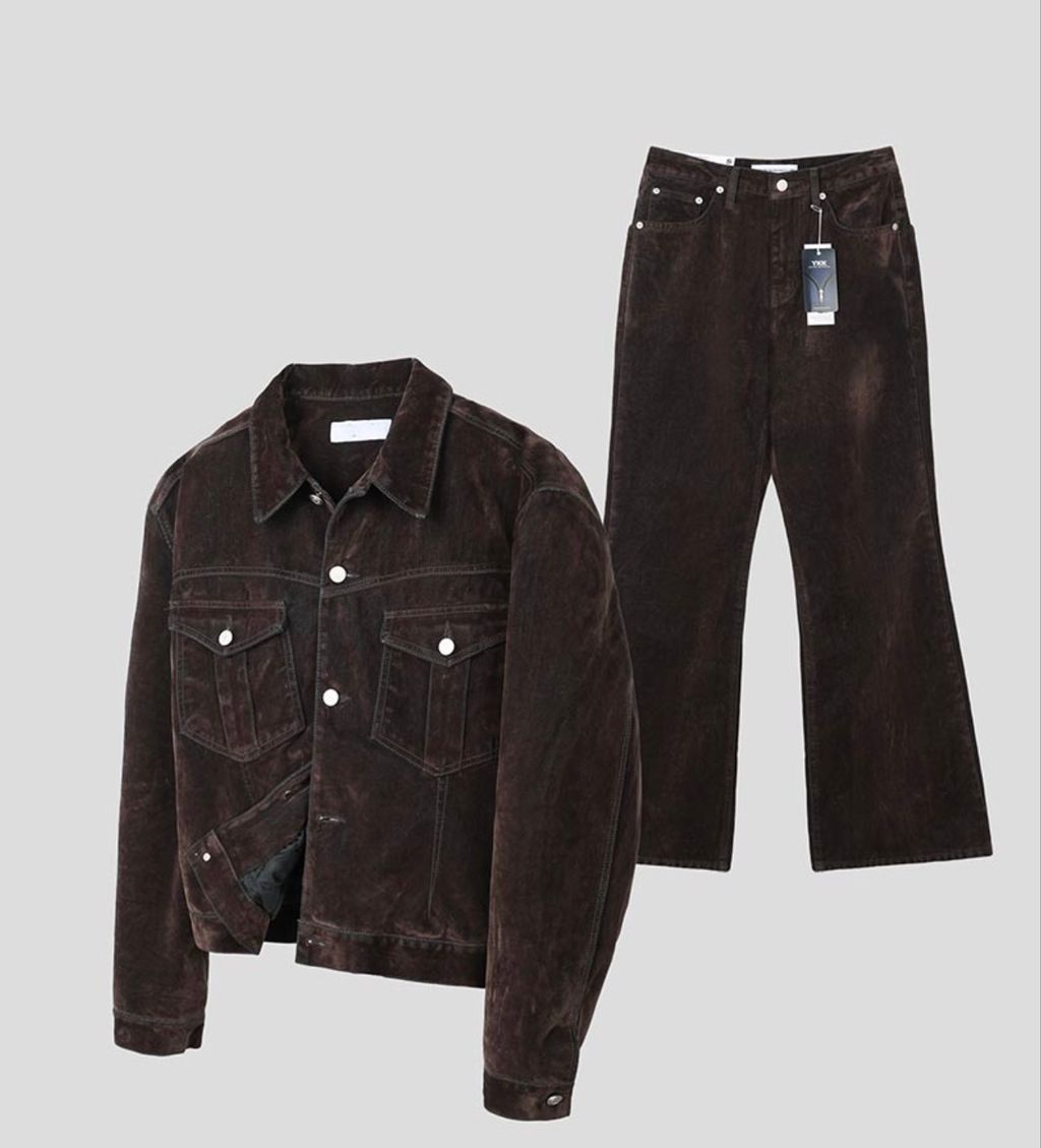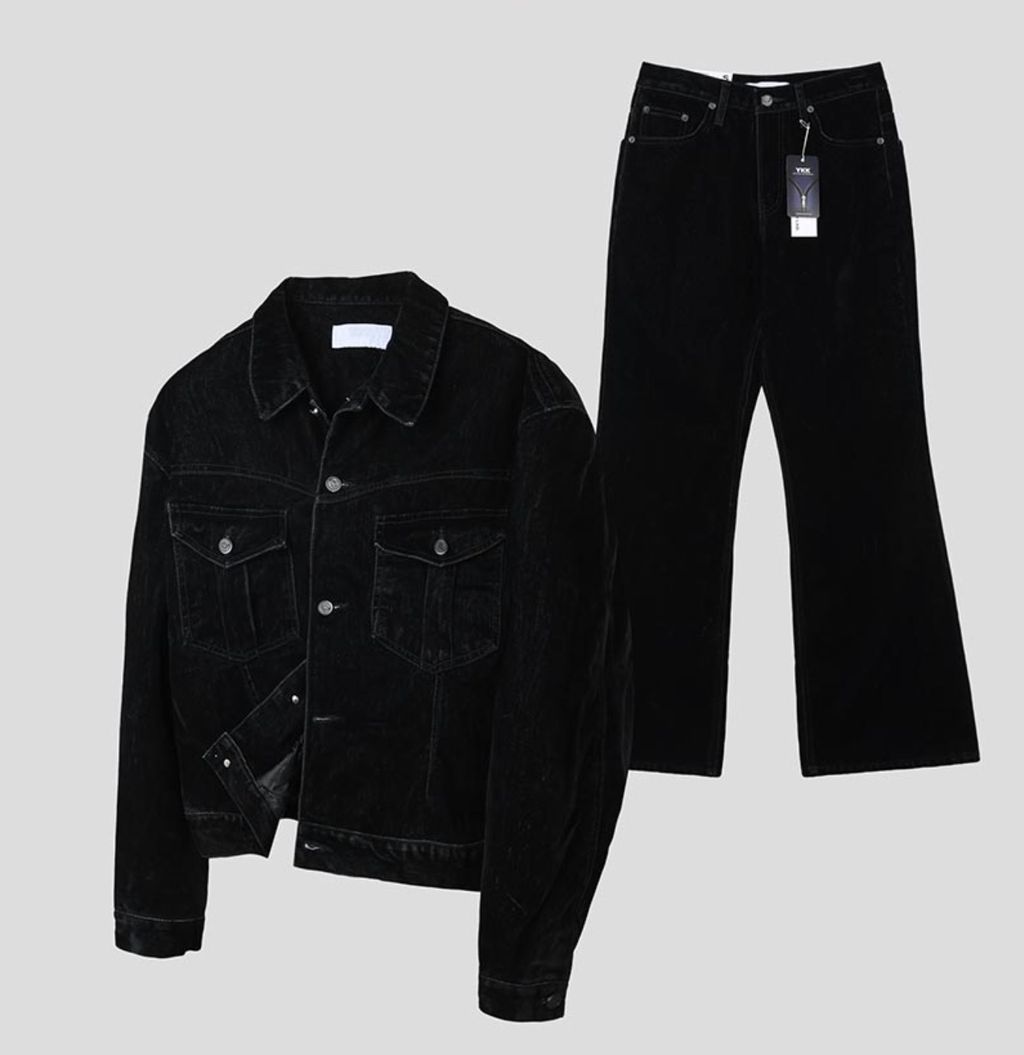 超高質感天鵝絨面套裝 牛仔絨面外套 + 靴型微喇叭牛仔褲 兩色