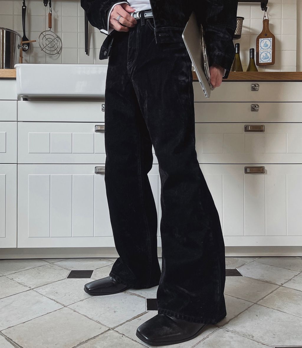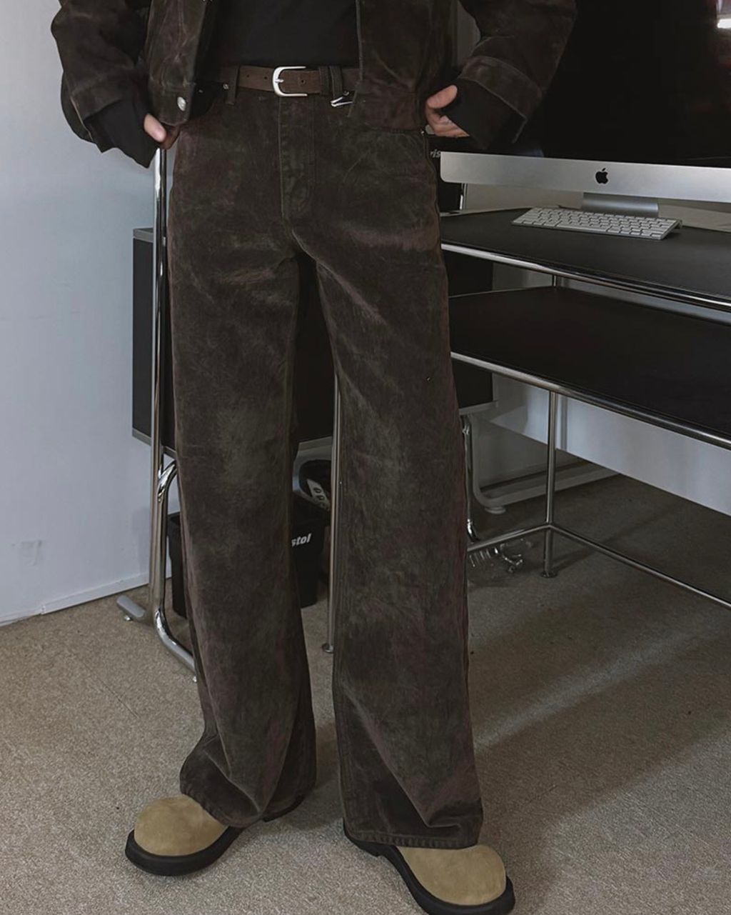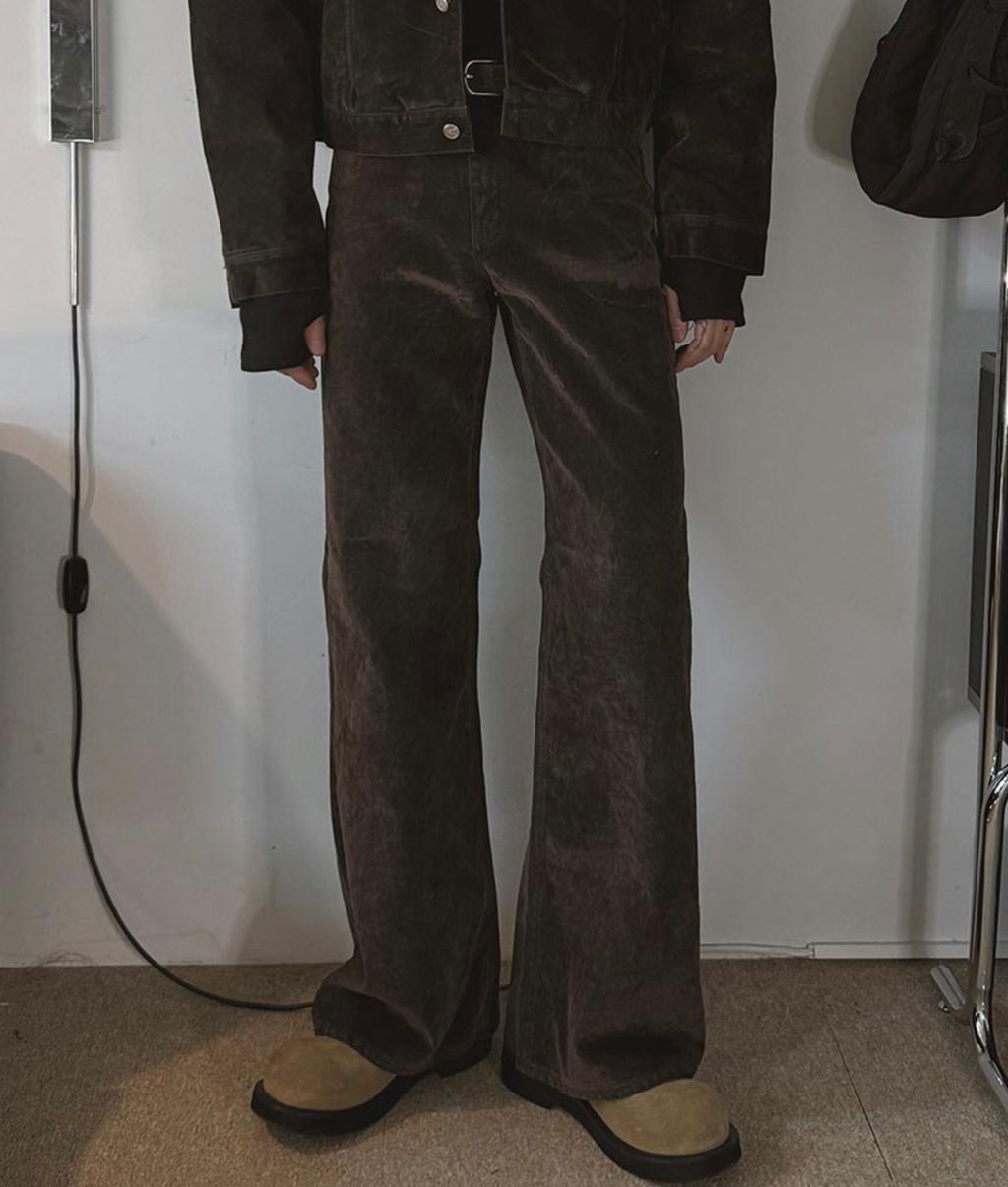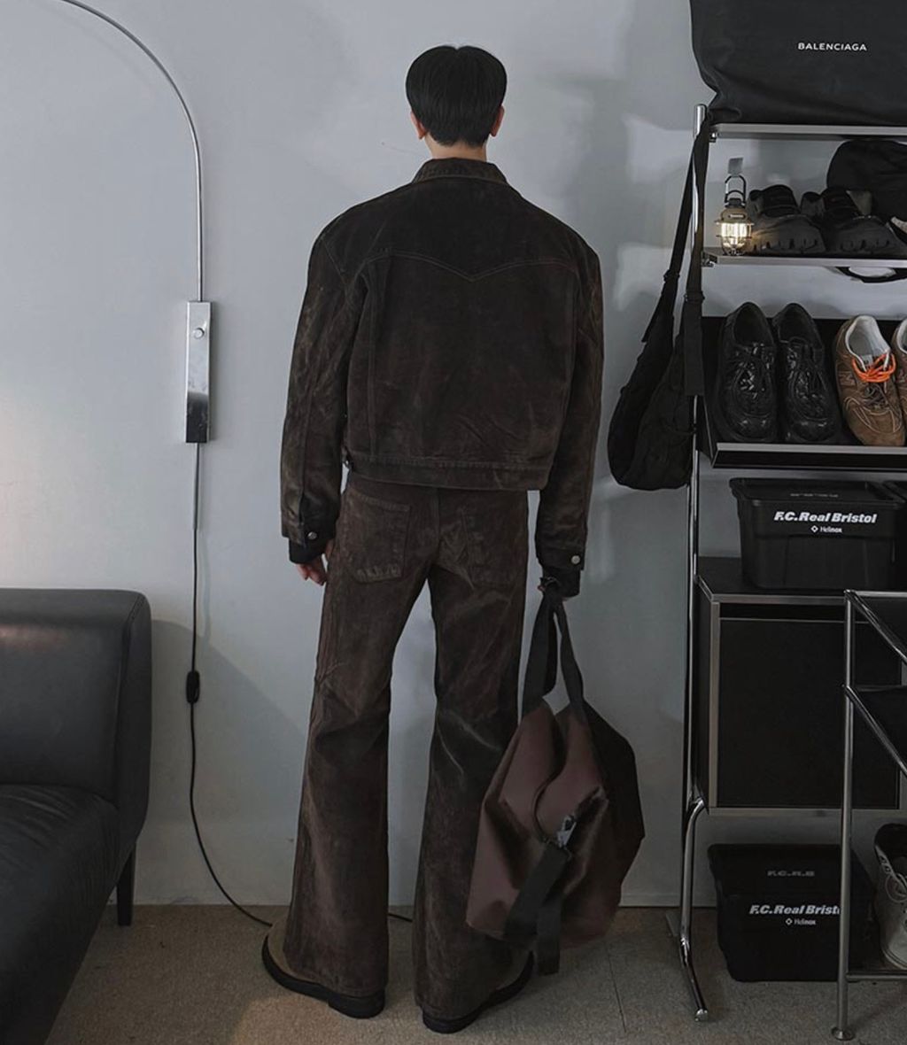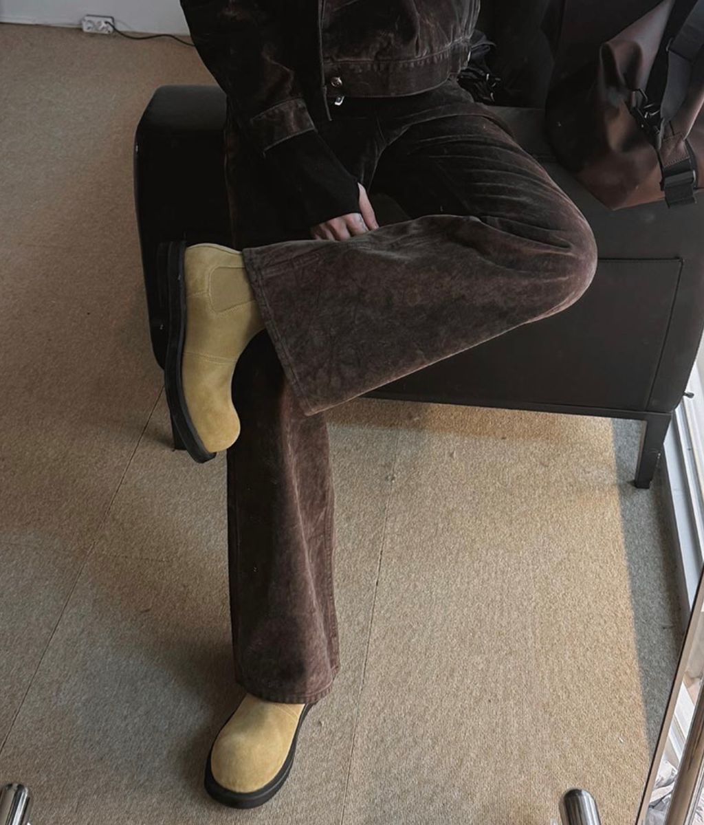 超高質感天鵝絨面套裝 牛仔絨面外套 + 靴型微喇叭牛仔褲 兩色
