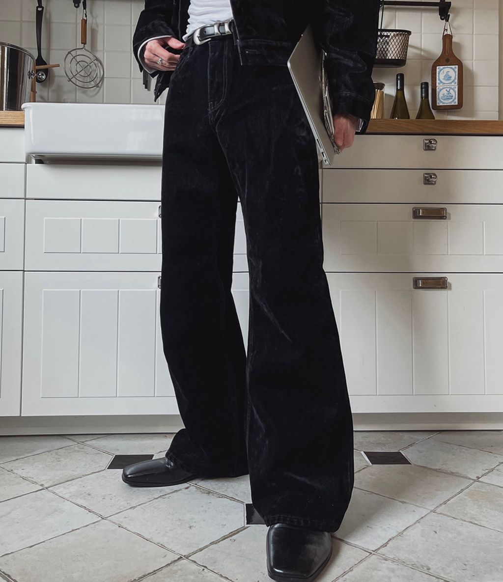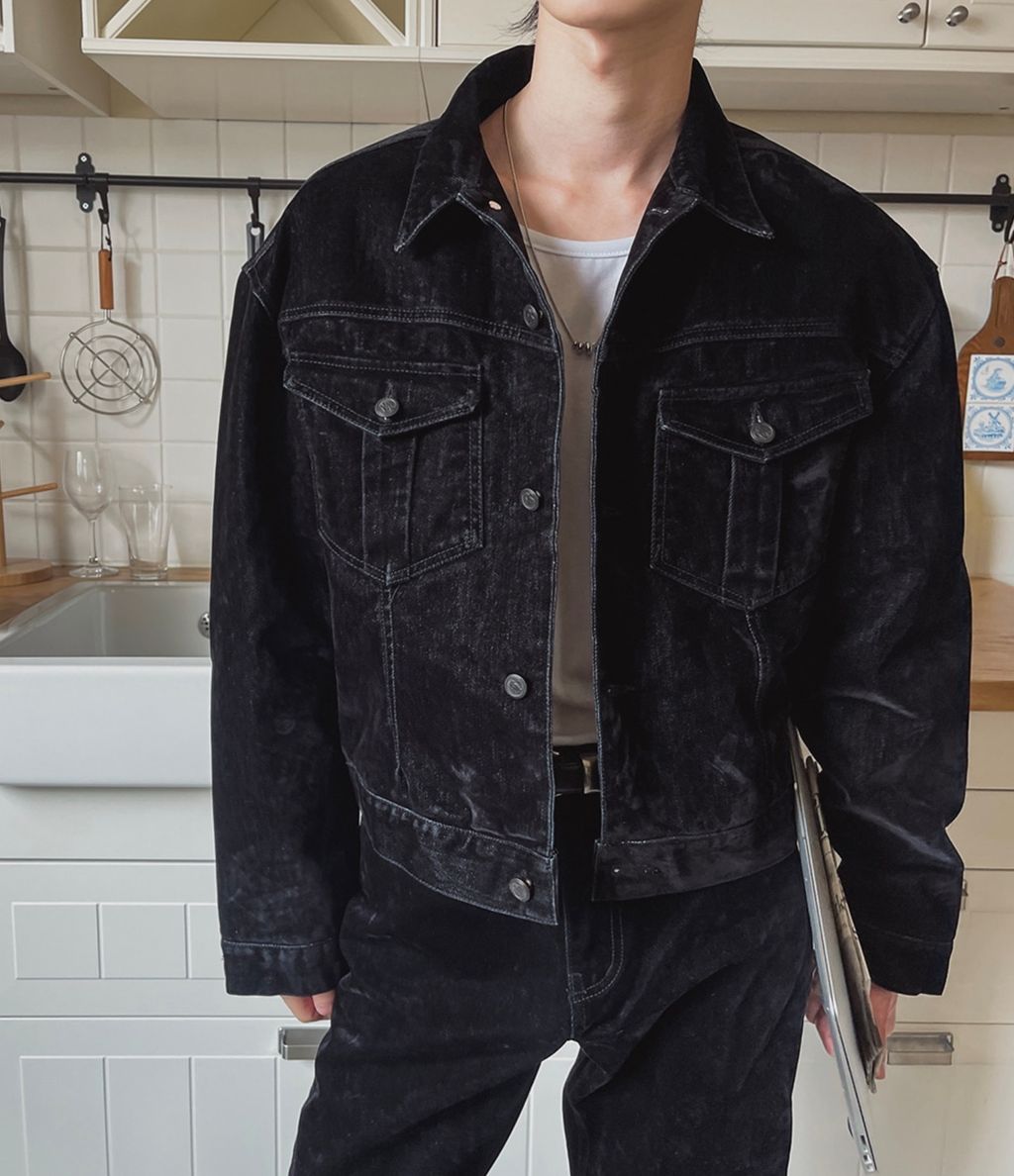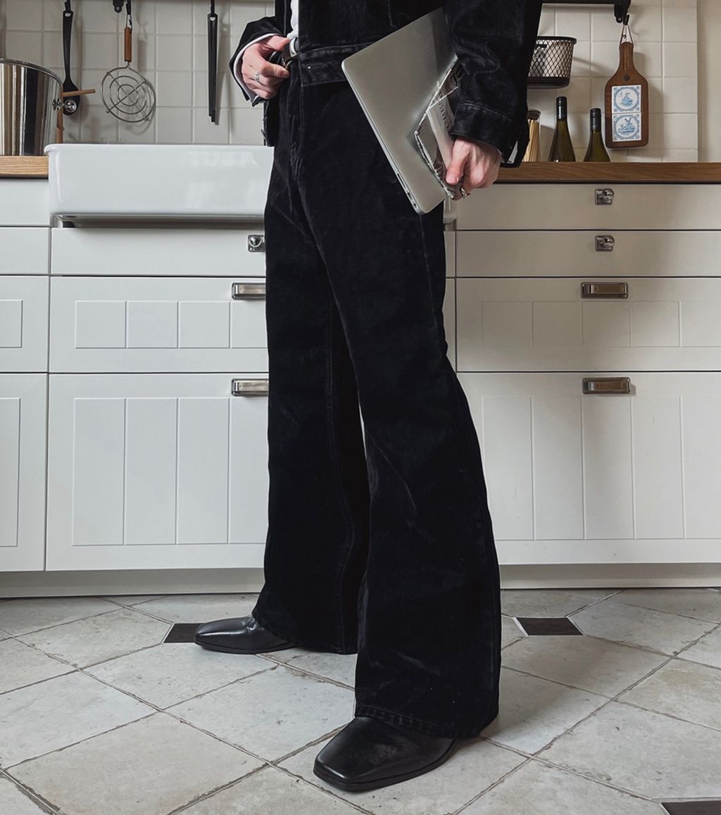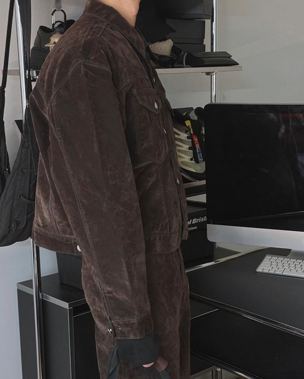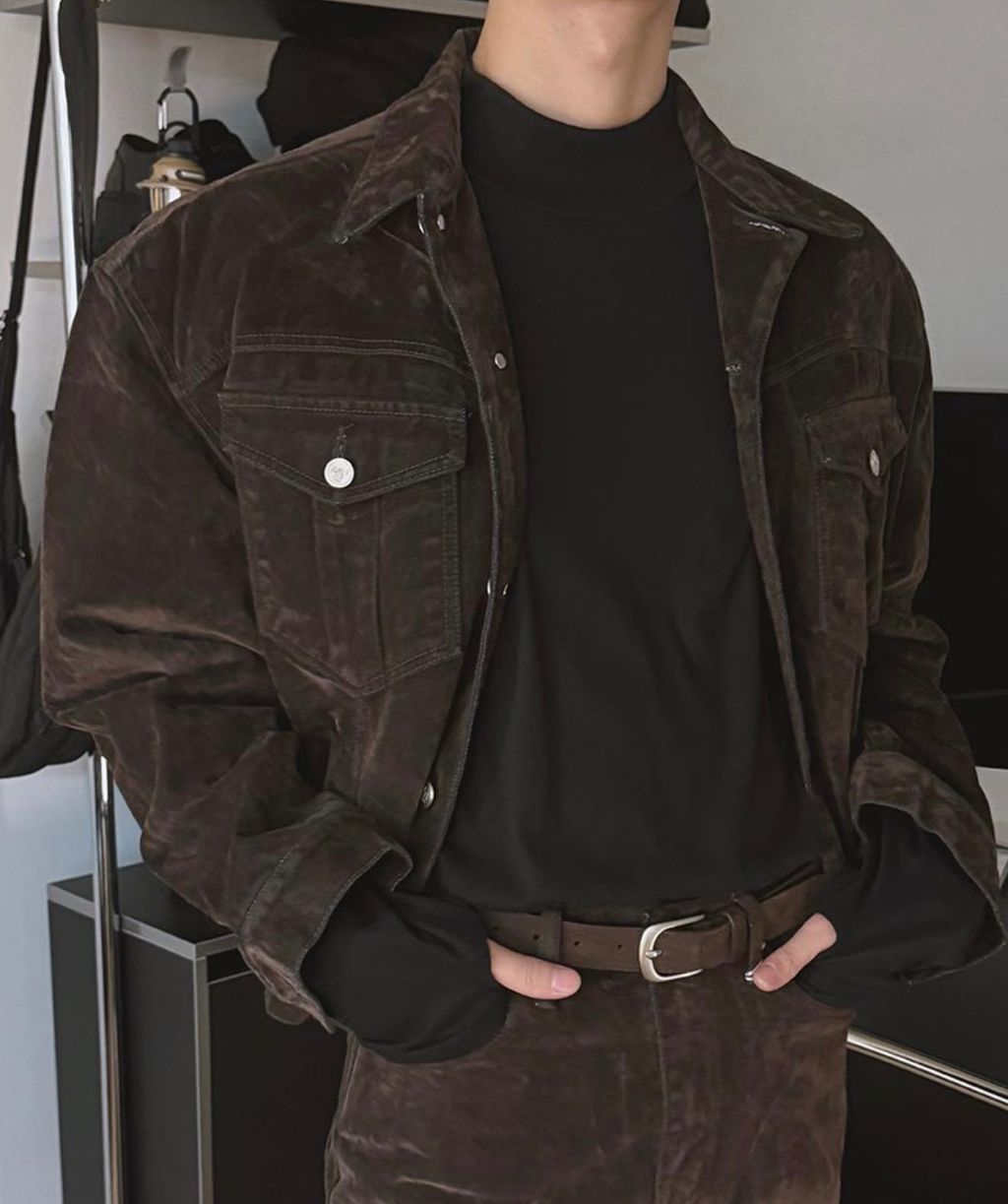 超高質感天鵝絨面套裝 牛仔絨面外套 + 靴型微喇叭牛仔褲 兩色