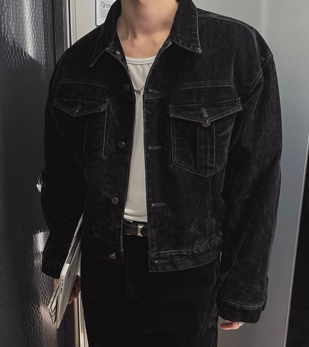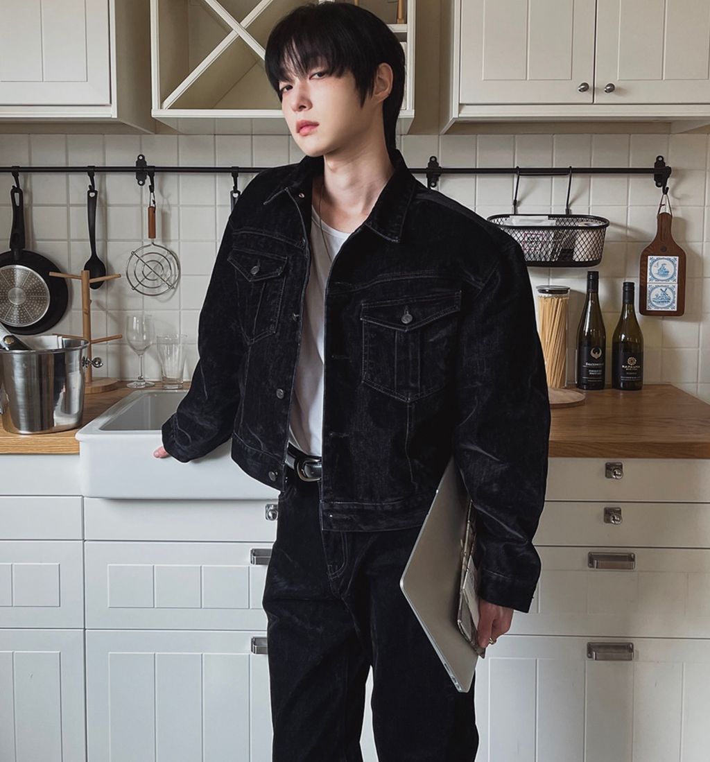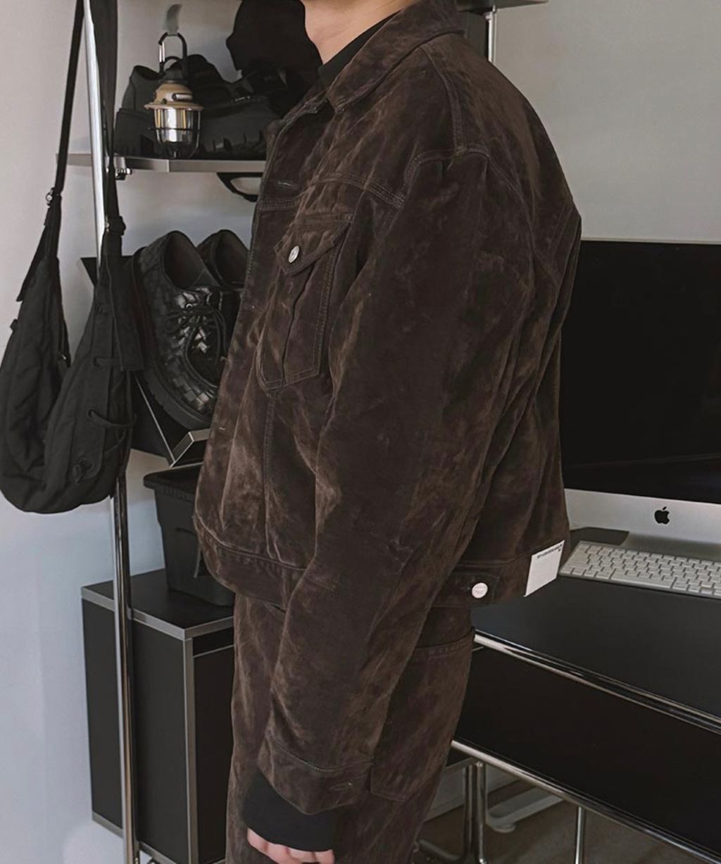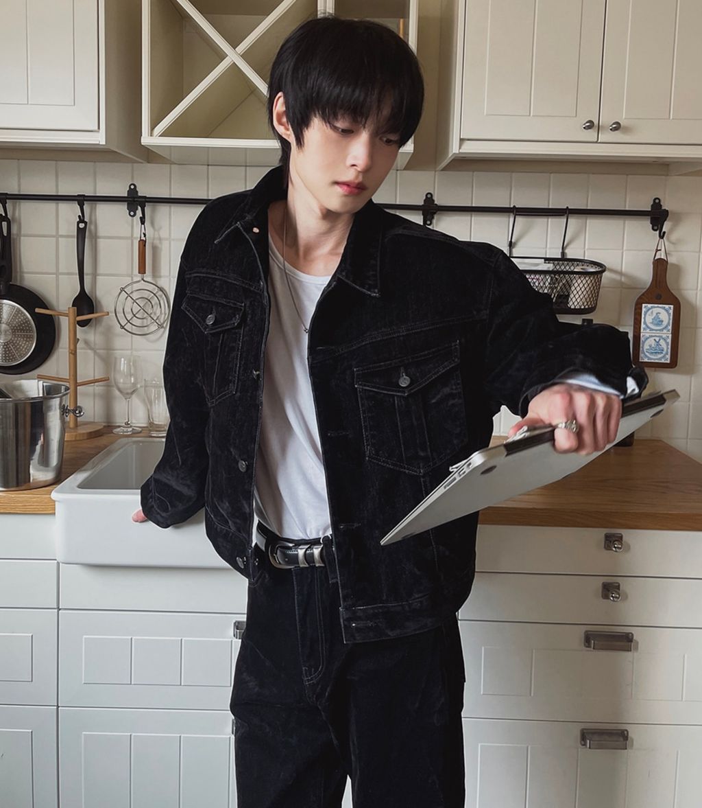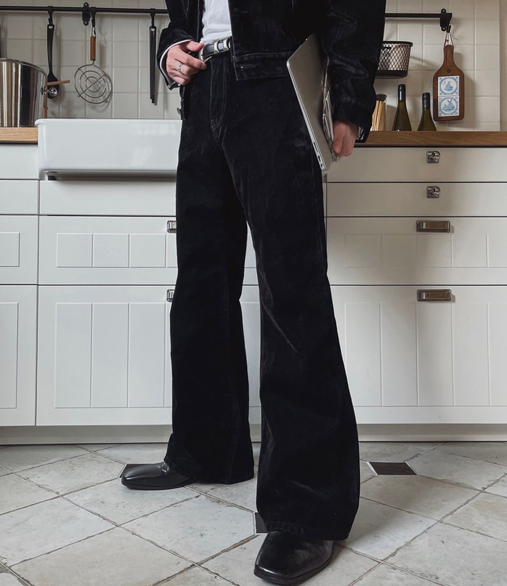 超高質感天鵝絨面套裝 牛仔絨面外套 + 靴型微喇叭牛仔褲 兩色