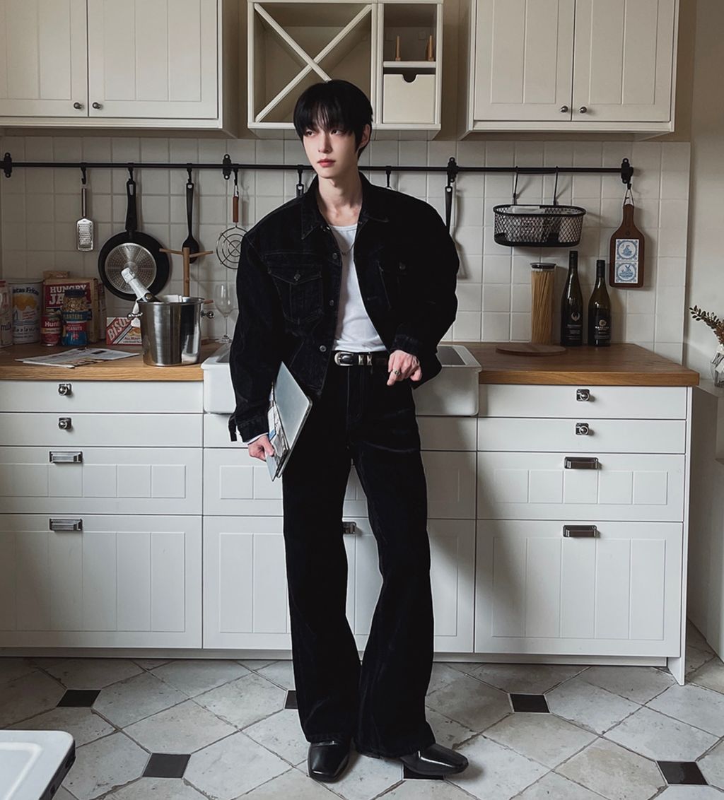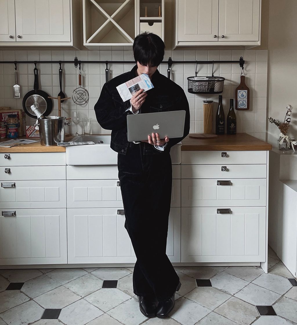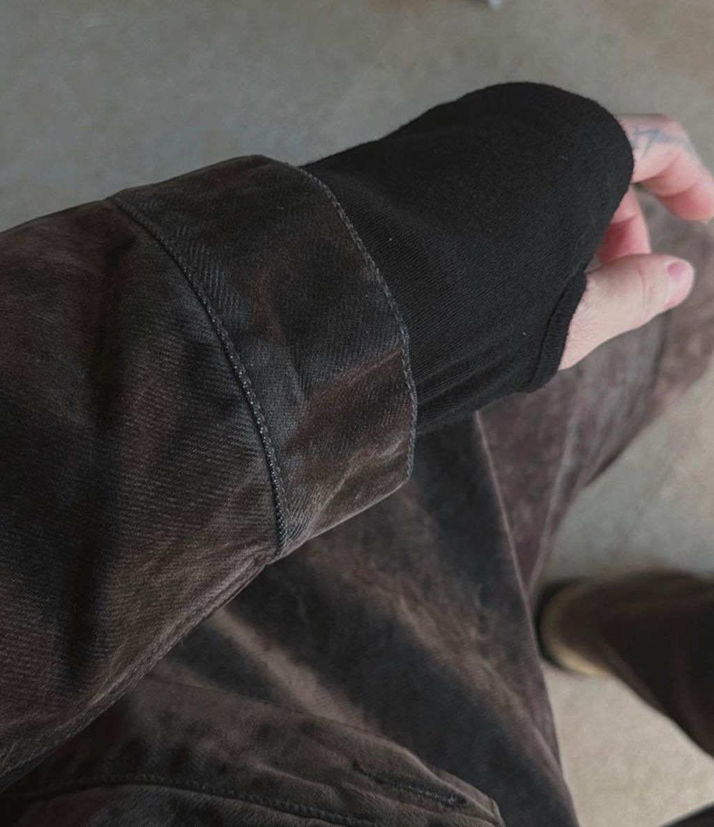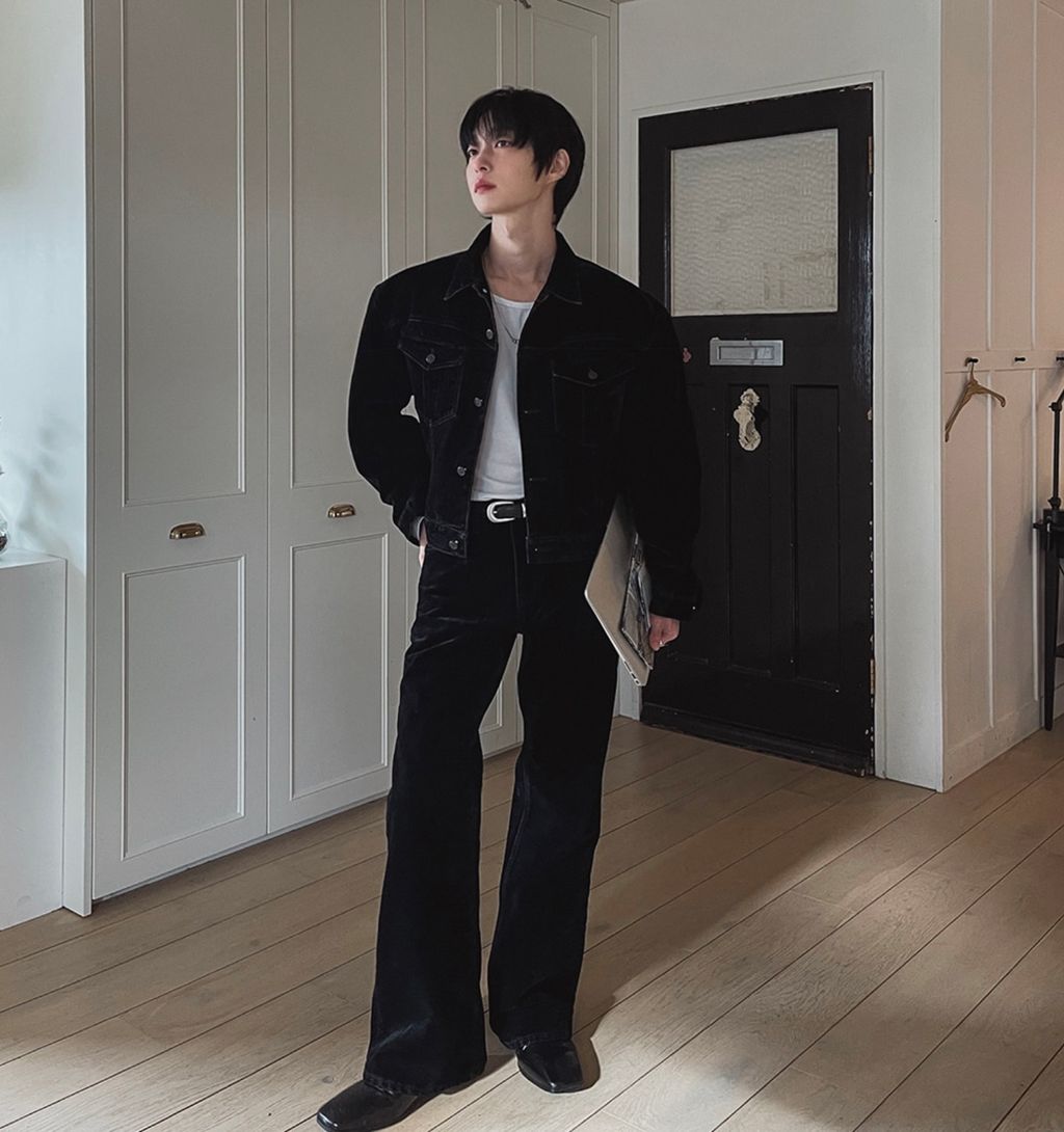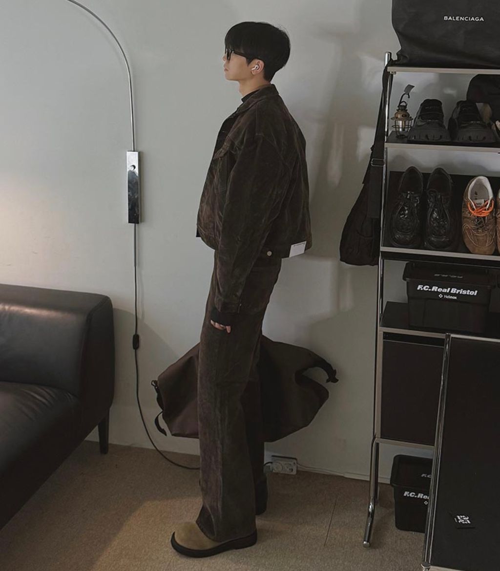 超高質感天鵝絨面套裝 牛仔絨面外套 + 靴型微喇叭牛仔褲 兩色