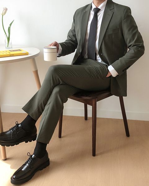 鬆緊腰圍微寬管西裝長褲 五色 93879839